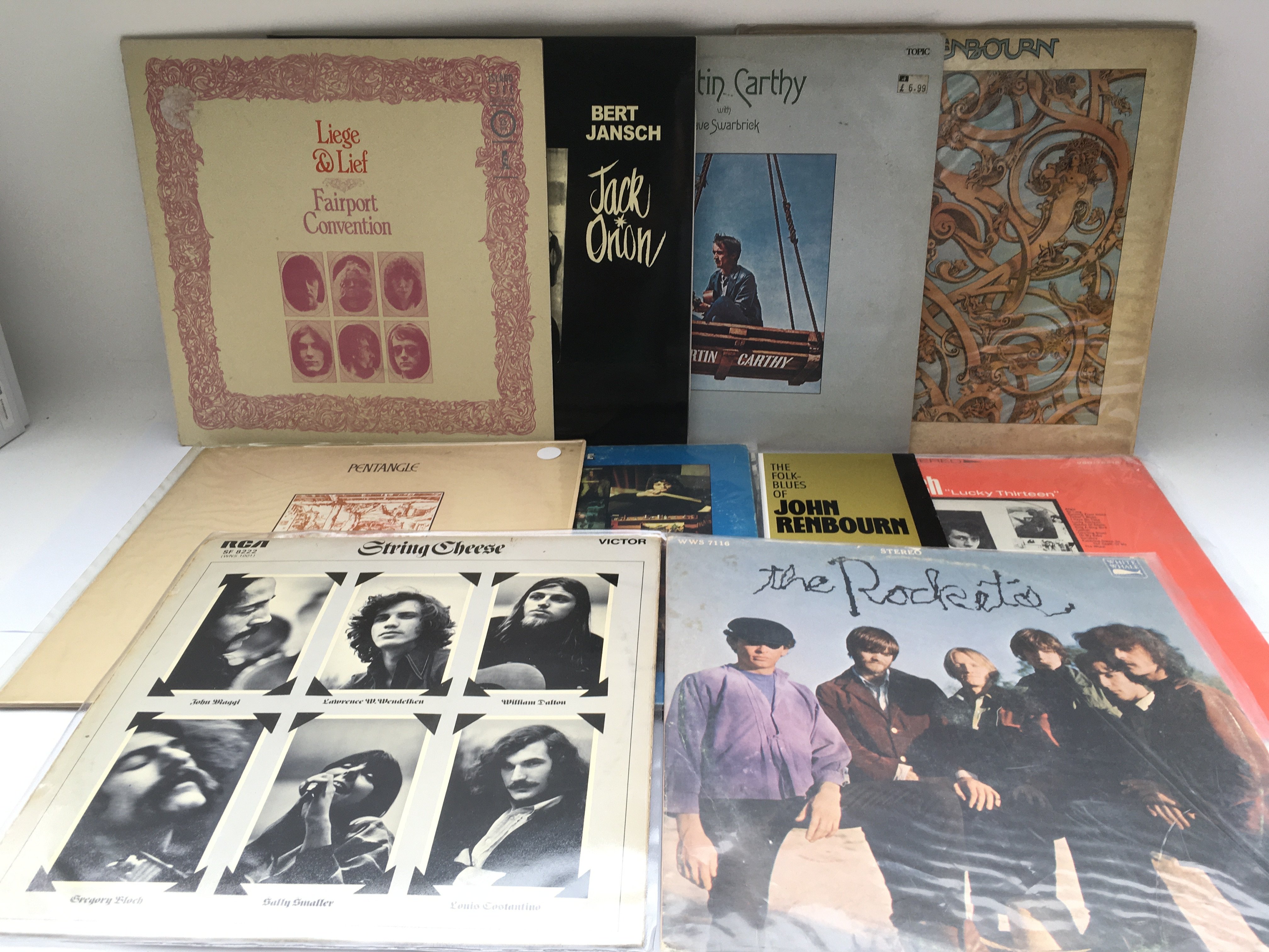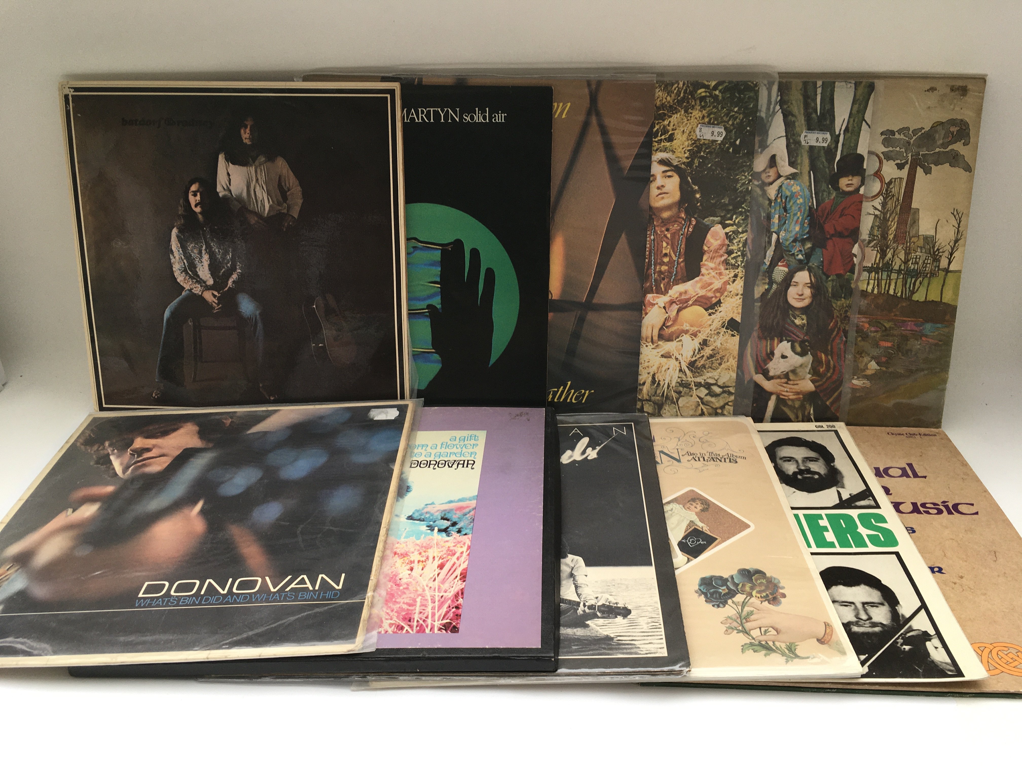 Two bags containing 22 folk LPs by various artists including Fairport Convention, Pentangle, Incredible String Band and others.