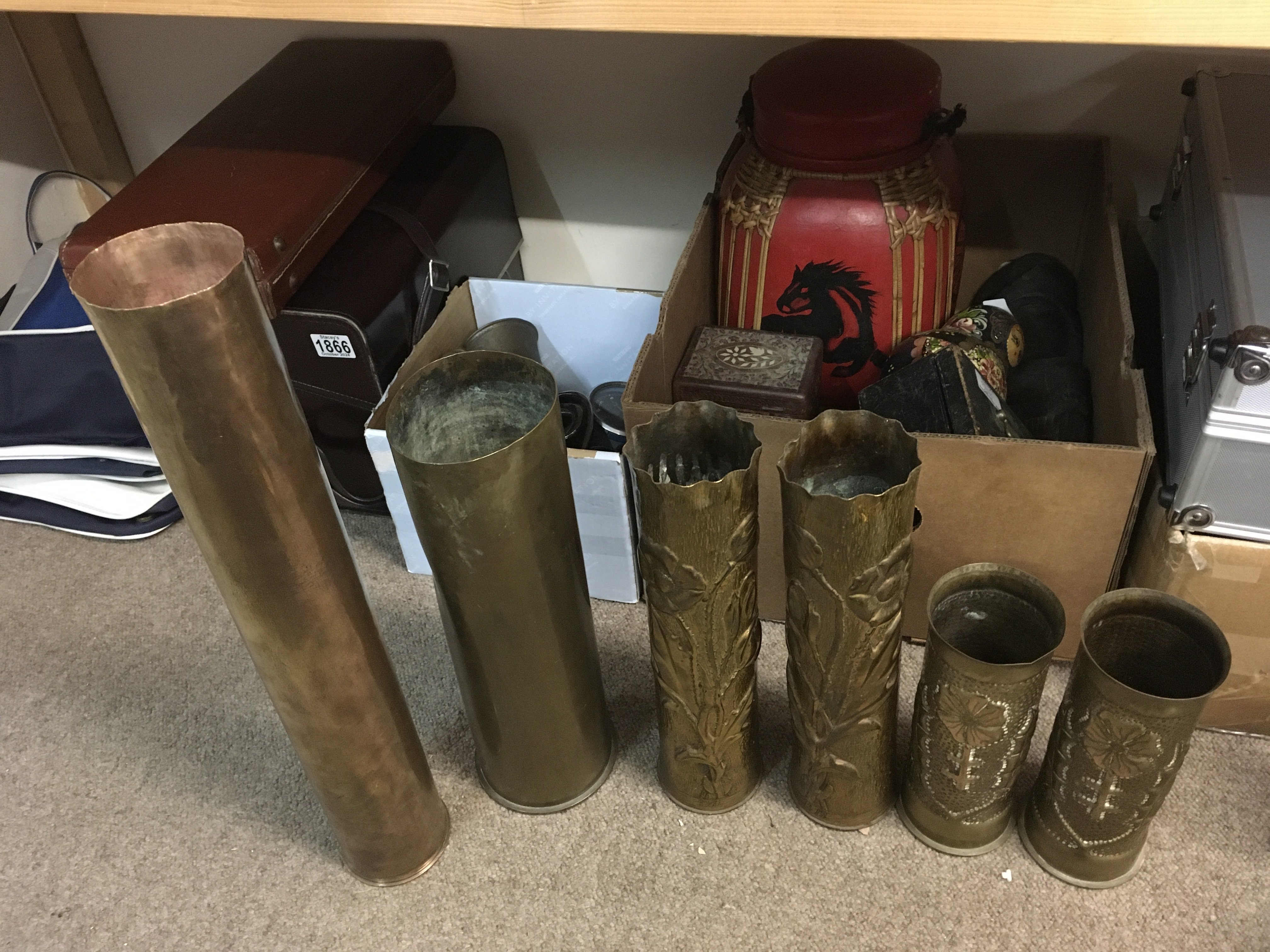 A Collection of shells including some trench art examples, heights ranging from 23 to 52cm