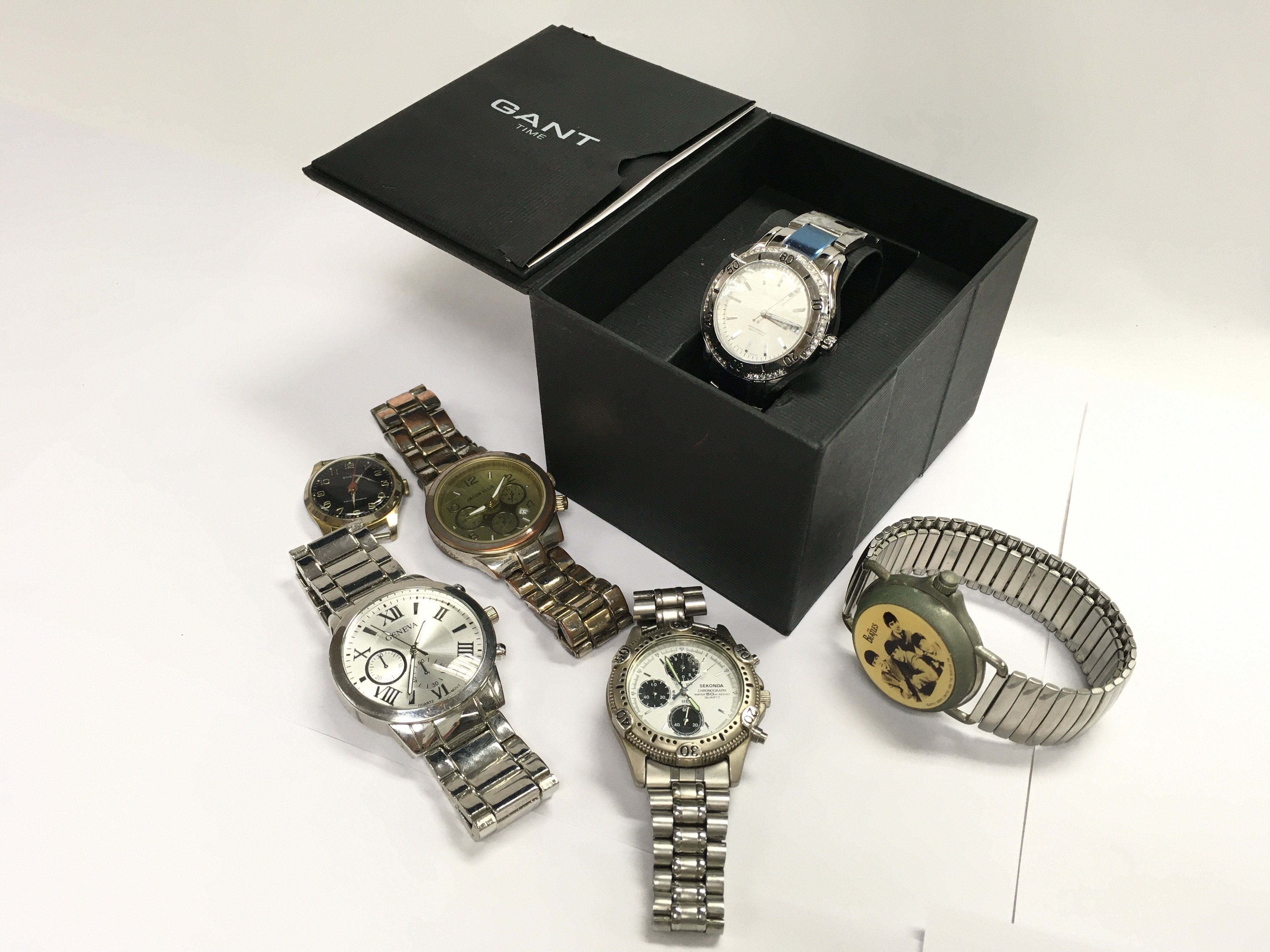 A Collection of vintage gents watches including a boxed Gant watch, Geneva, Jacob Ellis, Sekonda etc. Postage category B