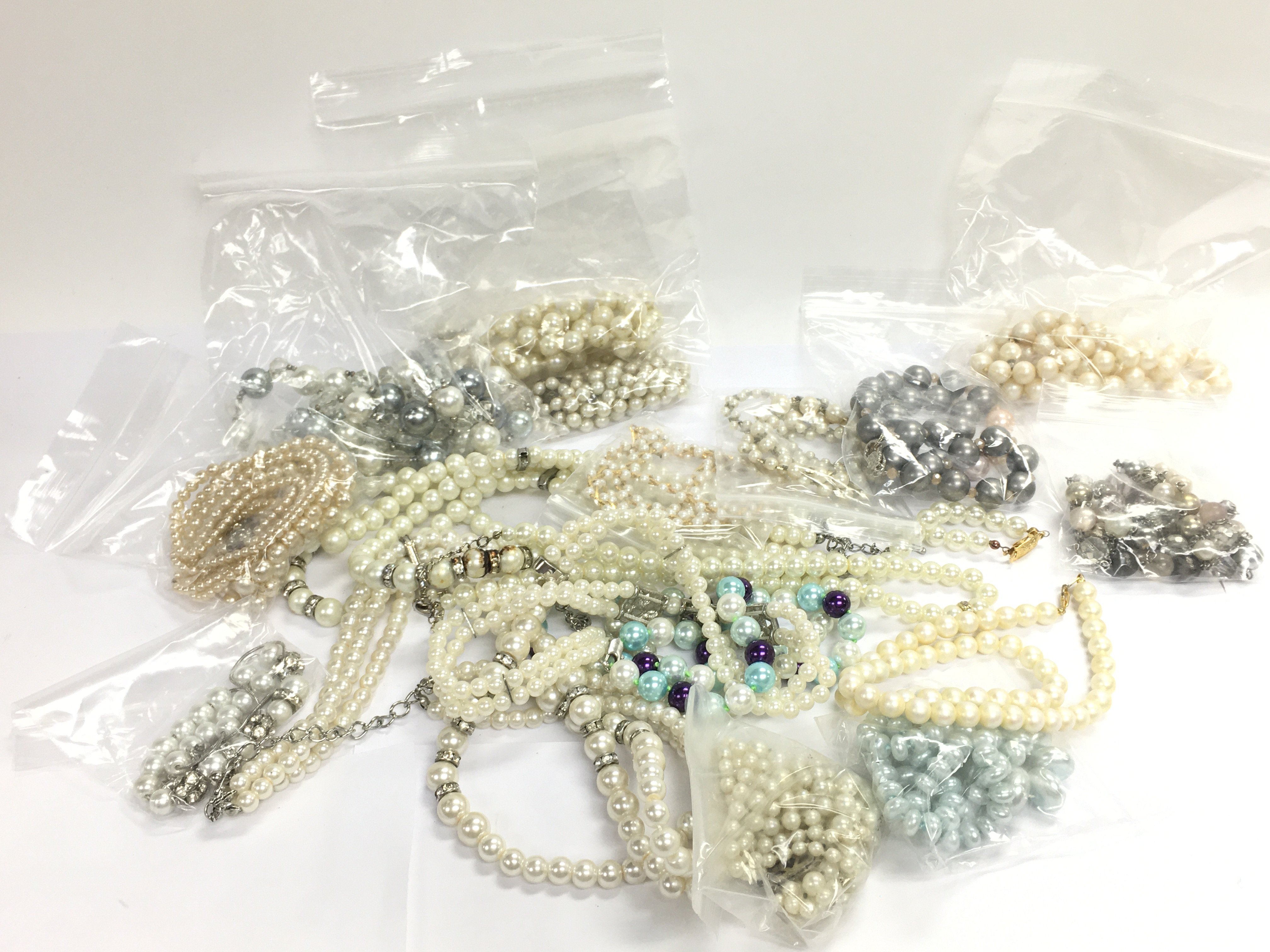 Approximately 20 different simulated pearl necklaces. Postage category B