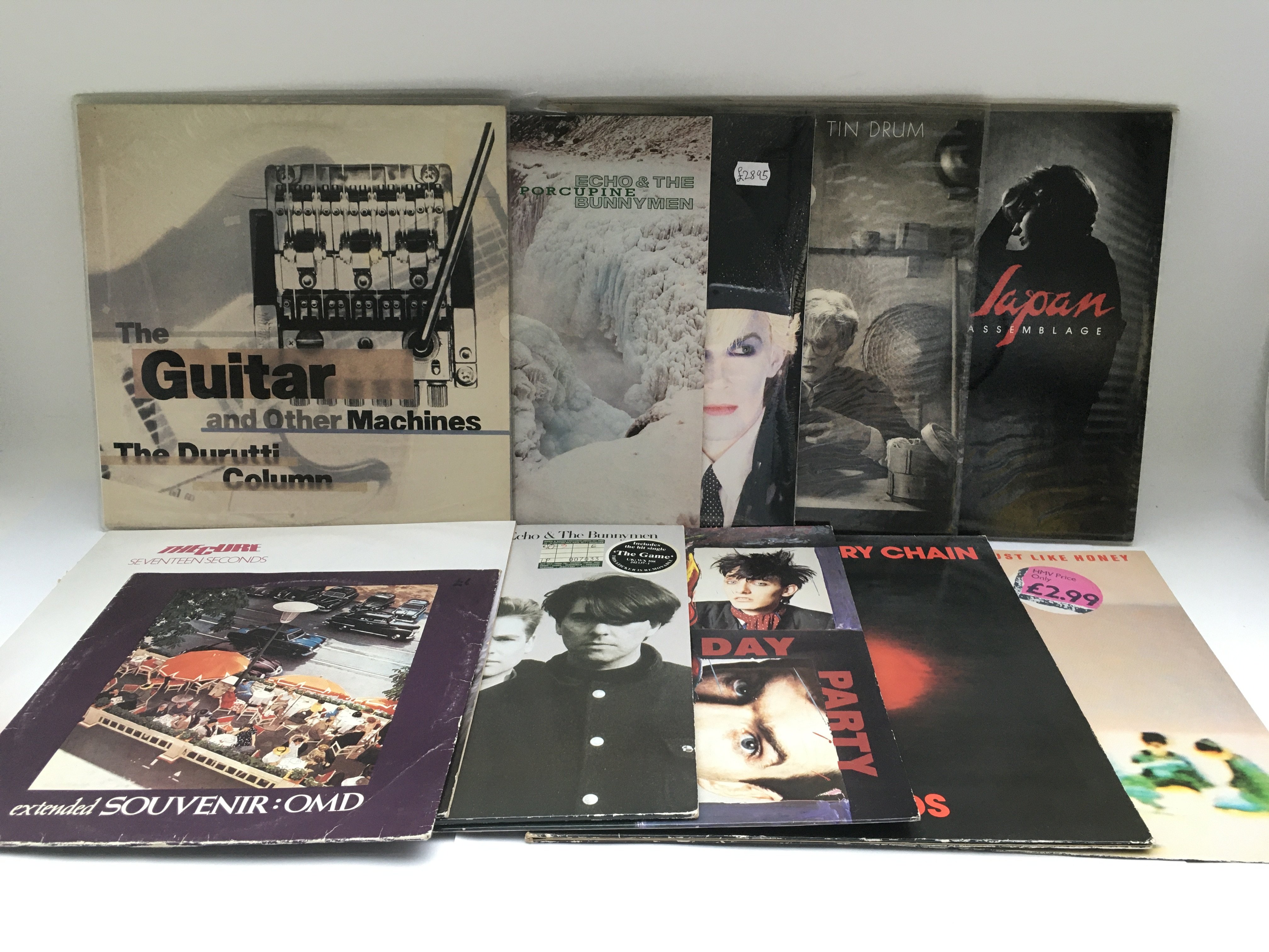 Two bags of post punk, alternative, goth rock LPs and 12" singles by various artists including The Cure, Echo & The Bunnymen, The Birthday Party and others.