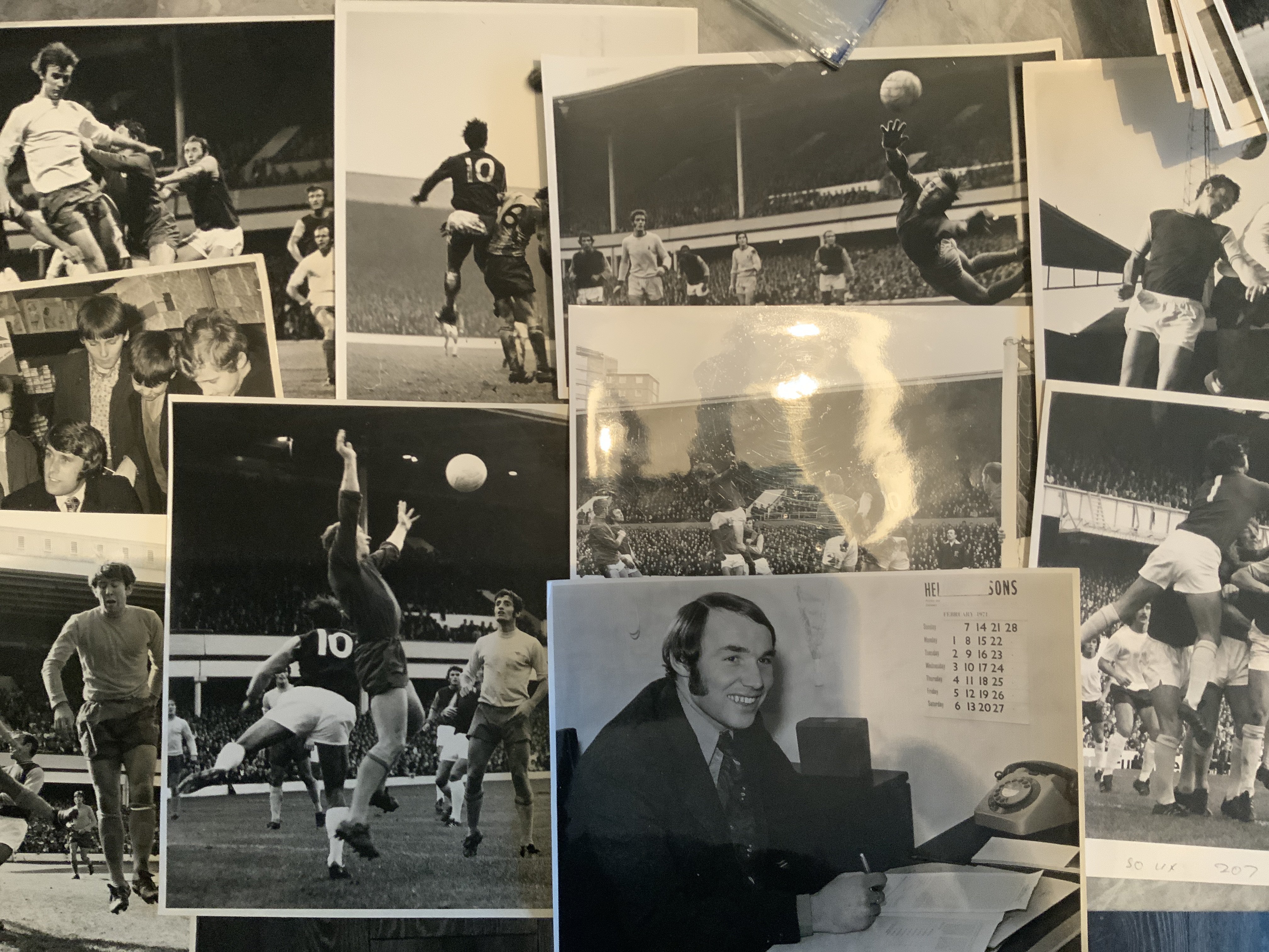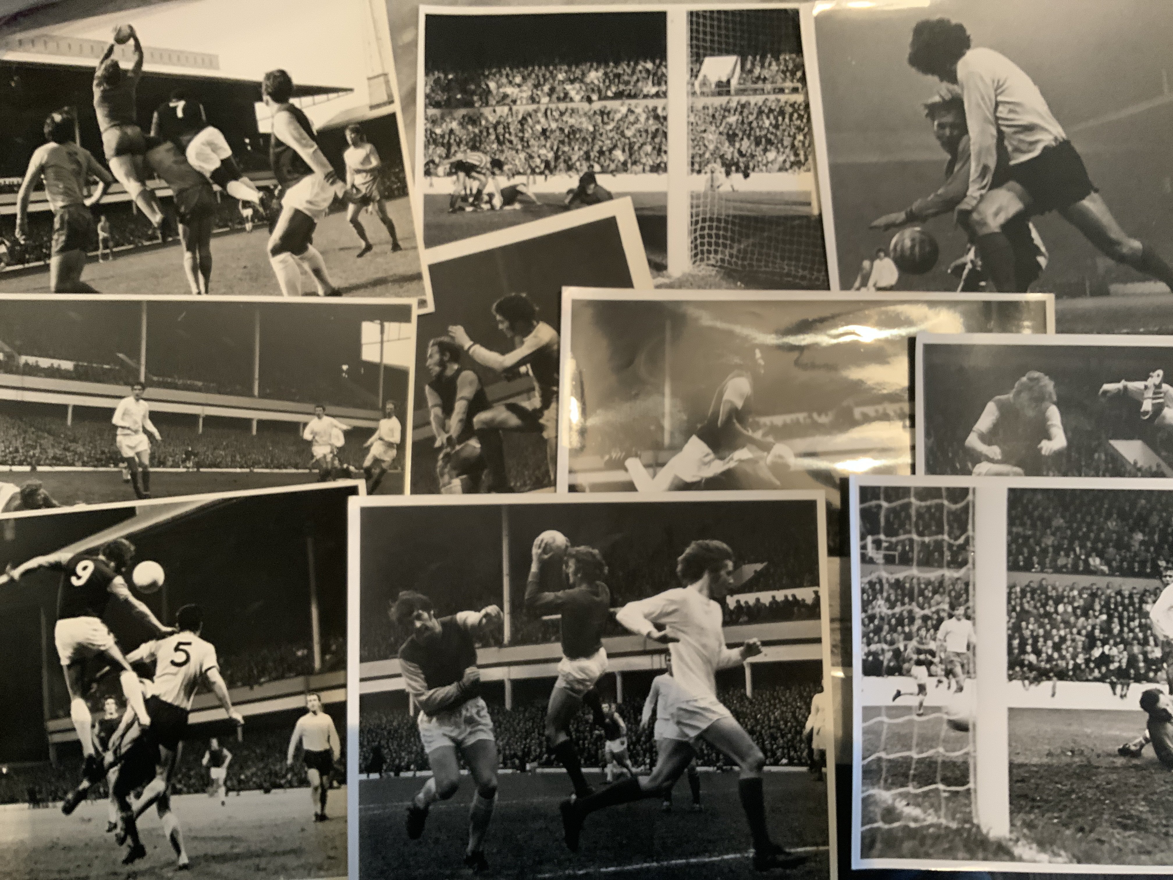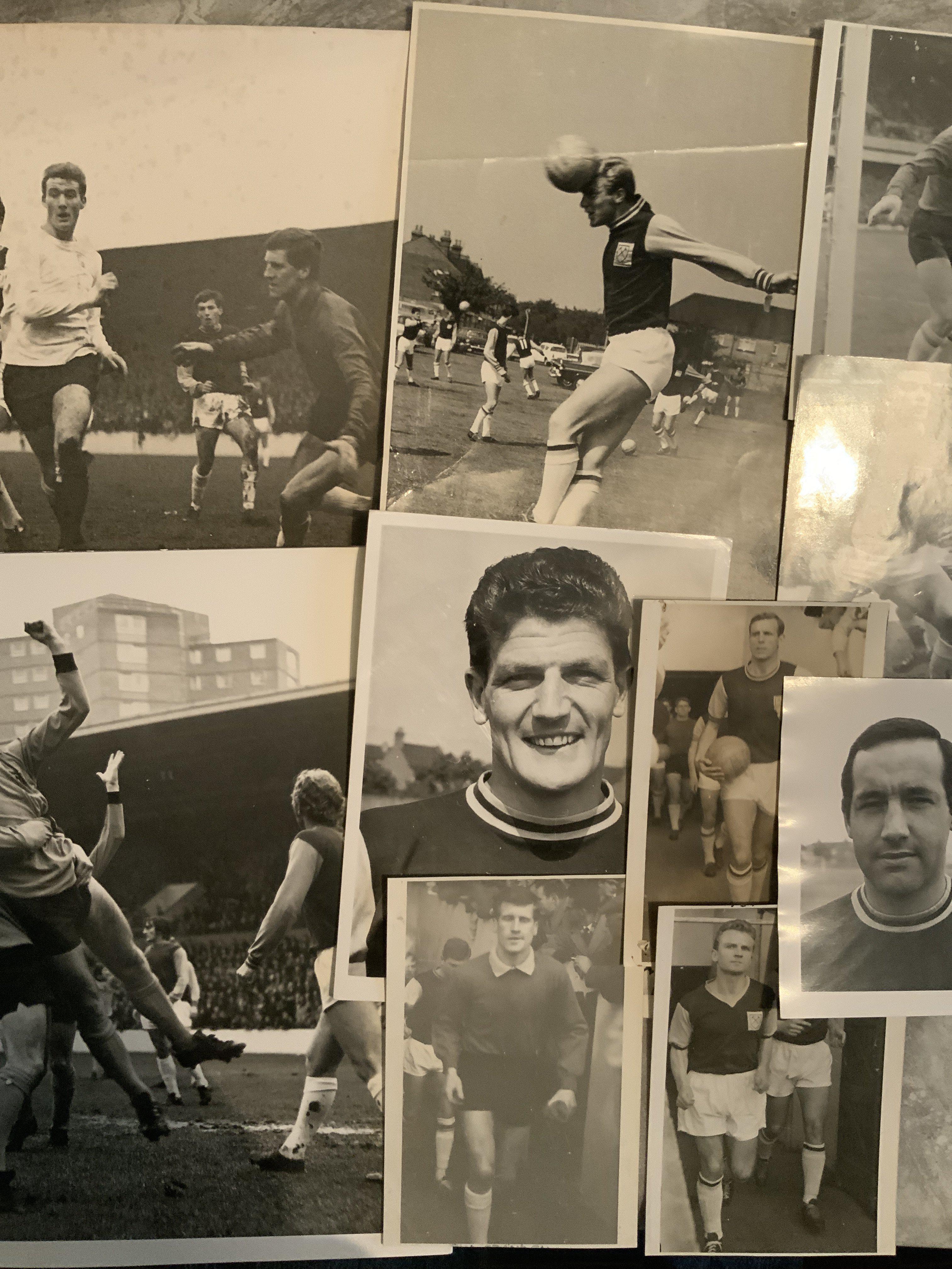 West Ham 60s + 70s Football Press Photos: All original press photos although only 6 stamped to rear. Some great shots of Bobby Moore in action plus Pop Robson Jimmy Greaves Geoff Hurst Clyde Best and many others. Mixed sizes often large with the majorly match action. (30)