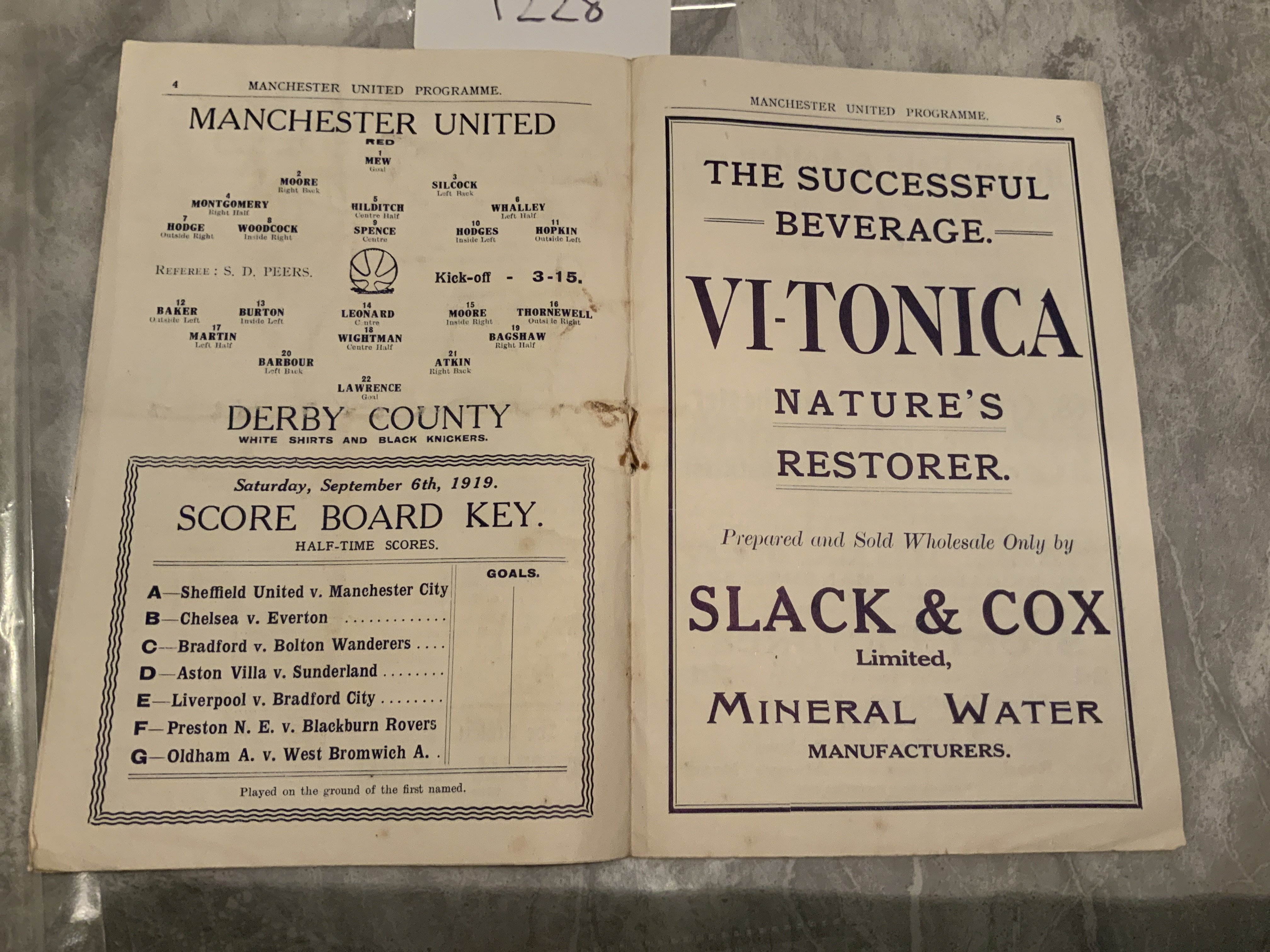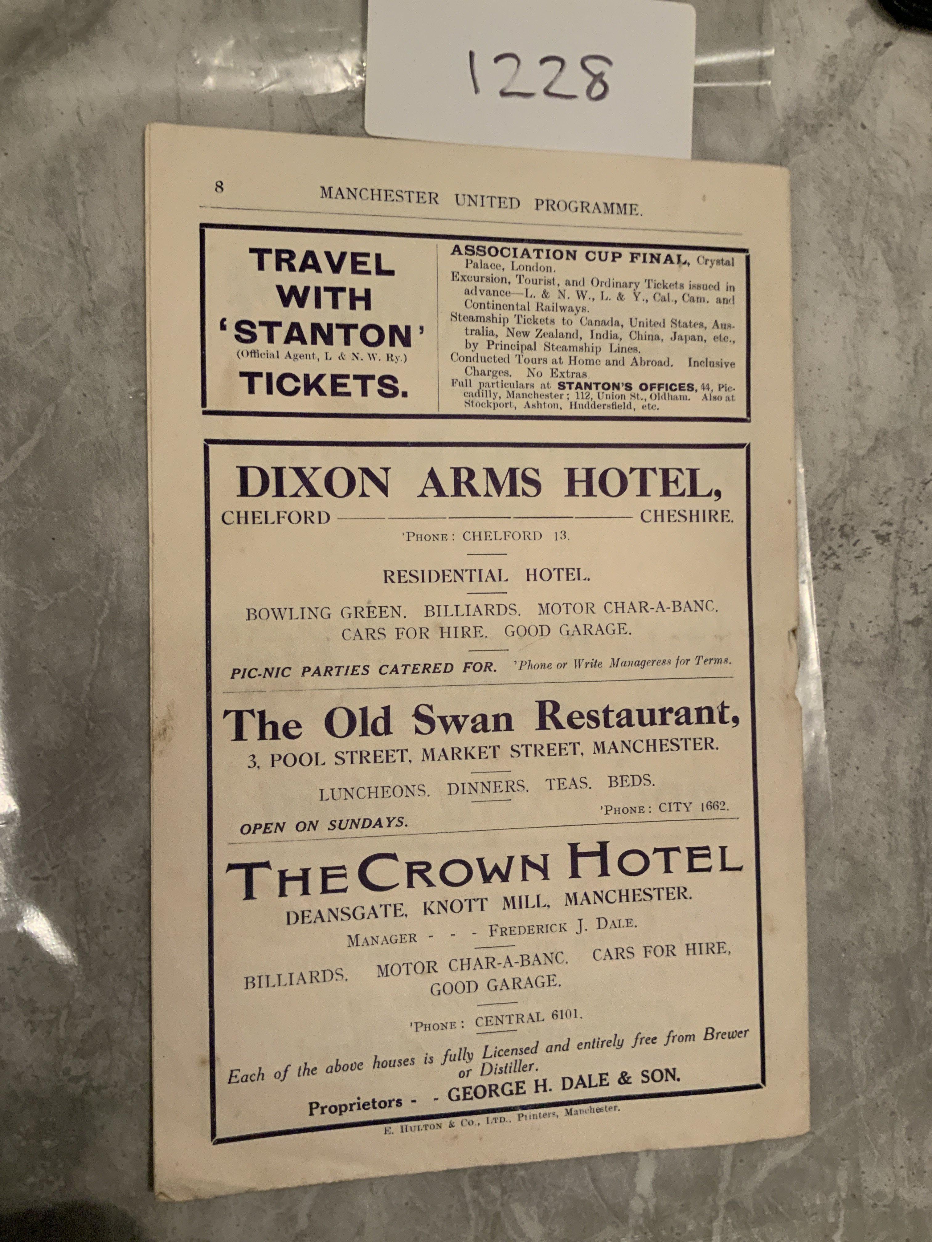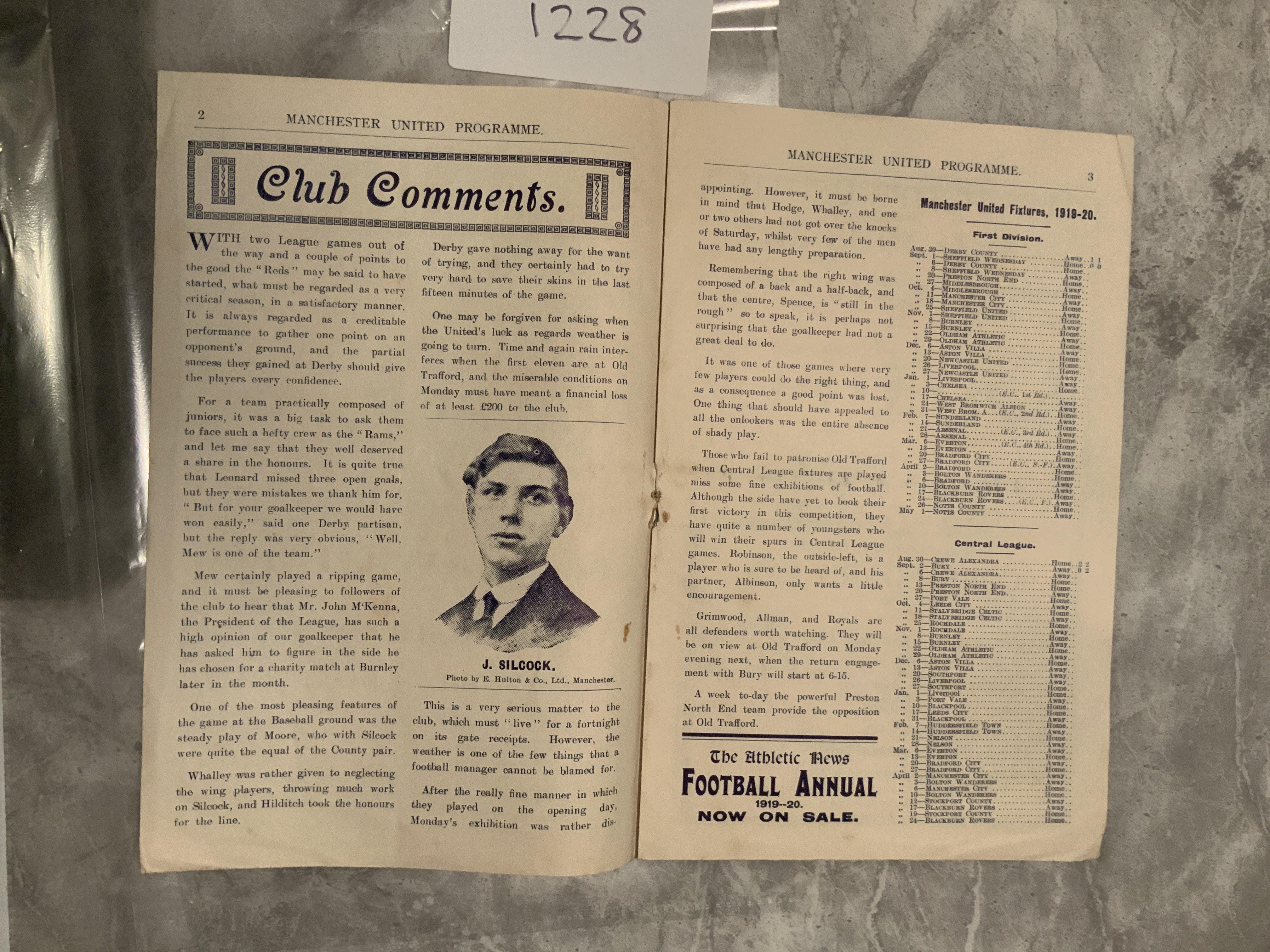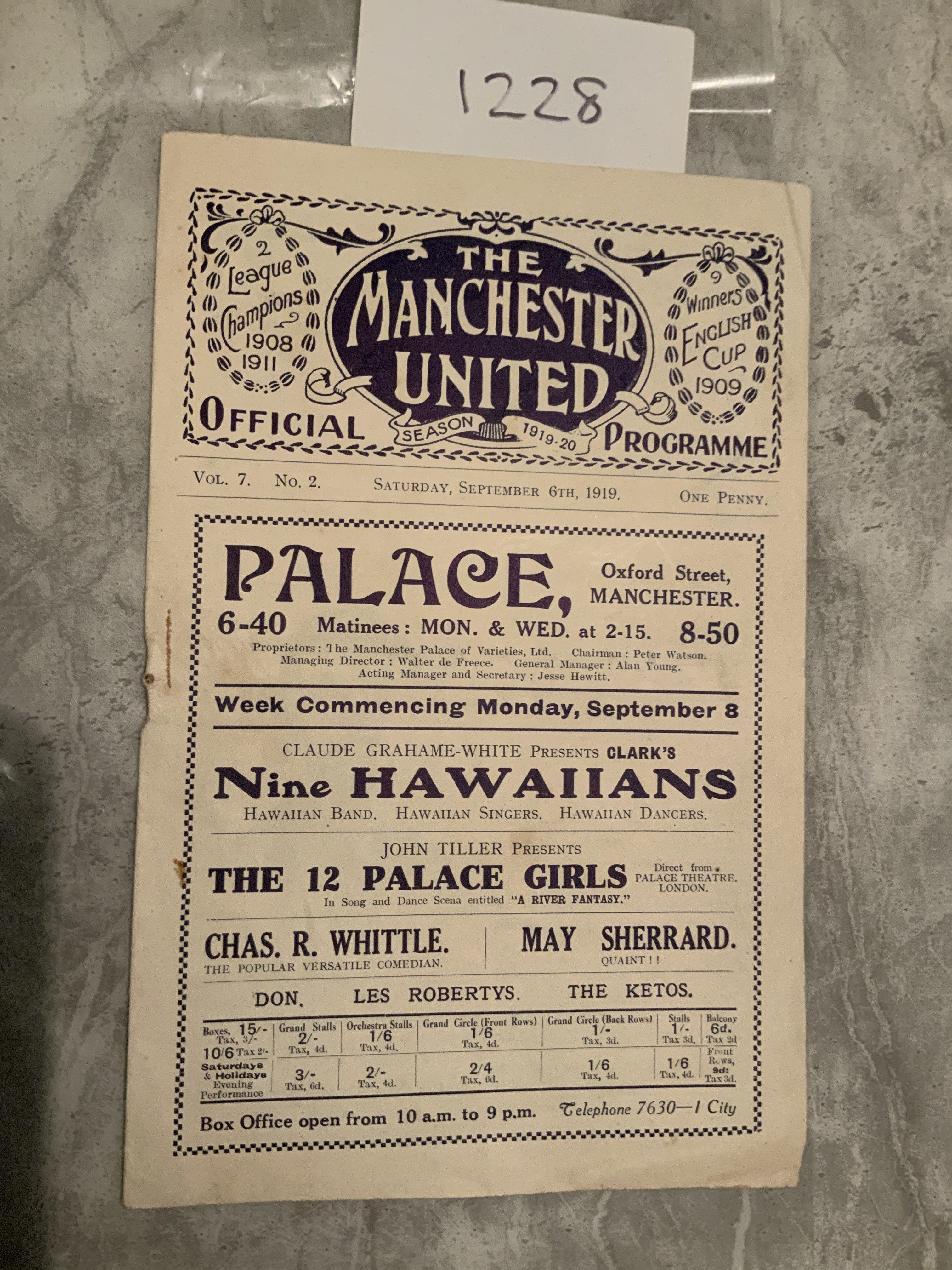 1919 - 1920 Manchester United v Derby County Football Programme: Very rare season and in excellent condition. 8 pager with no writing.