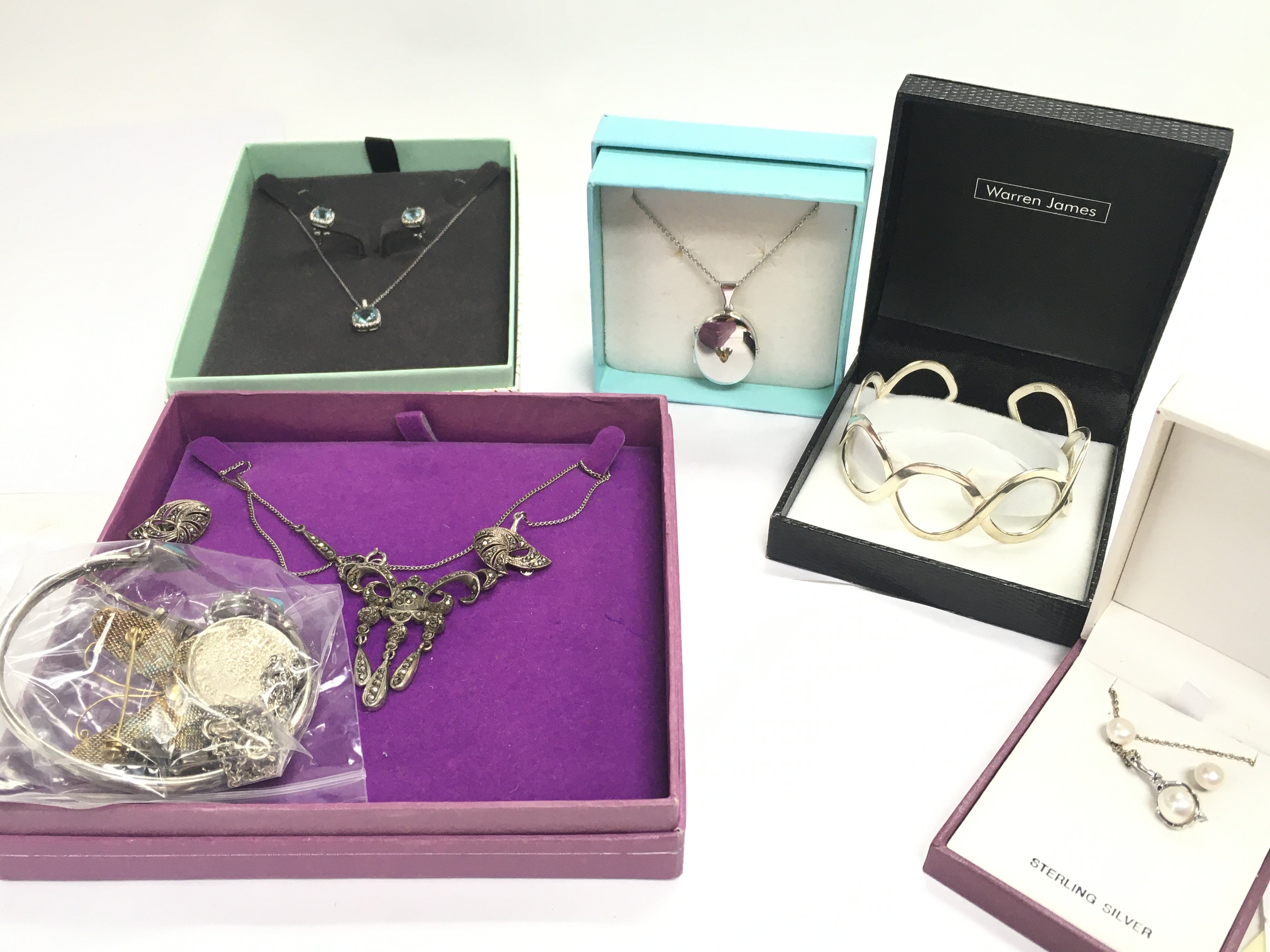 A collection of silver jewellery including bracelets, necklaces. Postage category B