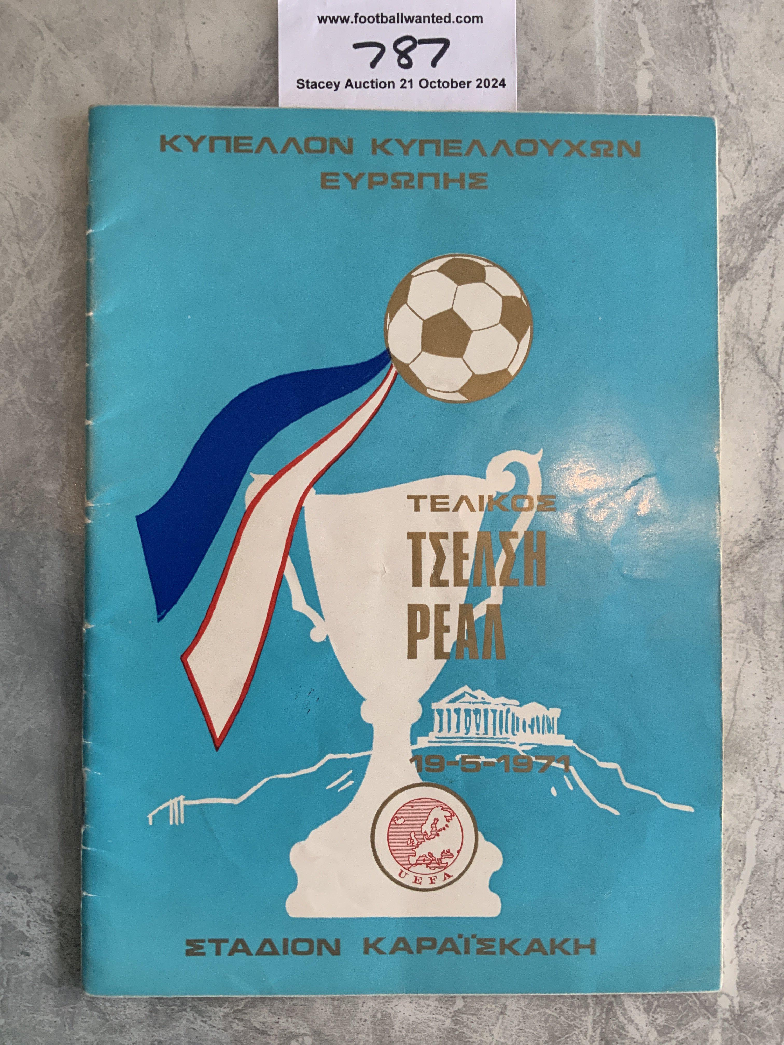 1971 European Cup Winners Cup Final Football Programme: Real Madrid v Chelsea played in Athens in very good condition with no team changes.