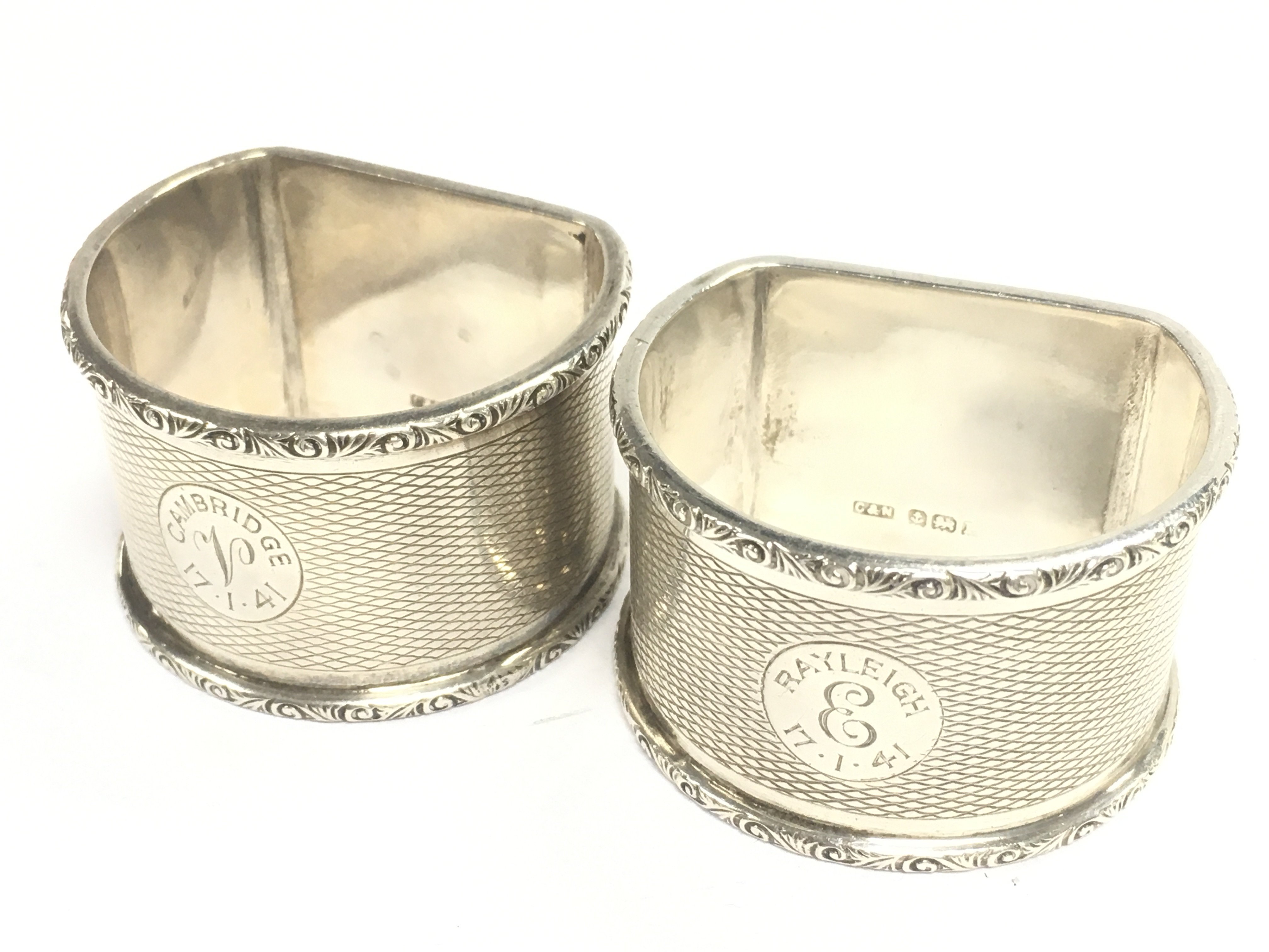 A collection of flatware, silver plated cutlery and two silver hallmarked napkin rings. Postage category C