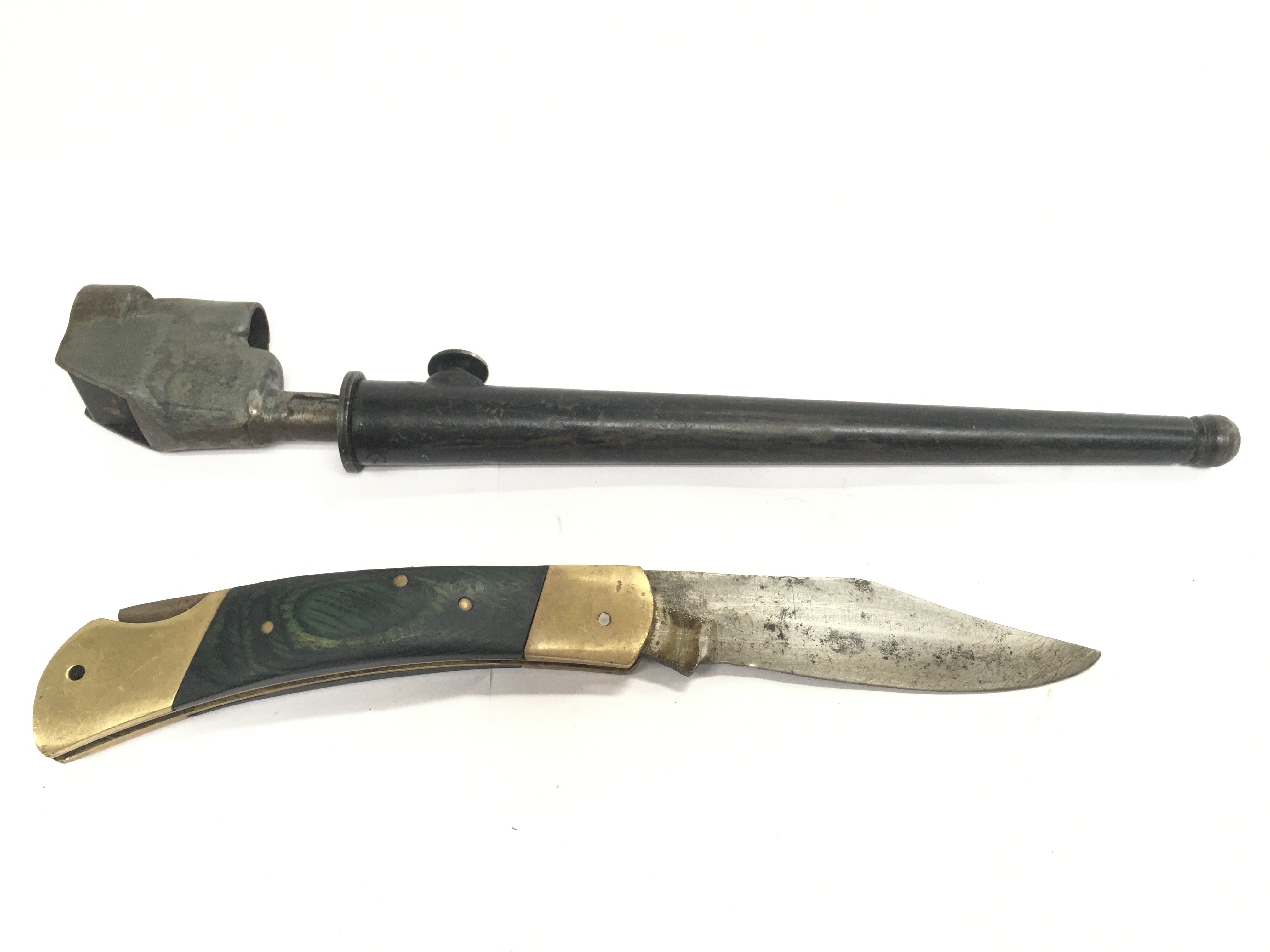 A vintage lock knife and a British army vintage pig sticker bayonet