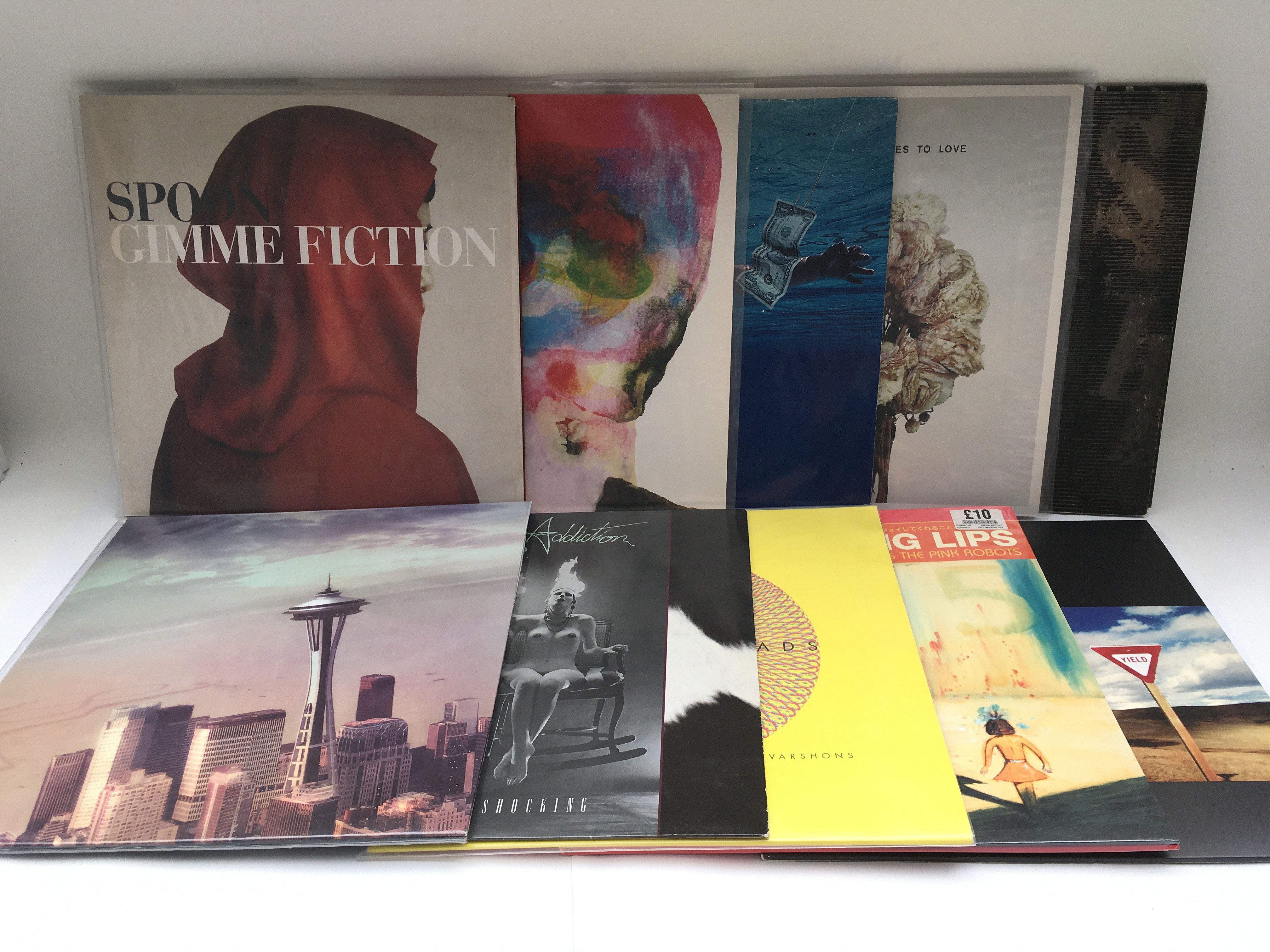 Two bags containing 20 indie rock/grunge LPs and 12" singles by various artists including Nirvana, Pearl Jam, Foo Fighters, Jane'S Addiction and others. Includes original and 180g pressings.