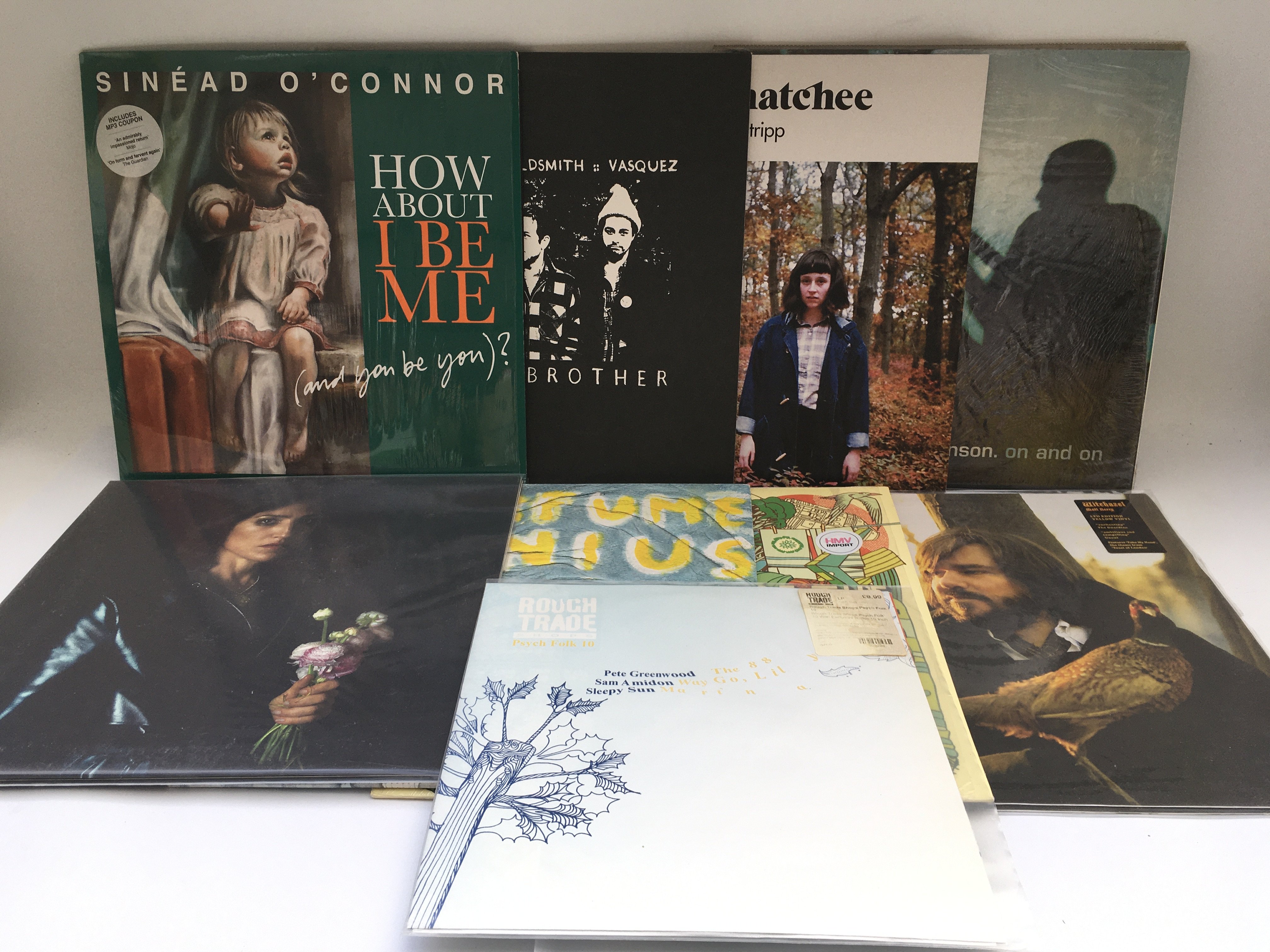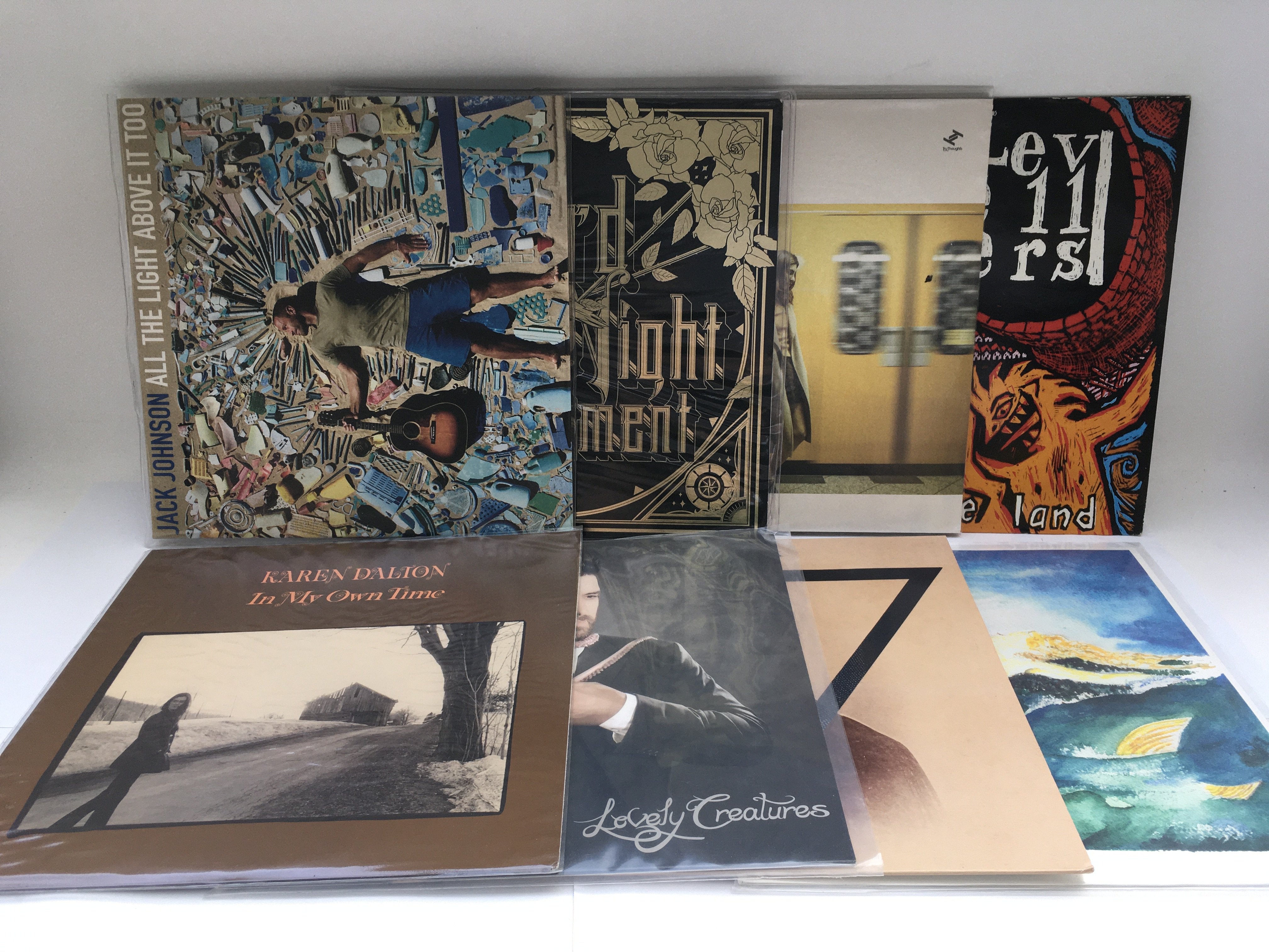 Two bags containing 17 indie rock and pop LPs and 12" singles by various artists including Joan As Police Woman, Matt Berry, Jack Johnson and others. Includes original and 180g pressings.