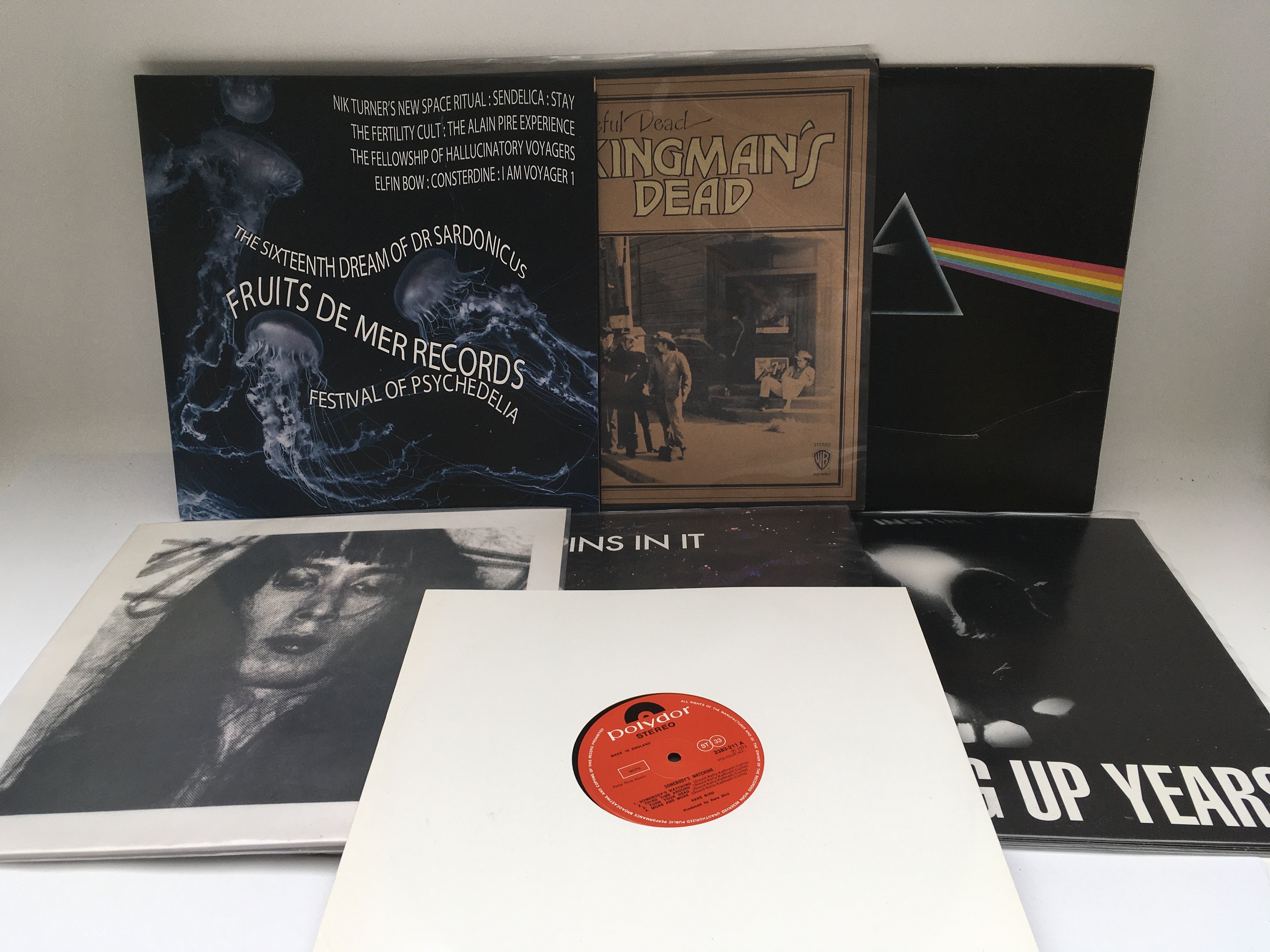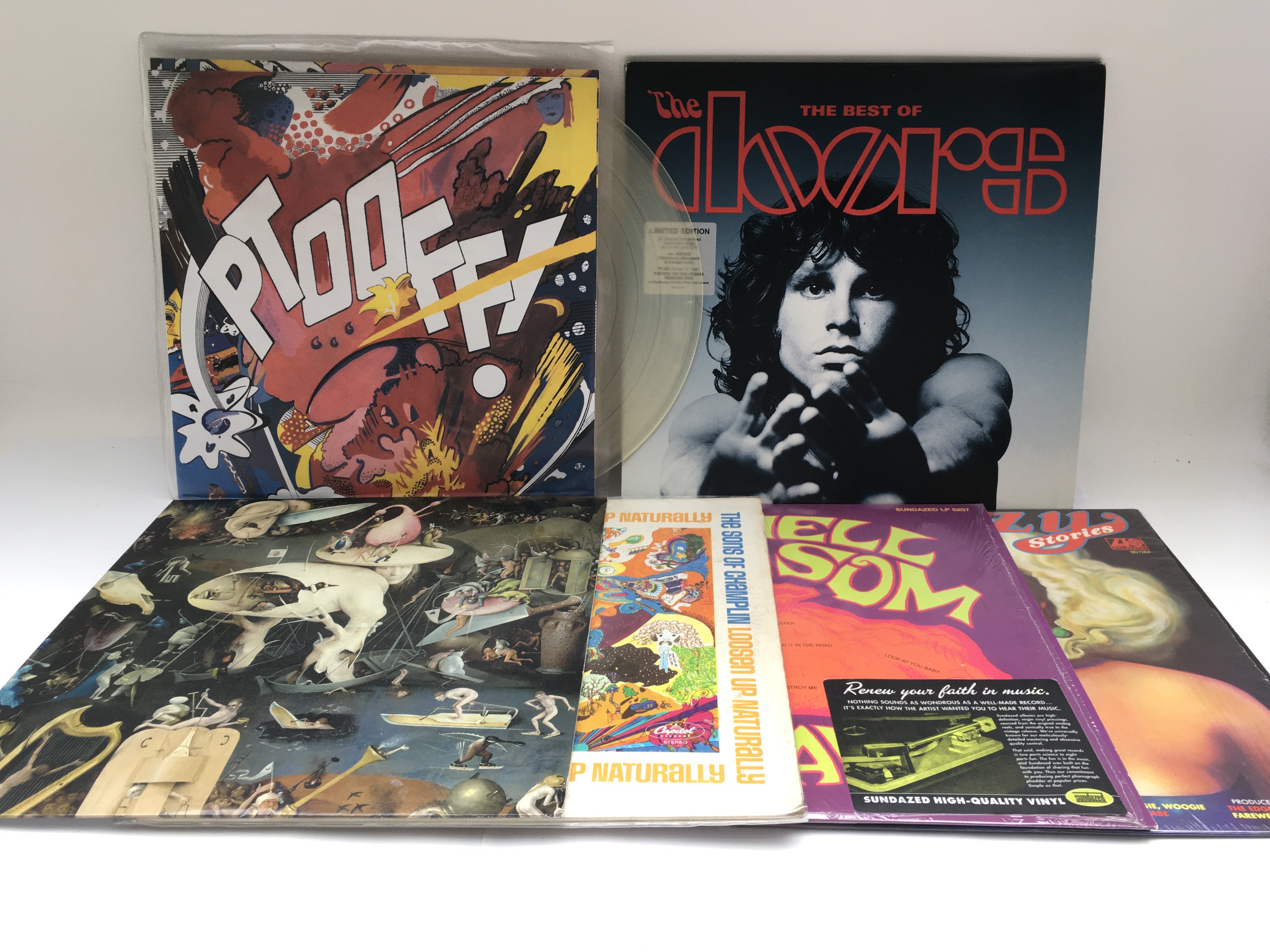 Two bags containing 13 psych rock LPs by various artists including The Doors, Pink Floyd, Lowell Fulsom and others. Includes original and 180g pressings.