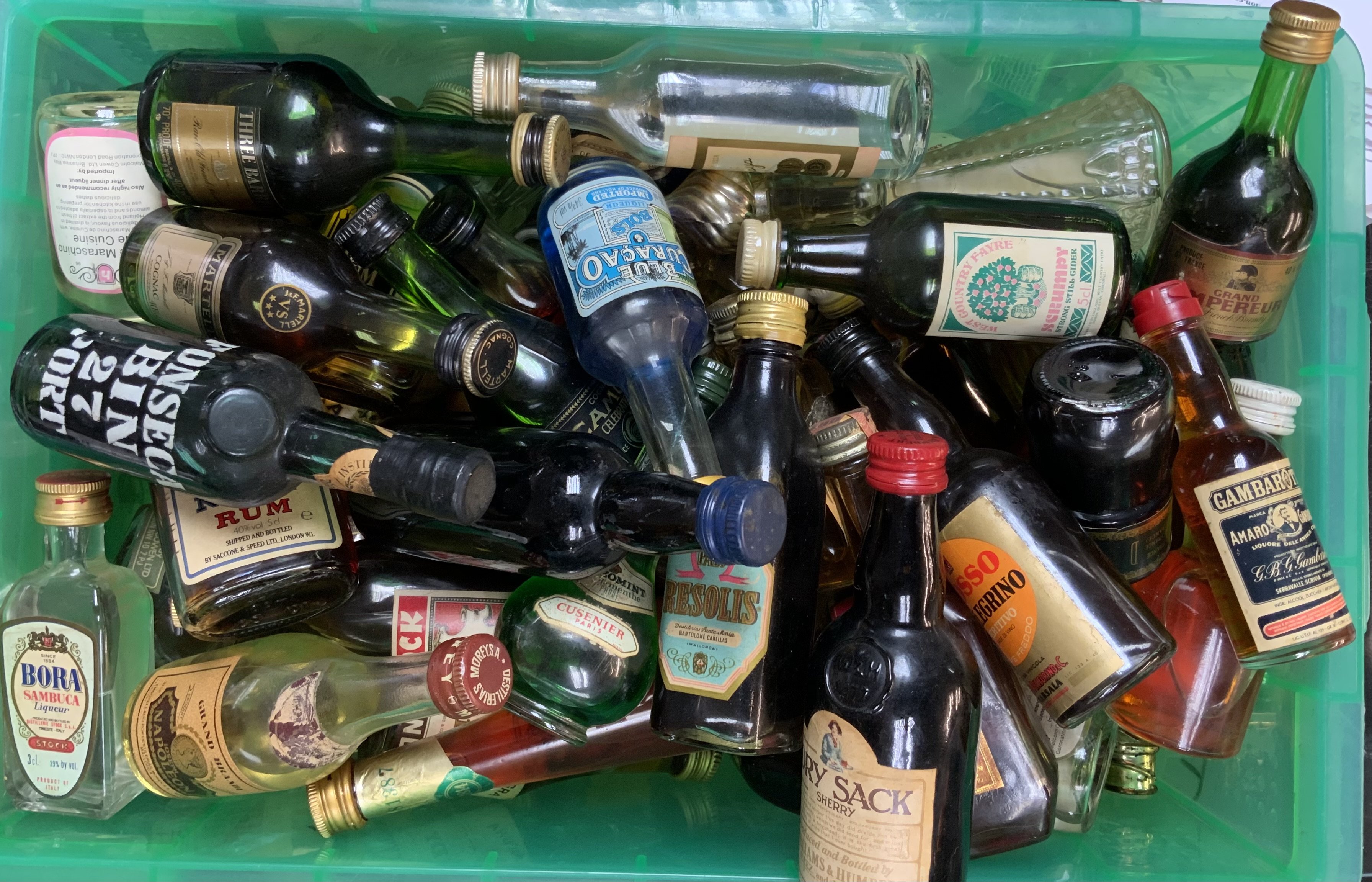 A large collection of alcohol miniatures including liquors and Brandy. (D),