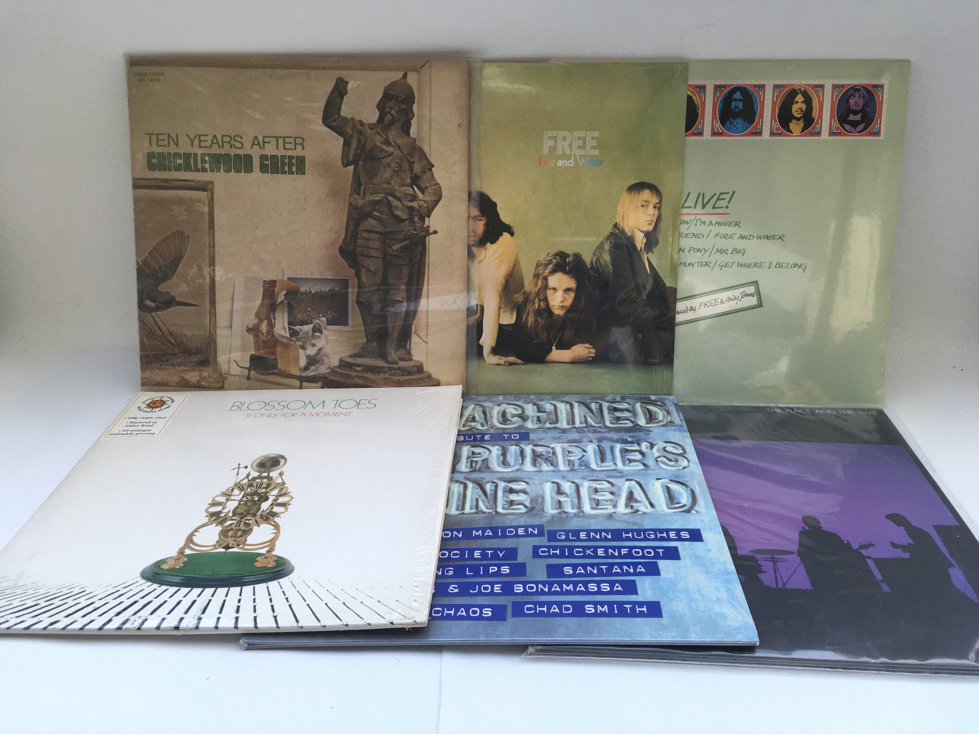 Two bags containing 13 rock LPs by various artists including Ten Years After, Free, Jimi Hendrix, Moby Grape and others. Includes original and 180g pressings. Some sealed and mint examples.