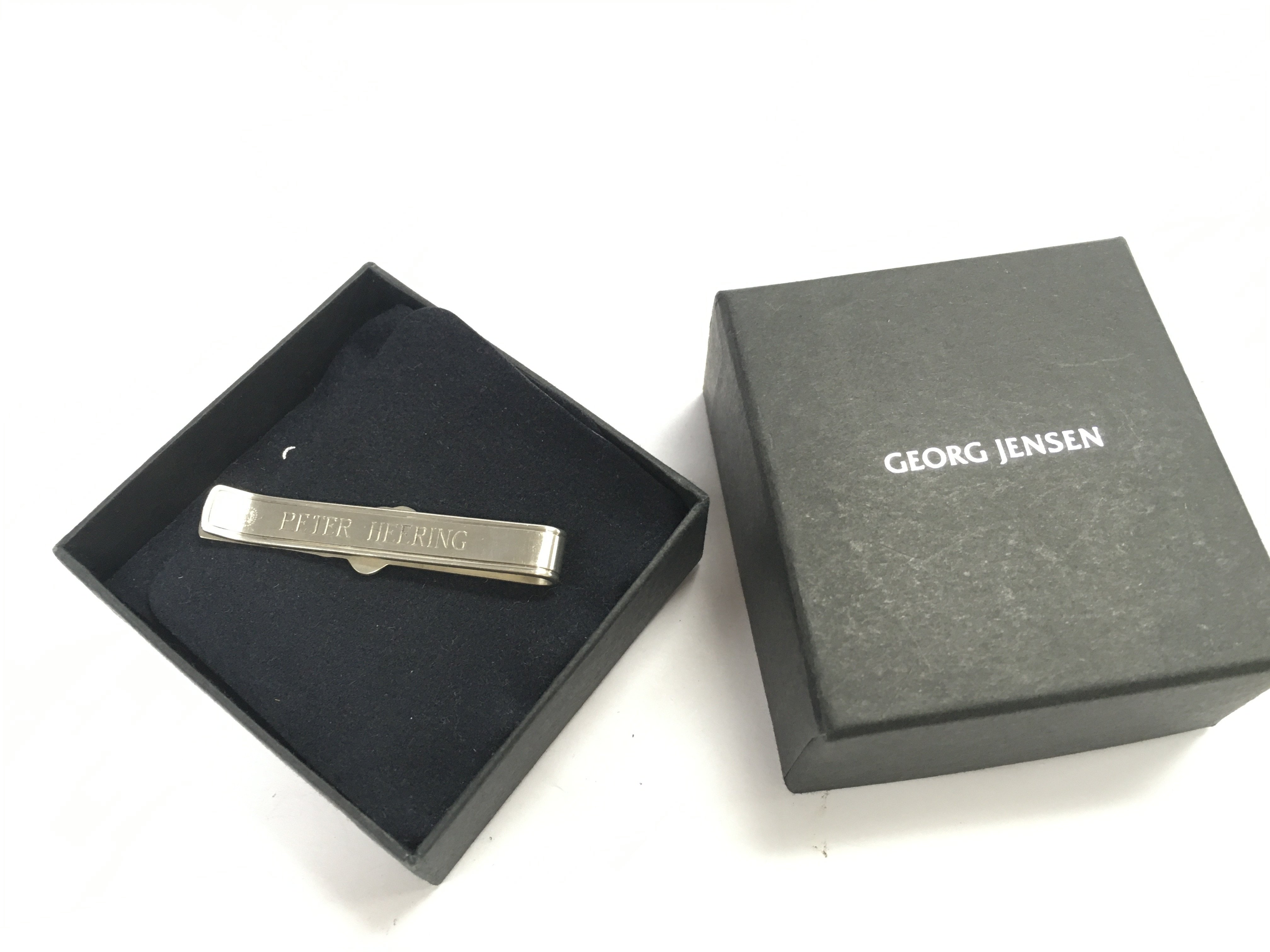 A boxed Georg Jensen Peter Heering silver tie clip, postage category A