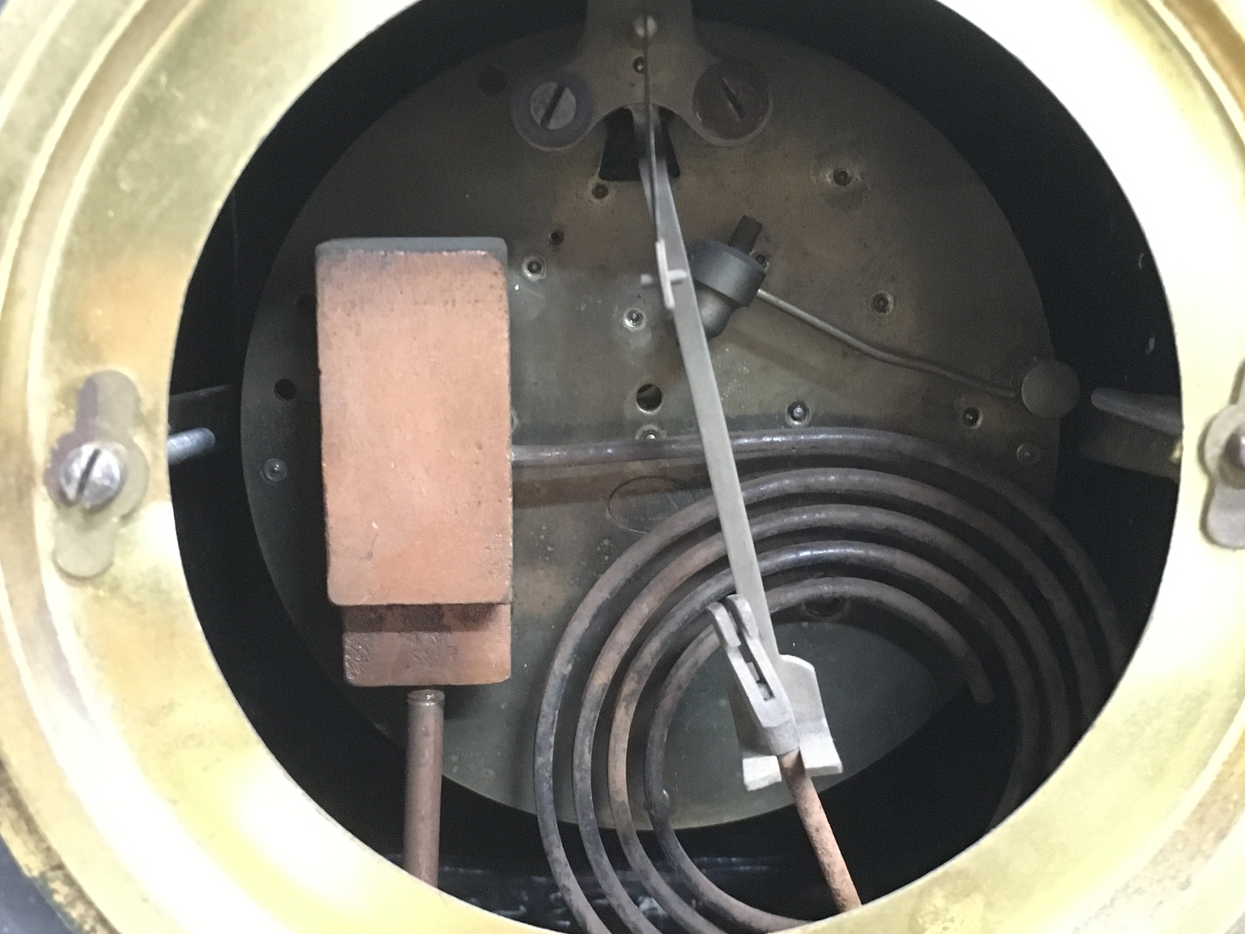 A slate and brass mantel clock, dimensions 14x34x31cm. This lot cannot be posted, NO RESERVE