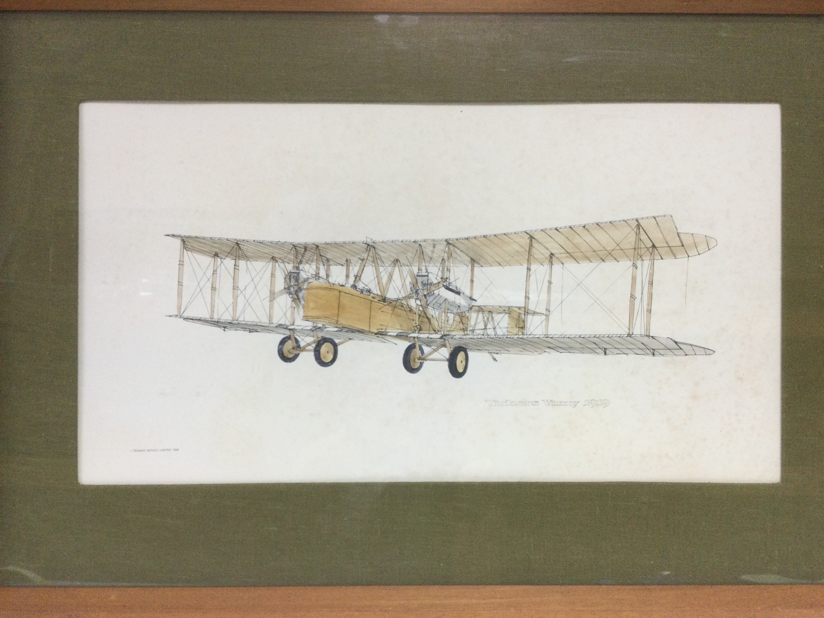 A framed and glazed watercolour, pen and ink drawing of a Vickers Vimy aeroplane, approx 80cm x 54cm. Shipping category D. NO RESERVE