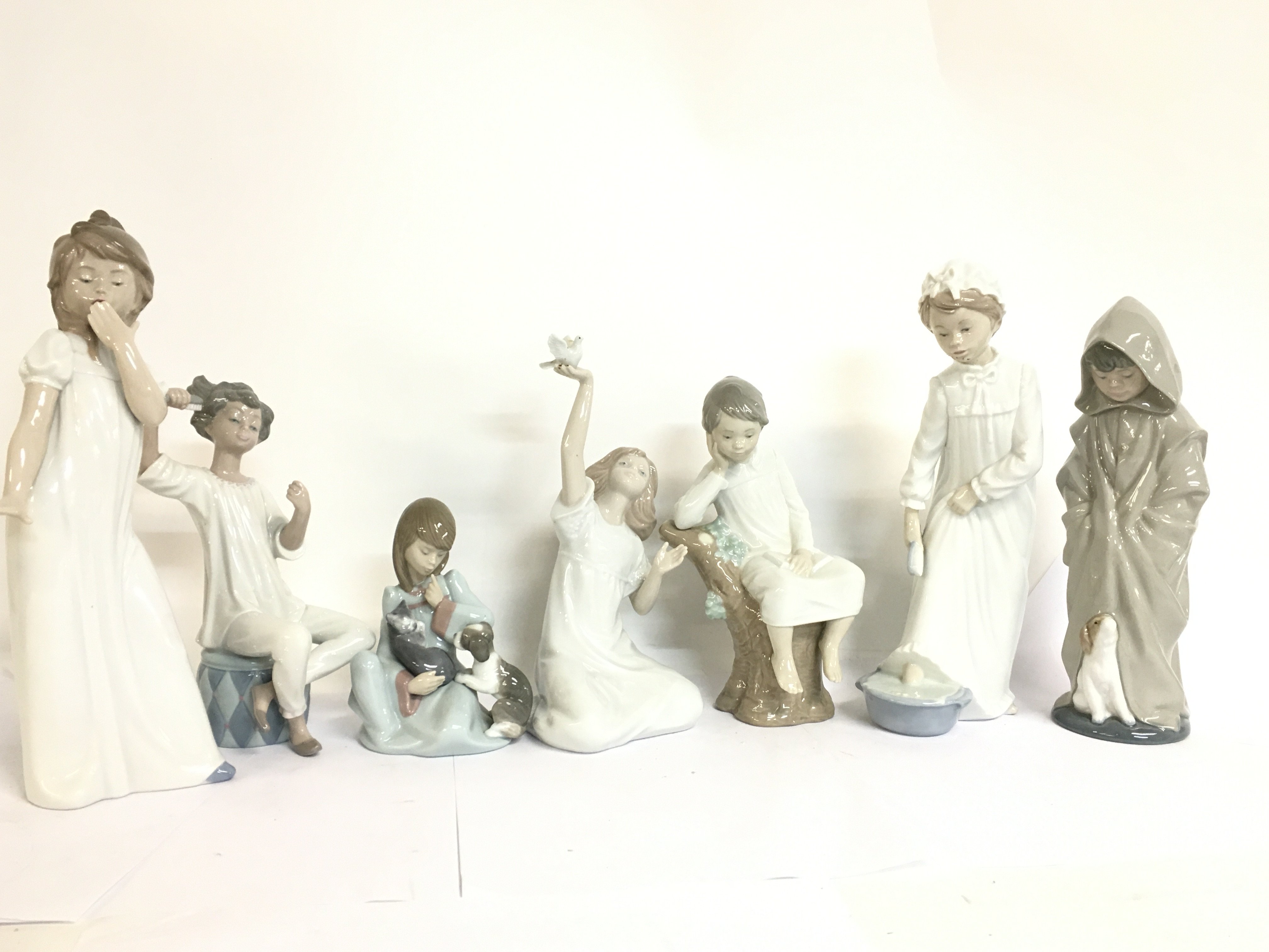 A collection of porcelain Lladro figures , 15 to 30cm tall. this lot cannot be posted