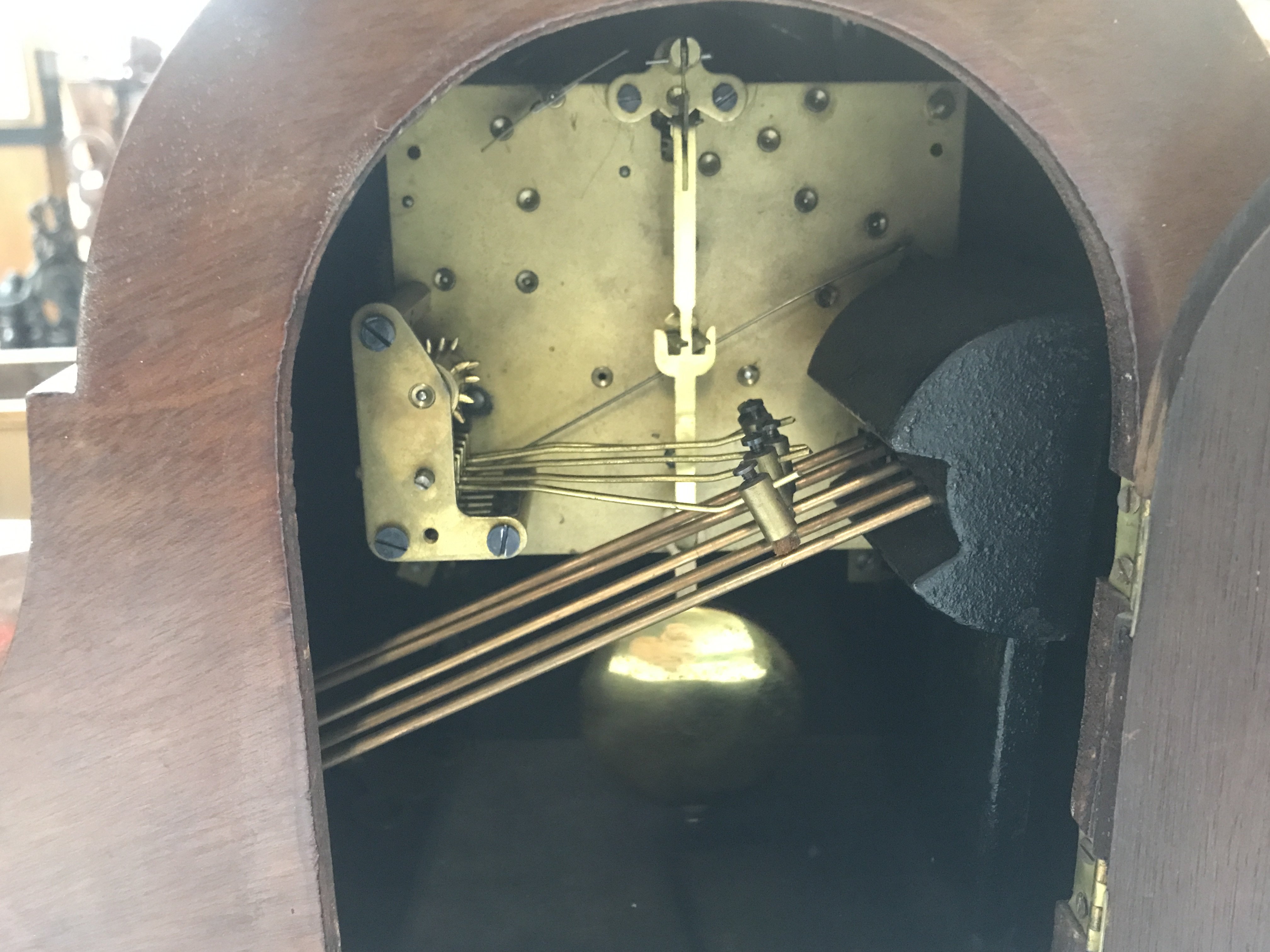 An Edwardian mantle art deco clock. Working with Westminster chimes. Postage D.
