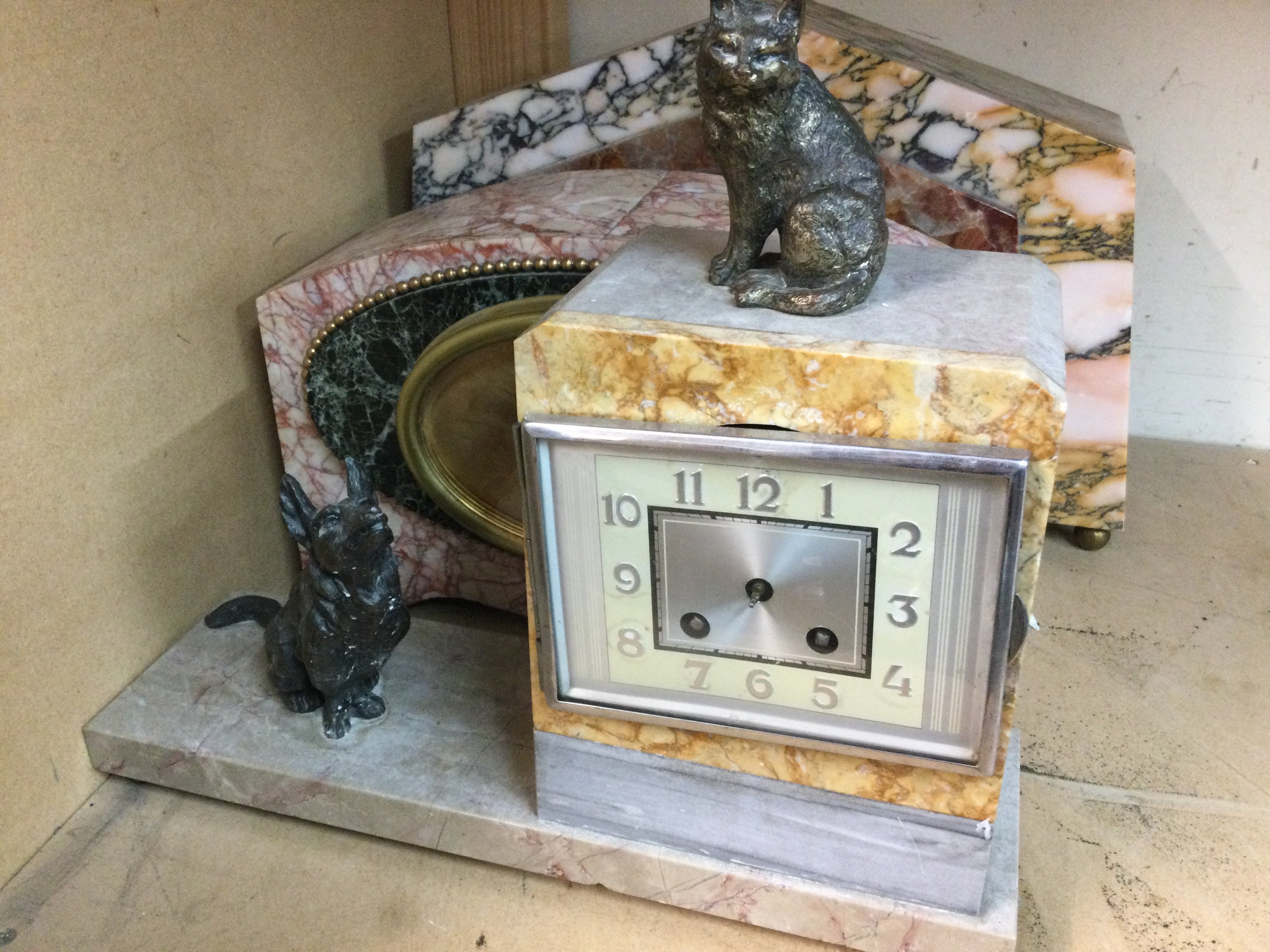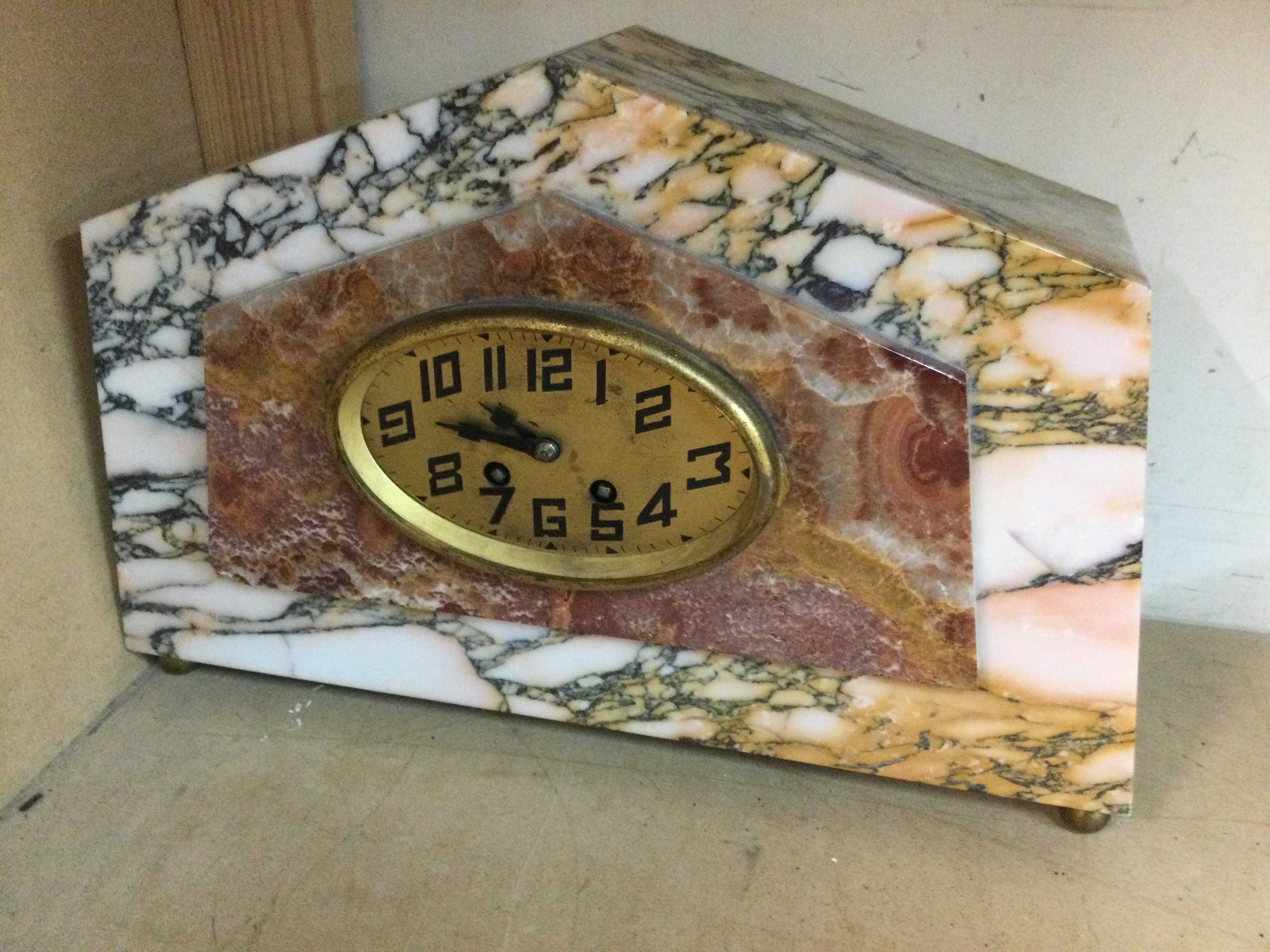 Three marble mantle of Art Deco form .