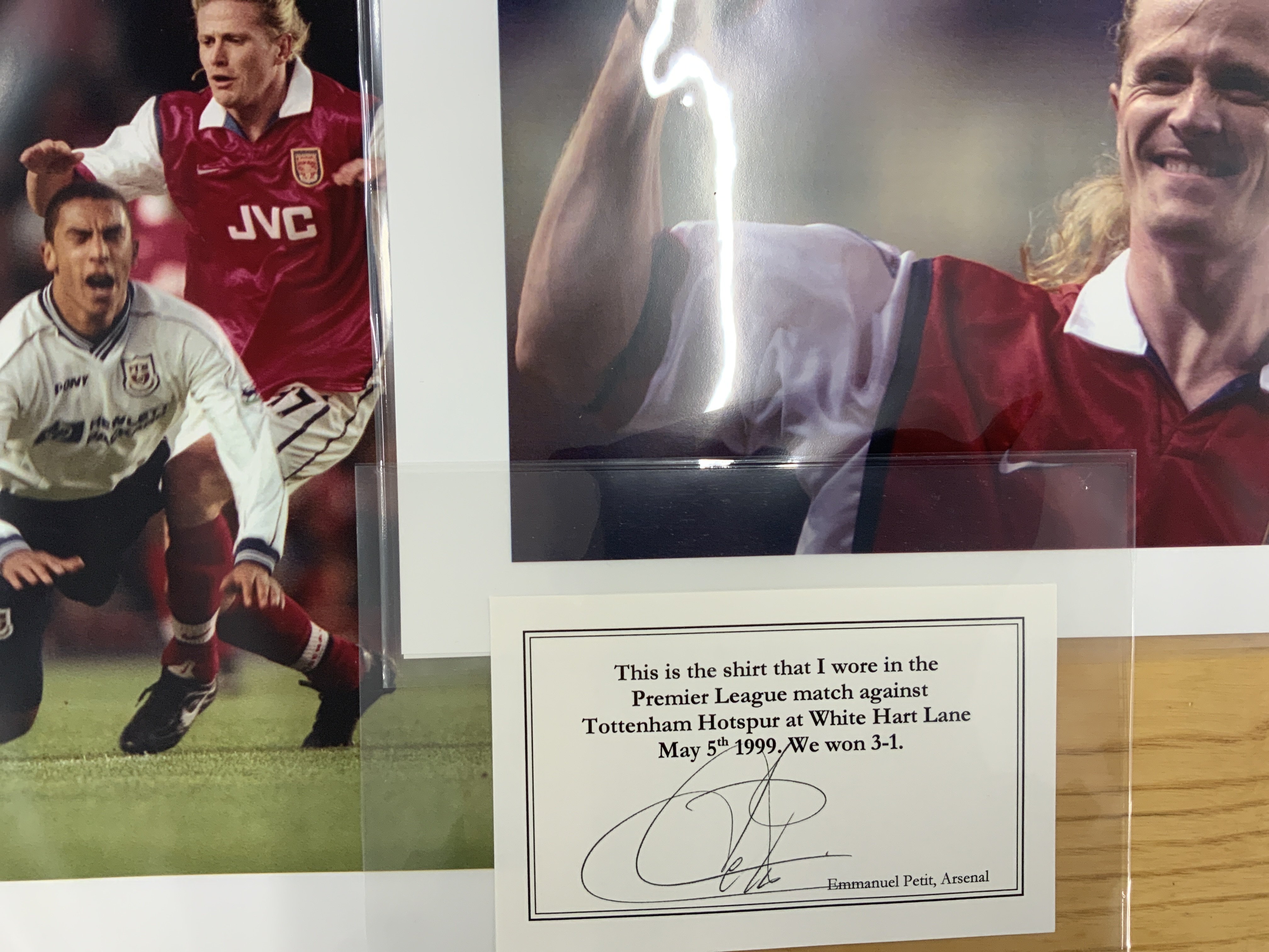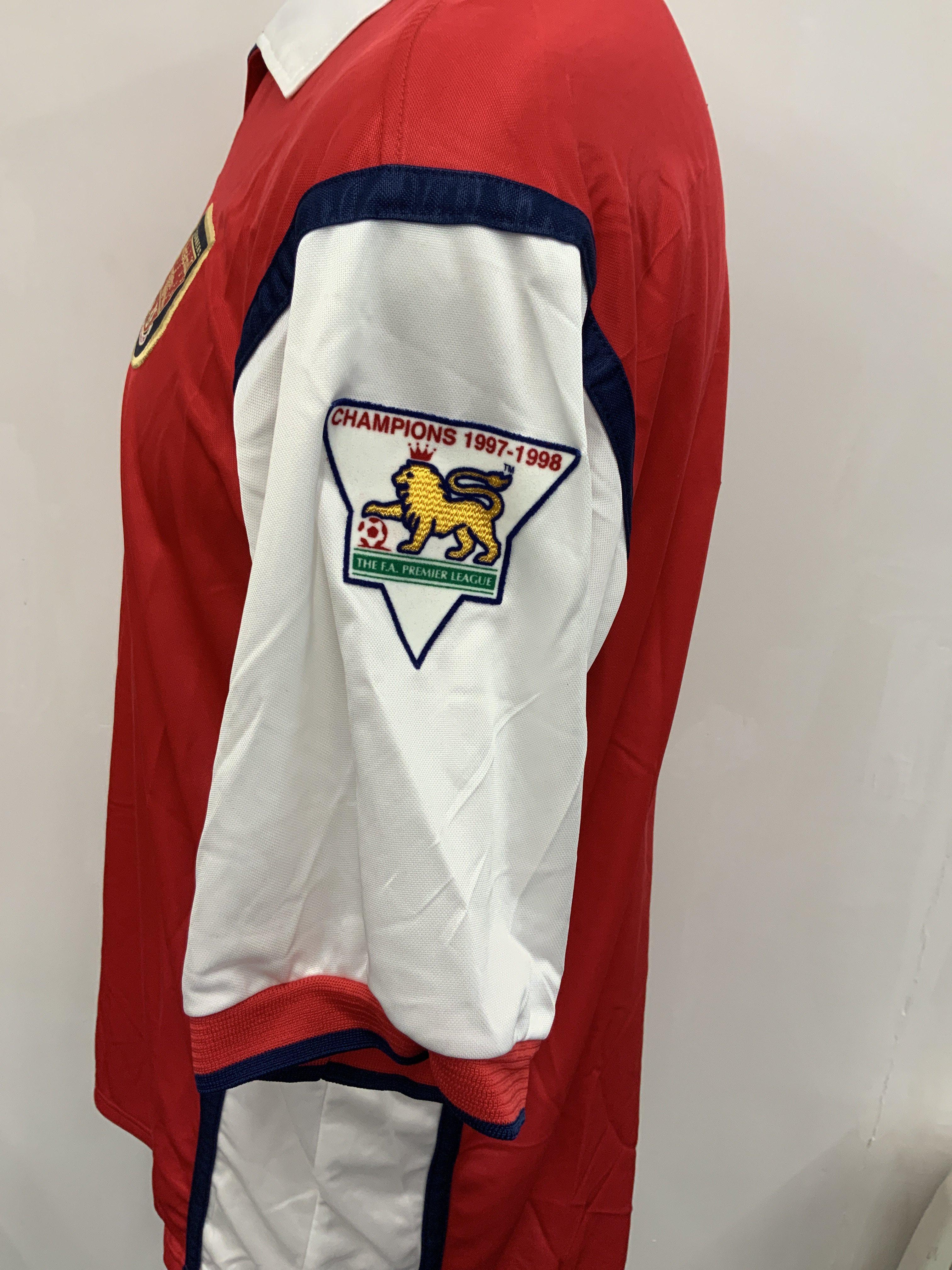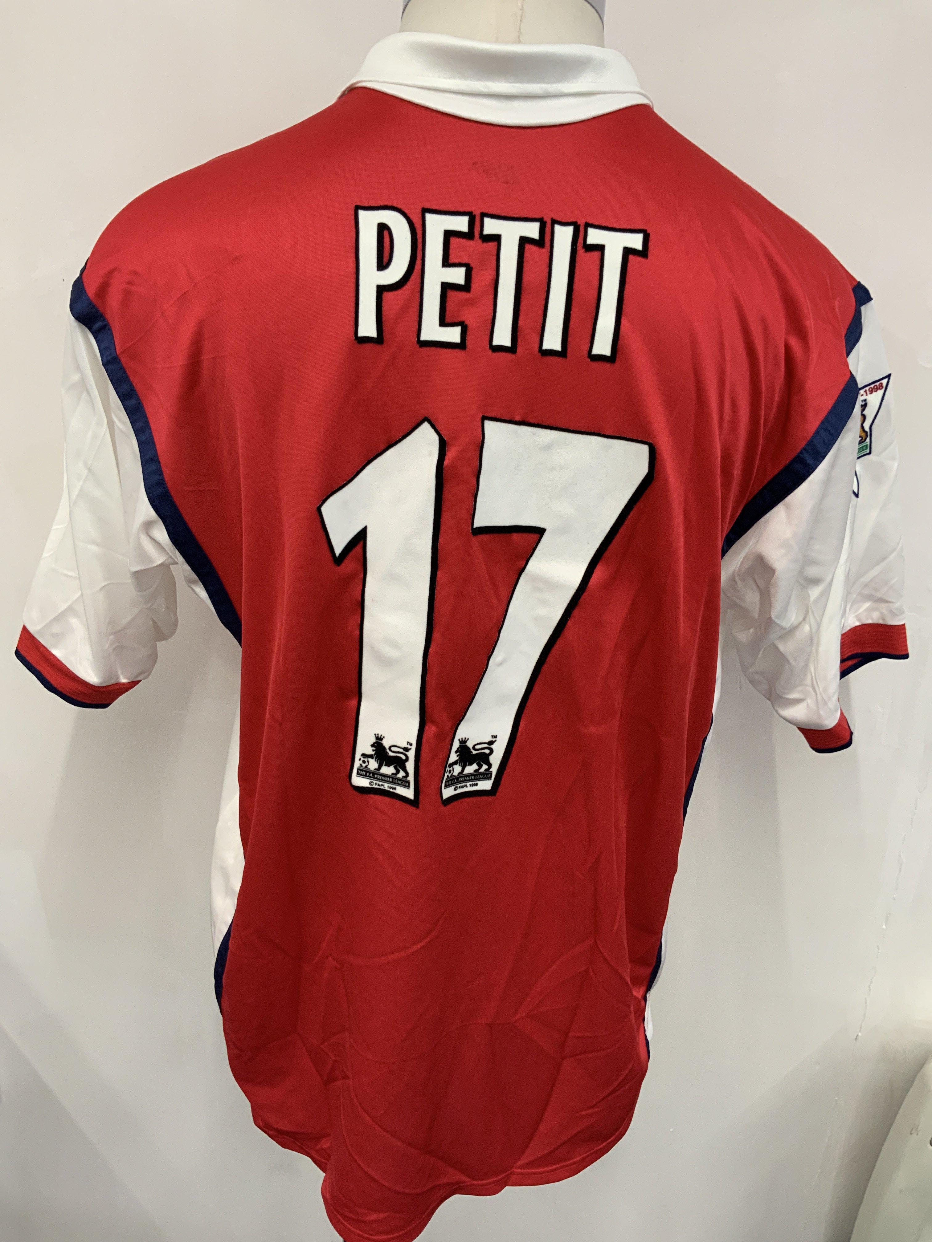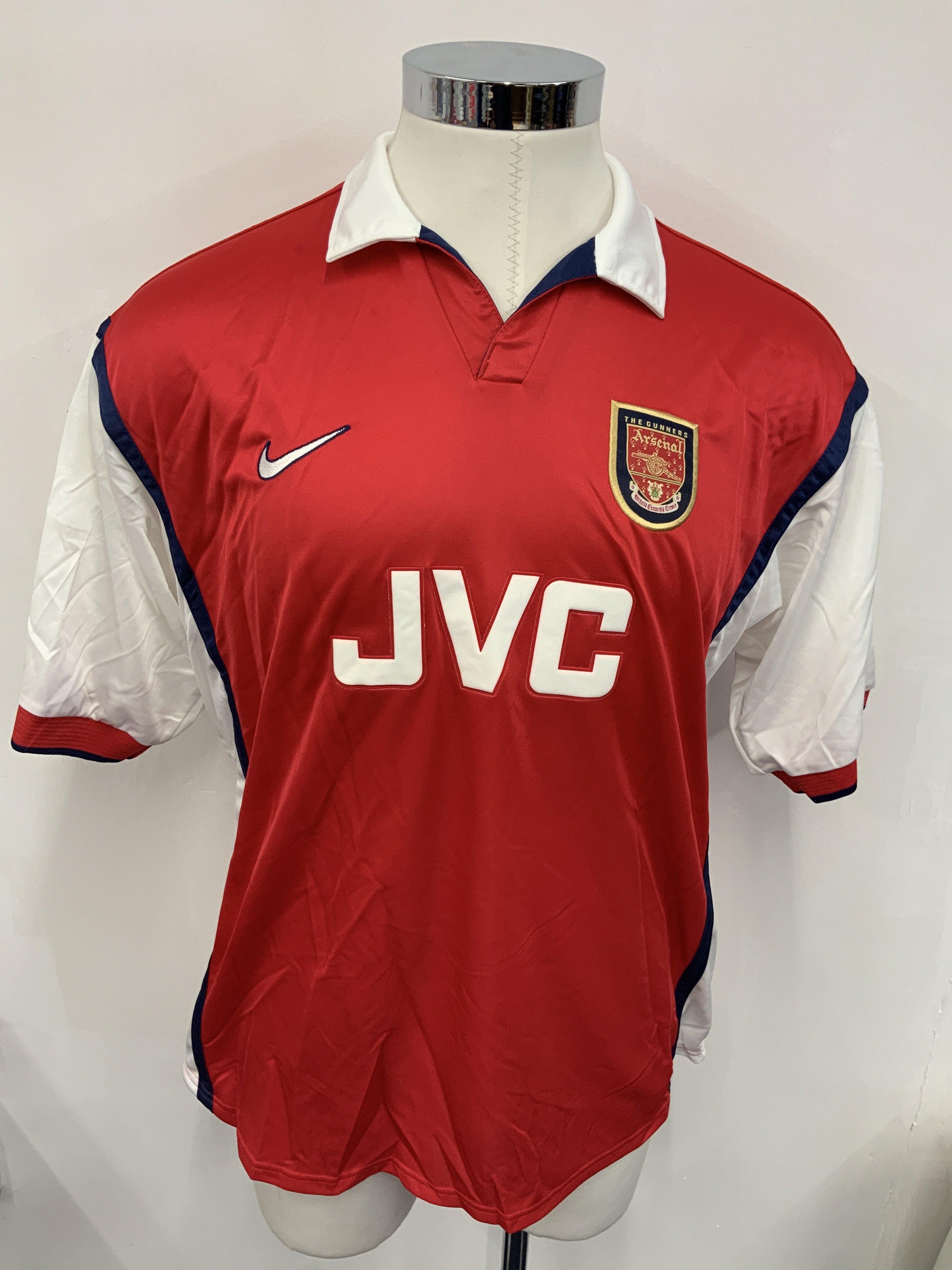 Arsenal 1998 - 1999 Match Worn Home Football Shirt: Short sleeve red home kit with Premier League badging to sleeve which states 1997;- 1998 Champions. Petit number 17 to rear. JVC sponsor. Signed COA stating I wore this shirt v Tottenham on September May 5th 1999. 2 press photos of him wearing this shirt.