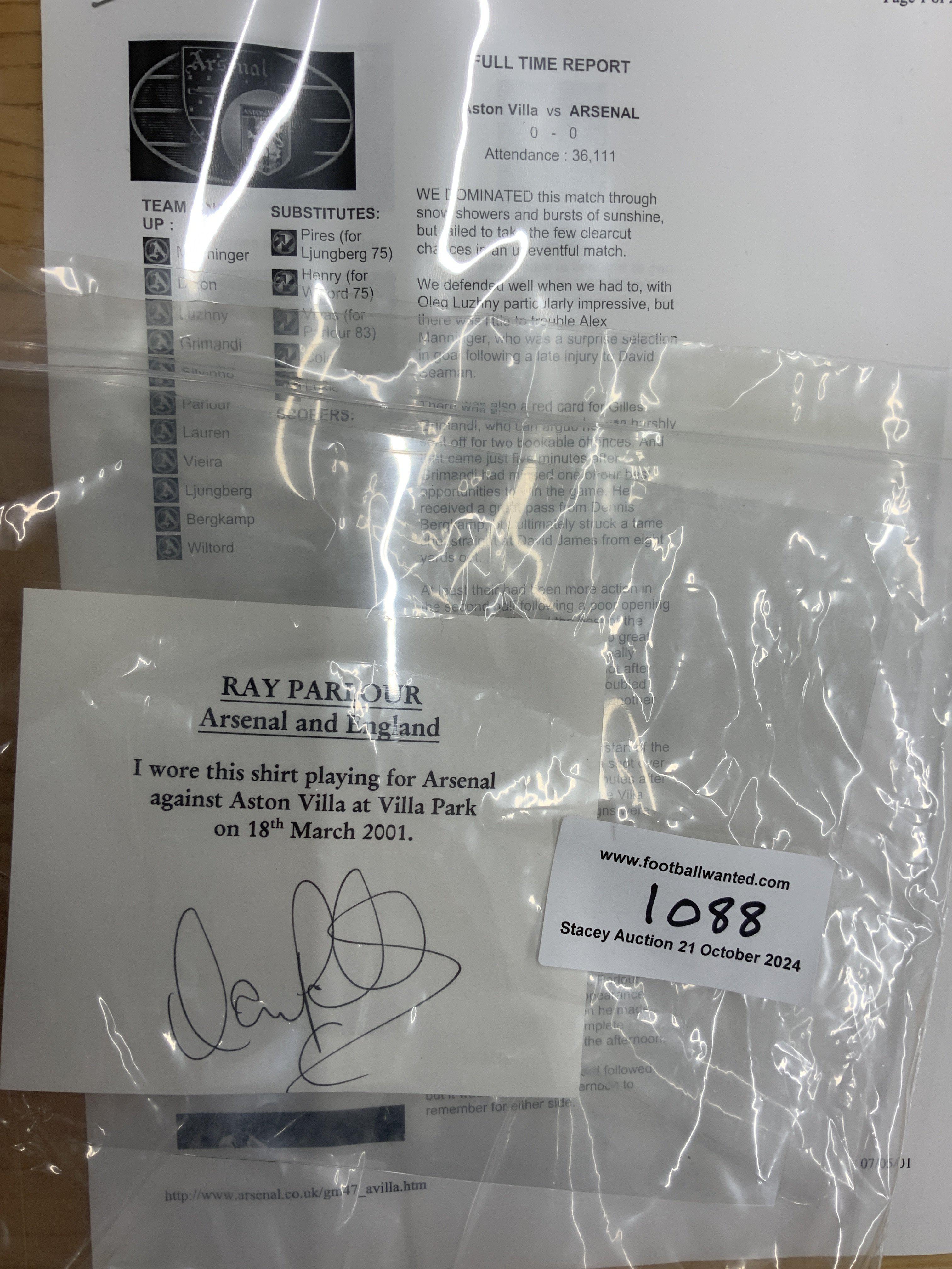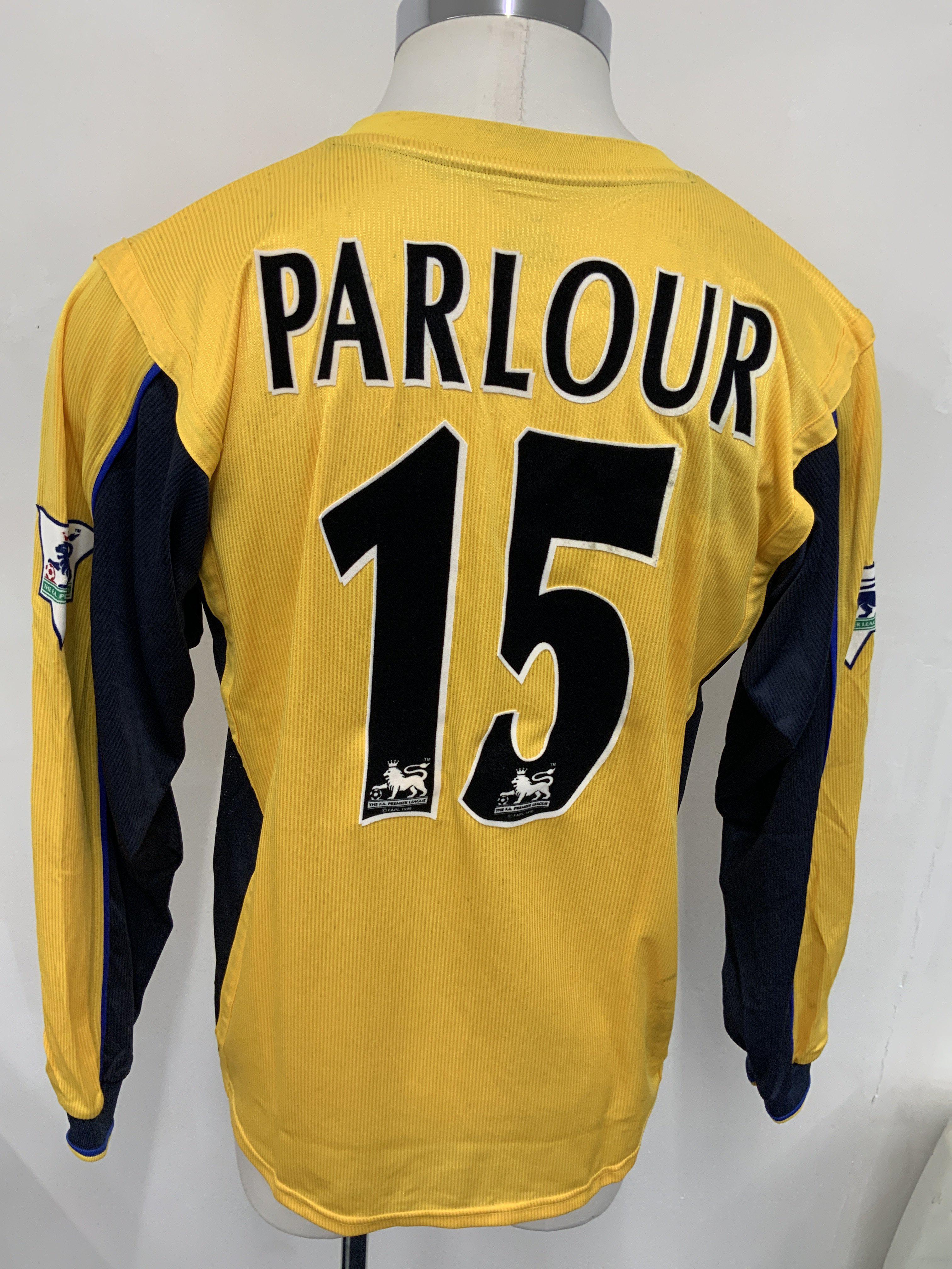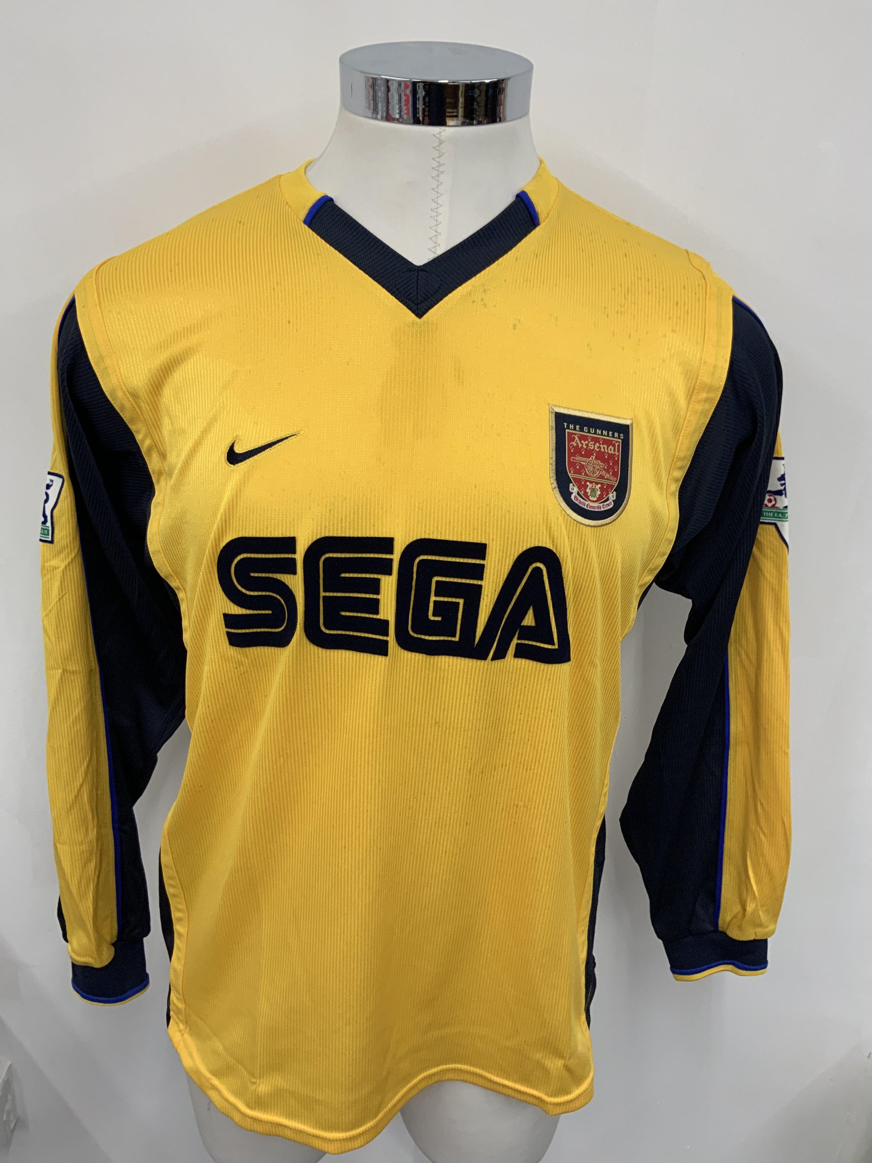 Arsenal 2000 - 2001 Match Worn Away Football Shirt: Long sleeve yellow away kit with Premier League badging to sleeve. Parlour number 15 to rear. Sega sponsor. Signed COA stating I wore this shirt v Aston Villa on September March 18th 2001.