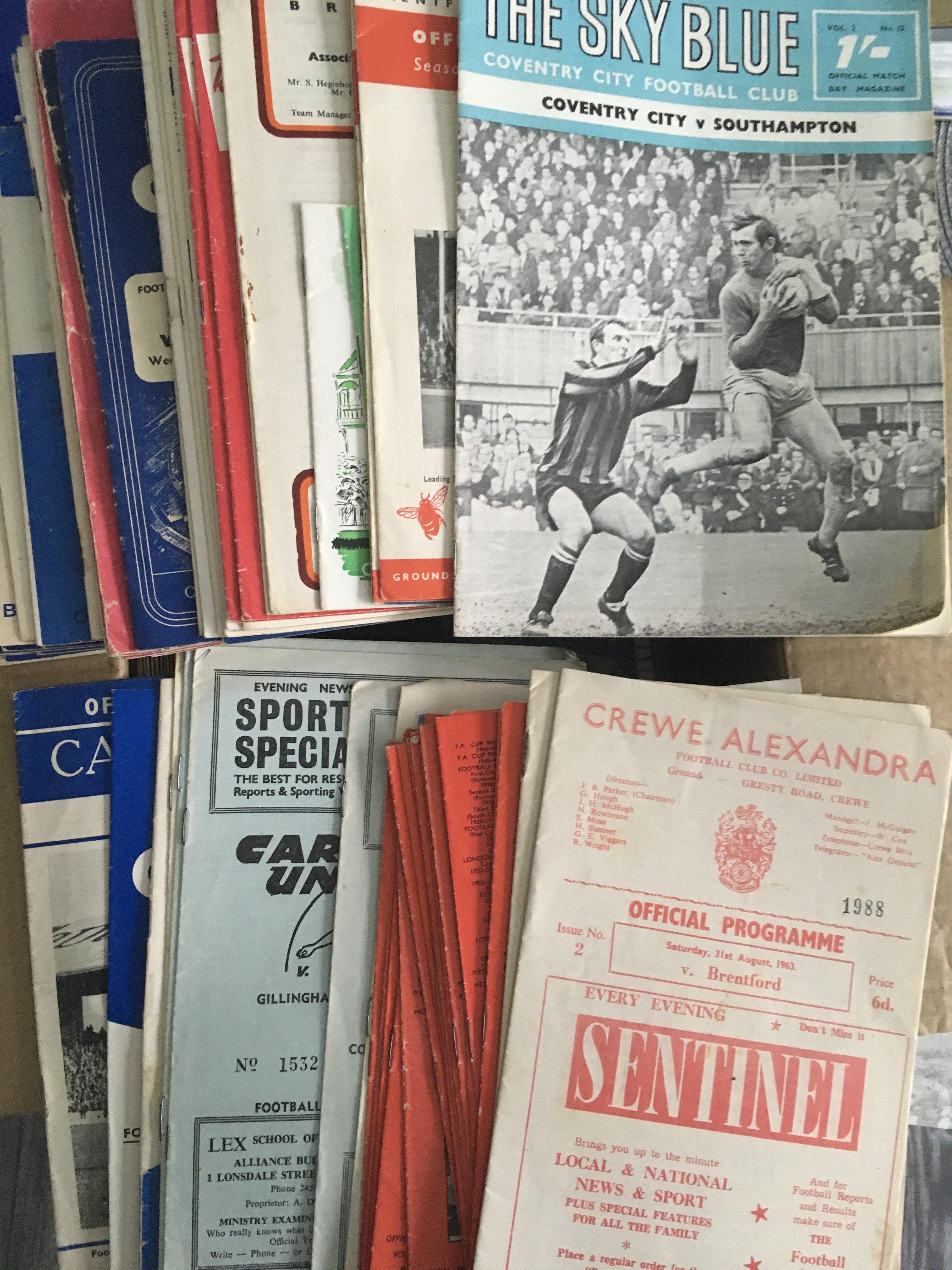 1960s + 1970s Football Programmes: Very wide range of teams in very good condition. 250 x 60s and 180 x 70s. (2 boxes)