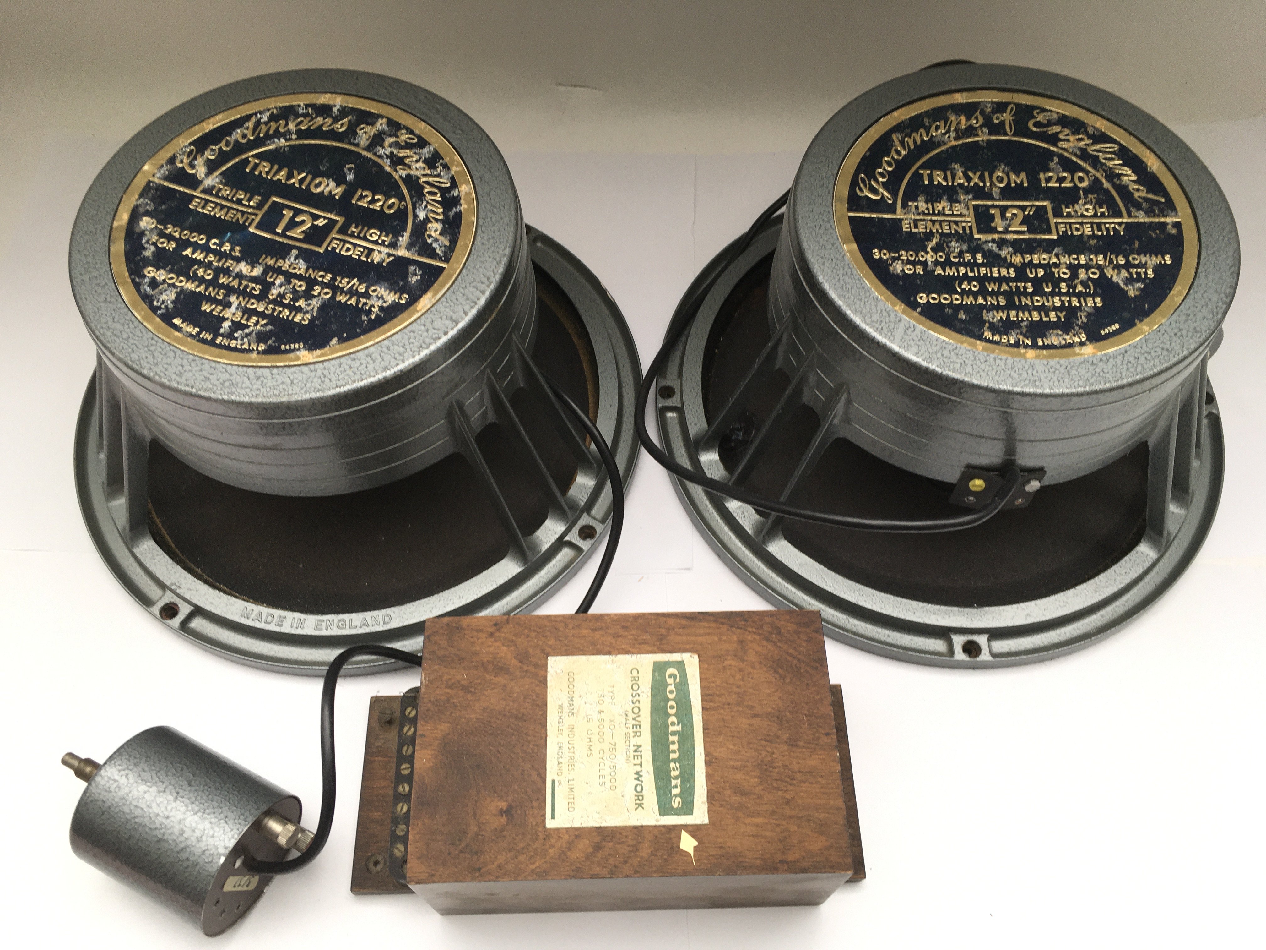 A pair of 1964 Goodmans Triaxiom 1220c 12" speakers.