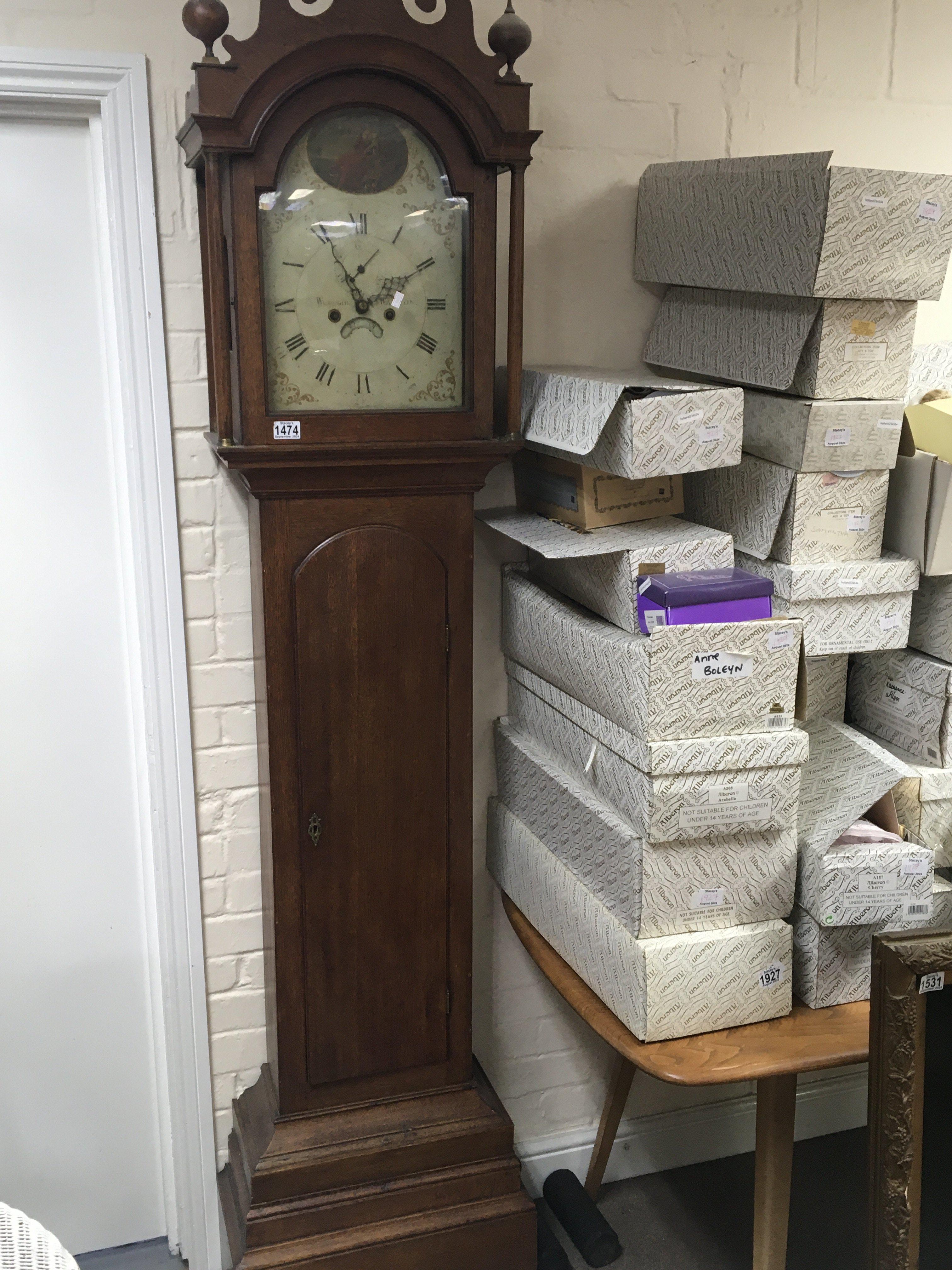 An Early Victorian long case clock eight day going with a painted dial the top arch with Britannia dial with painted inscription Watton.