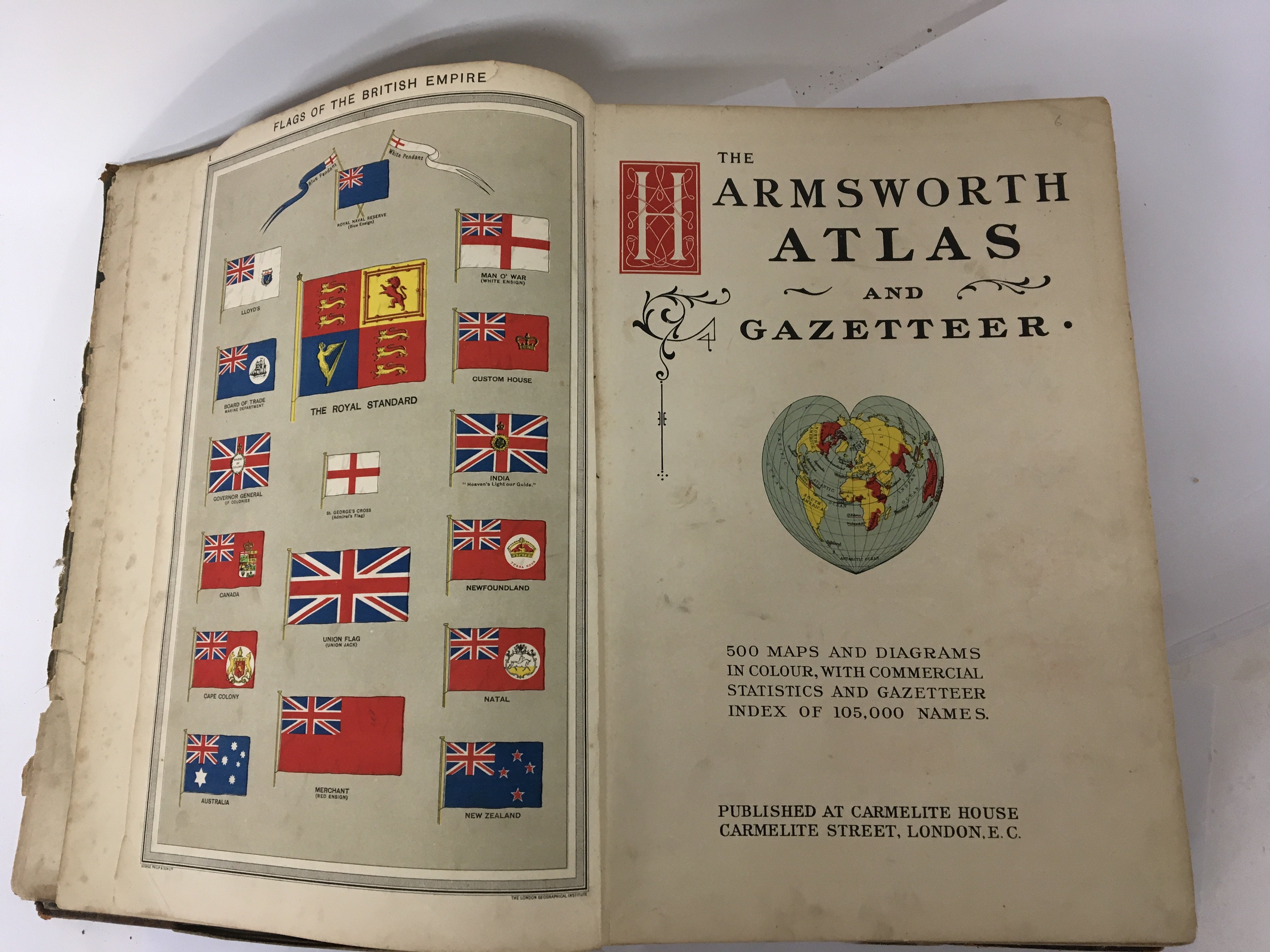 An Antique Atlas book half leather bound The Armsworth Atlas and Gazetteer. NO RESERVE