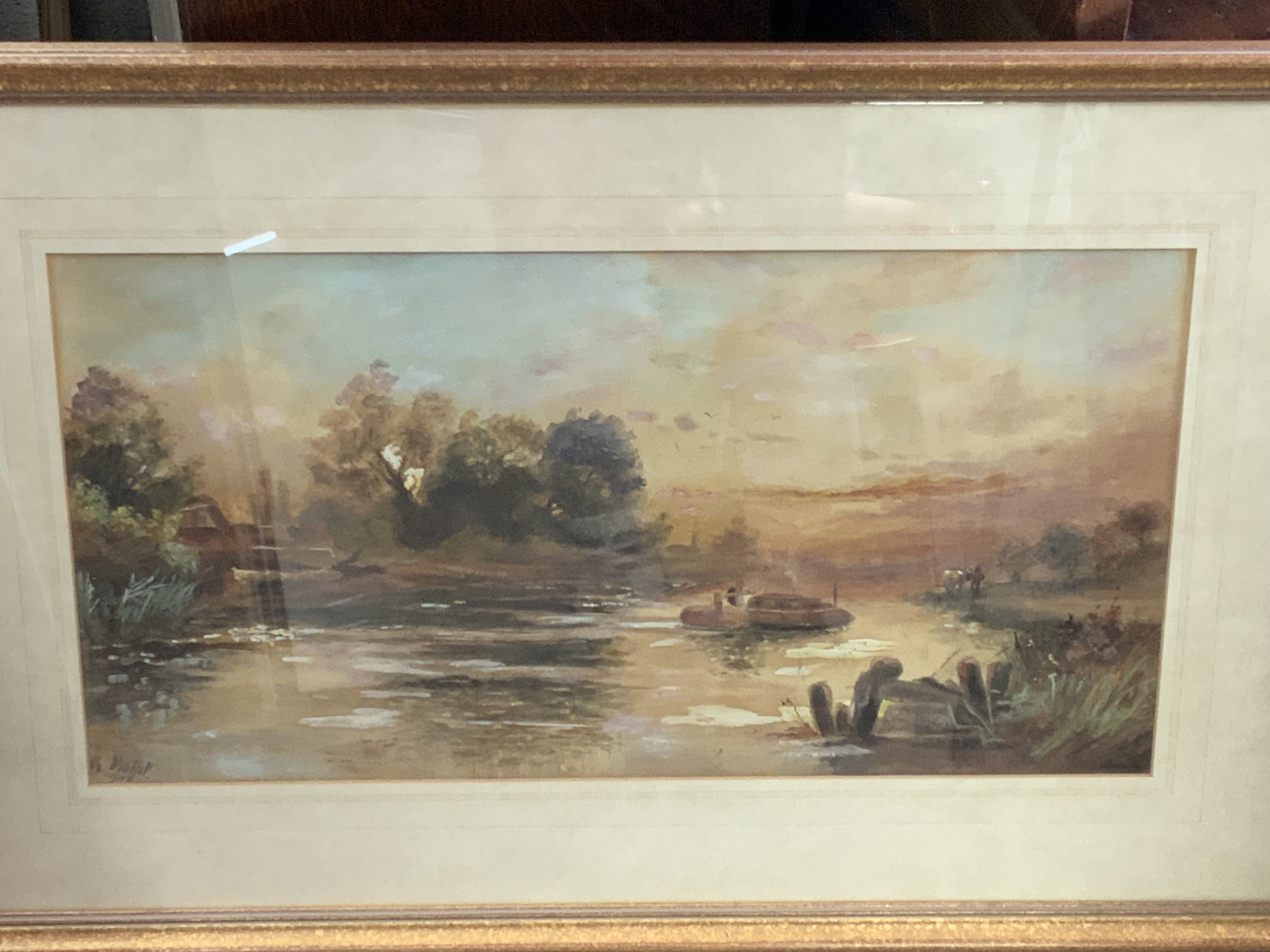 A small groups of good framed watercolours, 1 Lithograph. To include an ink drawing depiction Romeo and Juliet. NO RESERVE