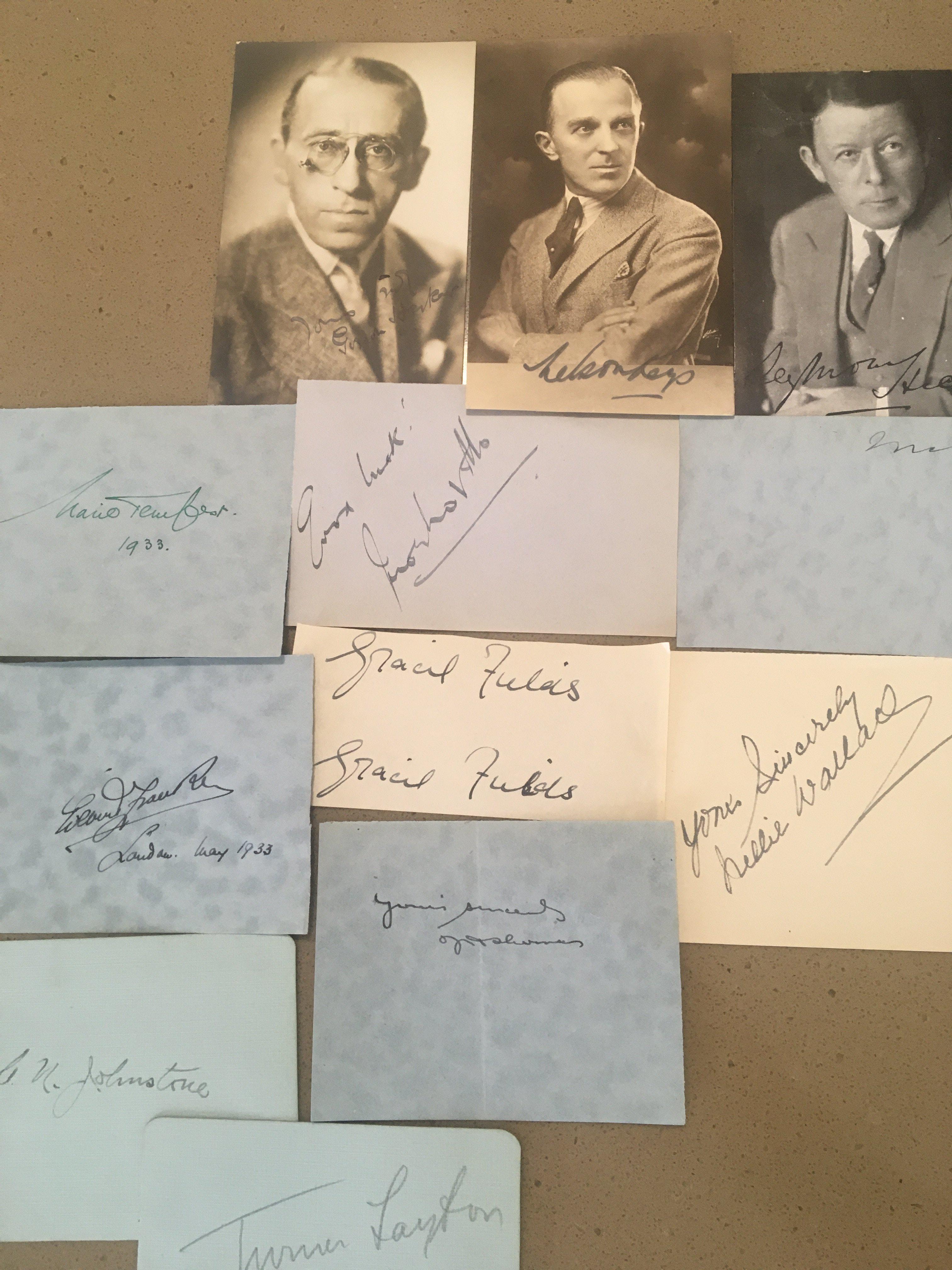 Guaranteed to be authentic signatures autographs famous actresses and actors. Ivor Novello one of the most famous and popular entertainers of the first half of the 20th Century Marie Tempest. JH Thomas Gilbert Frankau Gorden Harker Layton and Johnstone American vocal and piano duo Nellie Wallace. Grace Fields.