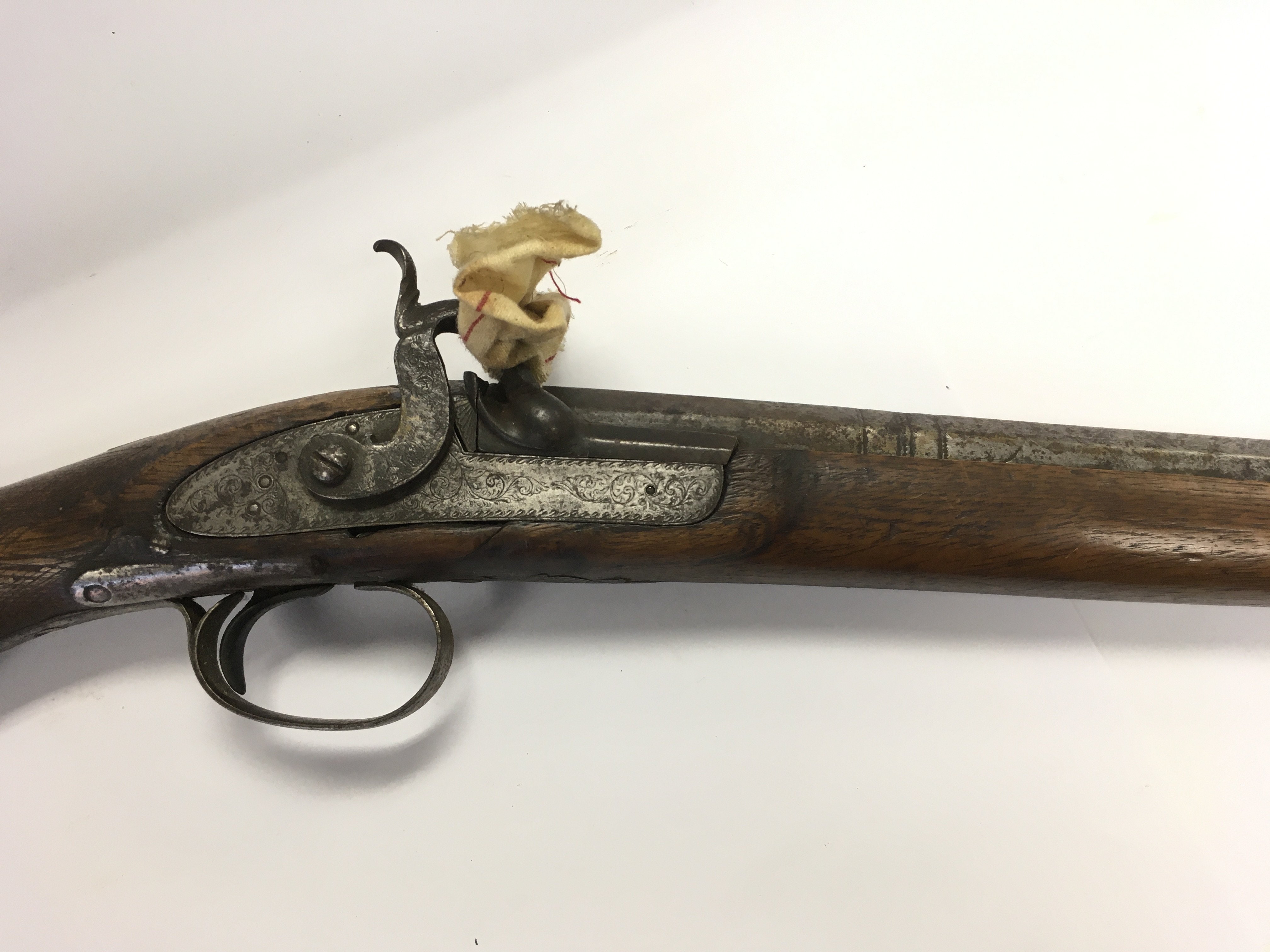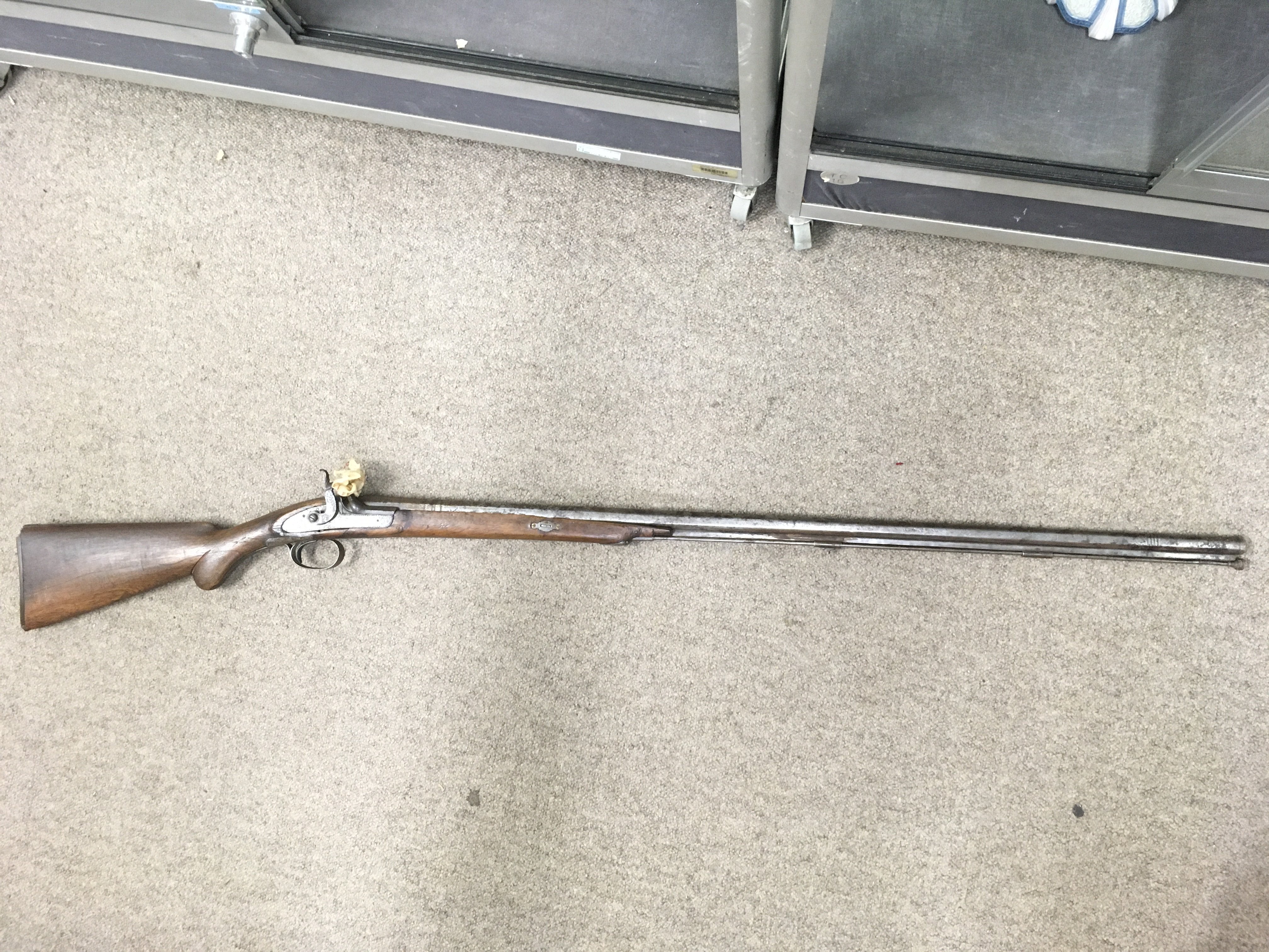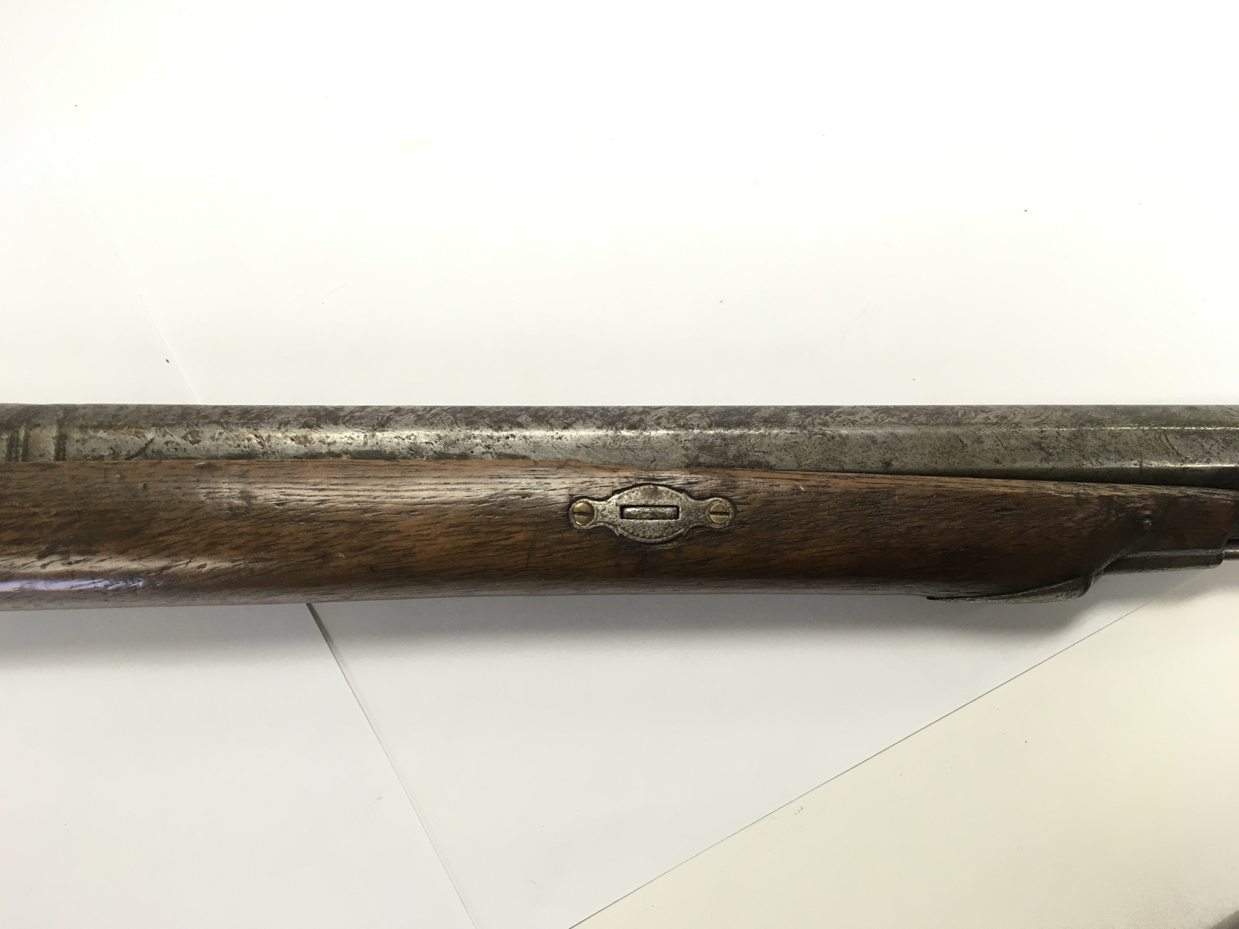 An antique muzzle load single barrel percussion rifle sporting gun with octagonal barrel. Shipping category D.