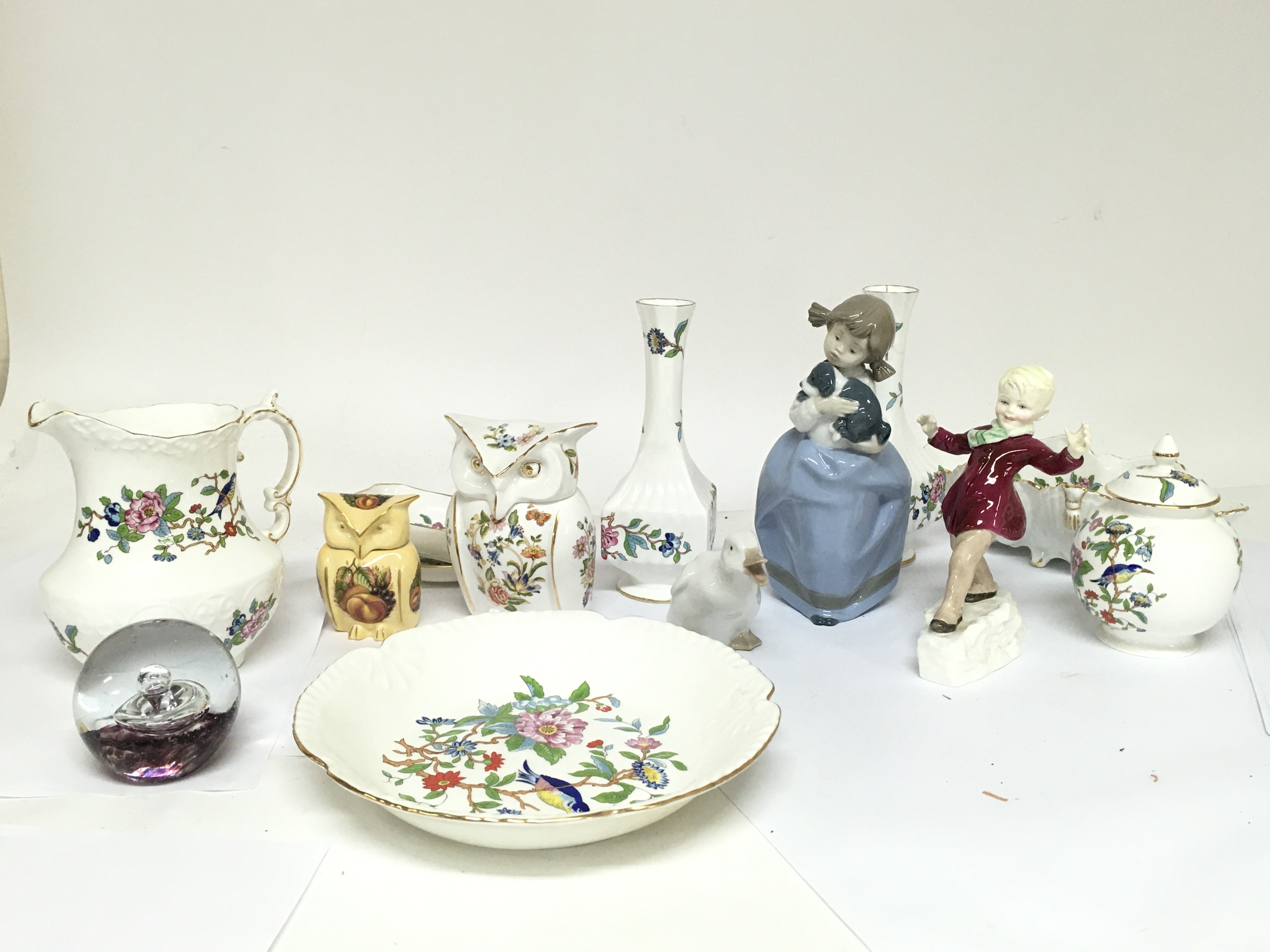 A Collection of ceramics including Ansley Pembroke reproduction ceramics, two Lladro figures, a Royal Worcester figure etc
