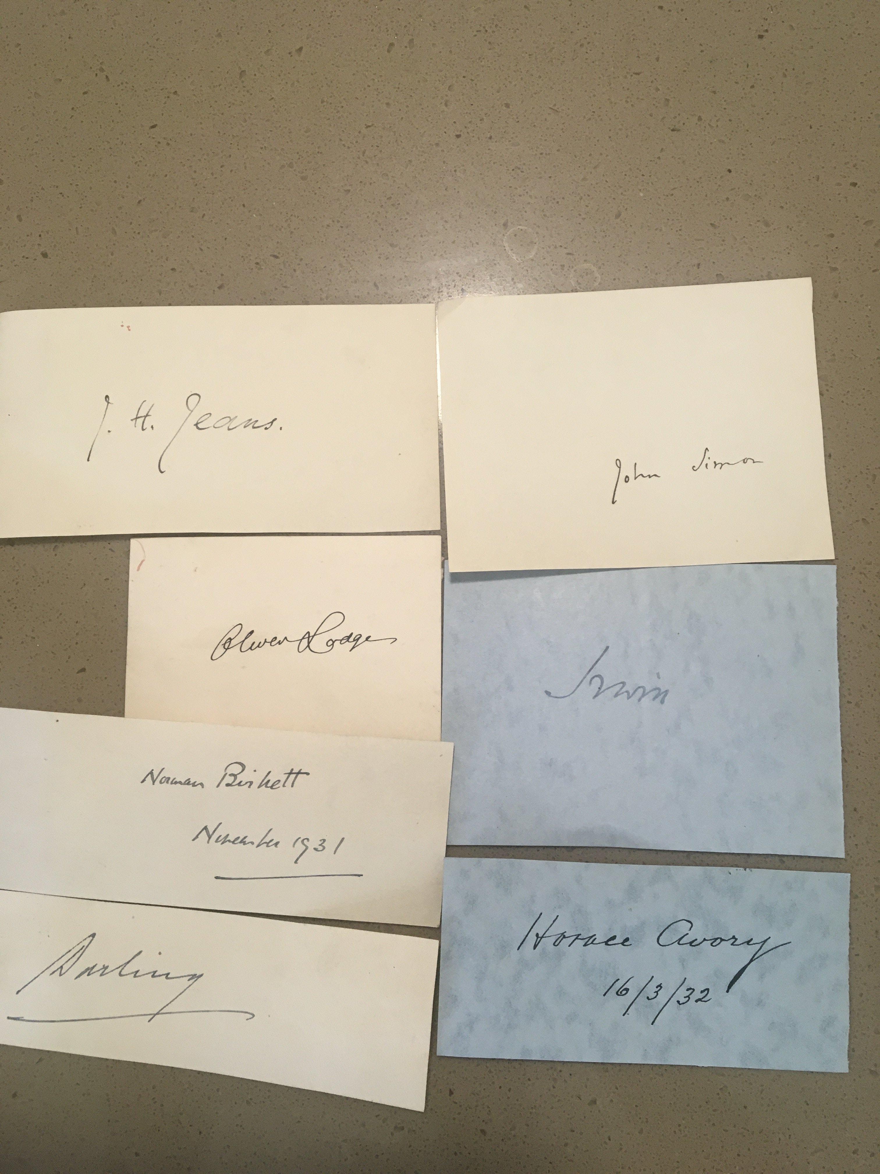 Guaranteed to be authentic signatures autographs Norman Birkett KC British judge during the Nuremberg Trials. Sir Horace Avory (1851-1935) High Court Judge judge at the trial police officers PC Auttridge Sergt Goddard. Lord Darlington Judge of Kings Bench other autographs Sir Oliver Lodge Piorneer of Wireless Telegraph Sir James Jeans famous Mathematician Lord Irwin Sir John Simon.