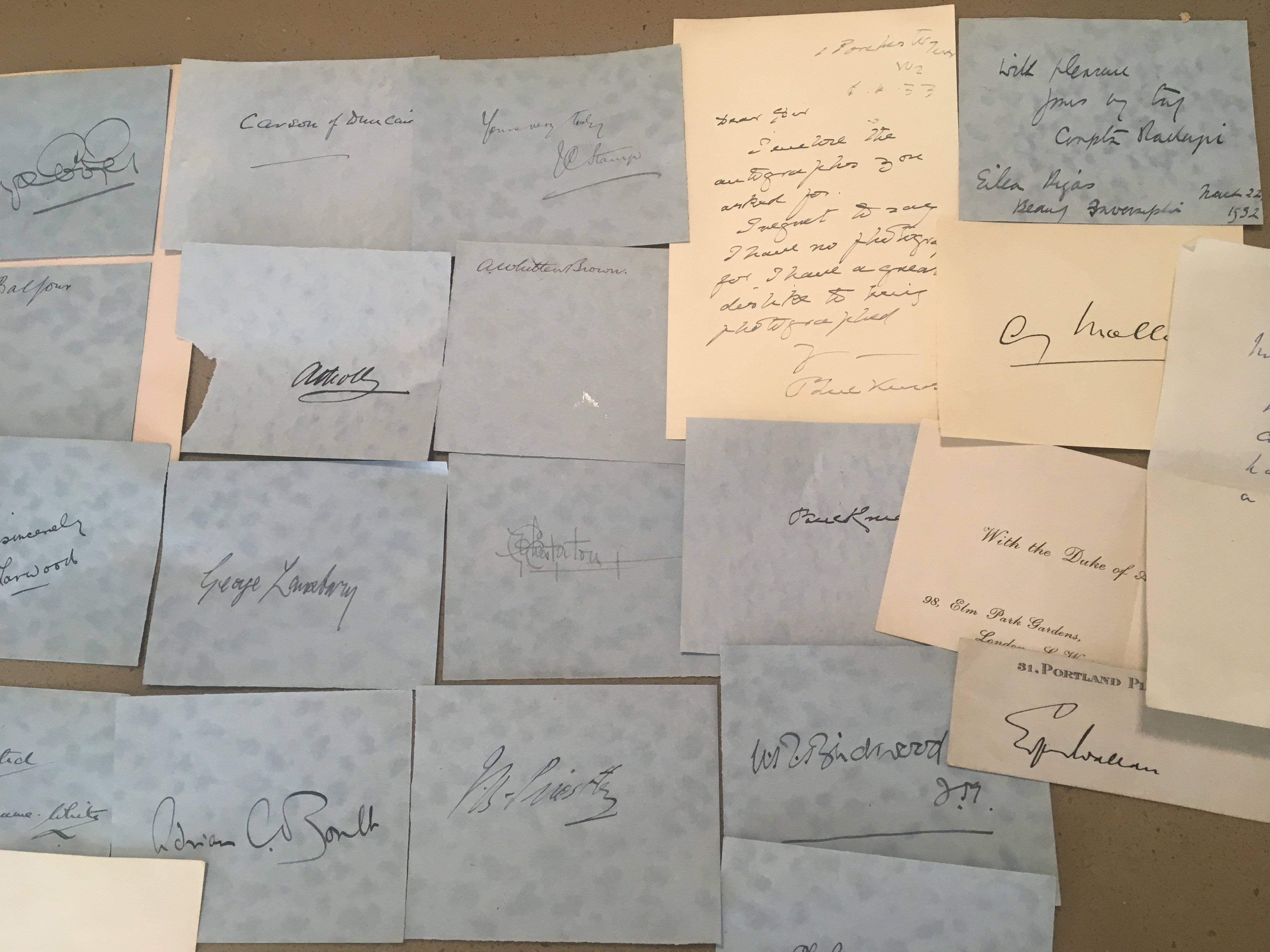 Guaranteed to be authentic signatures autographs. Compton Mackenzie (1883-1972) Scottish writer Sir Joshiah Stamp (1880-1941) Director of the Bank of England GK Chesterman George Lansbury 1859-1940 Dr Adrian Boult Field Marshal Sir William Birdwood commander of the Australian and New Zealand Army during the Gallipoli Campaign 1915. Sir A Whitten Brown and other autographs and signatures of the first half of the 20th Century.