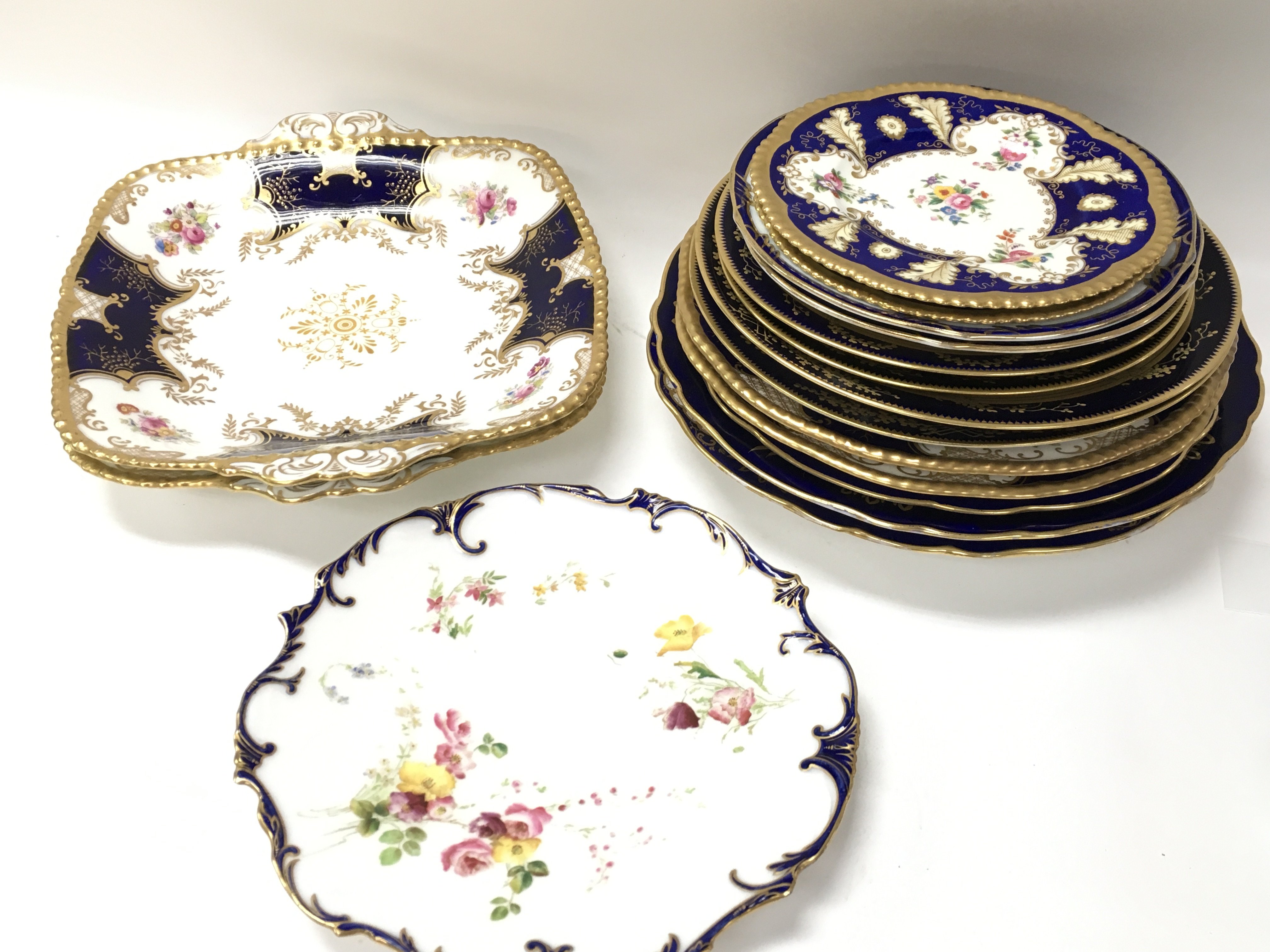 A collection of Coalport porcelain floral plates, Worcester and other unmarked plates. This lot cannot be posted