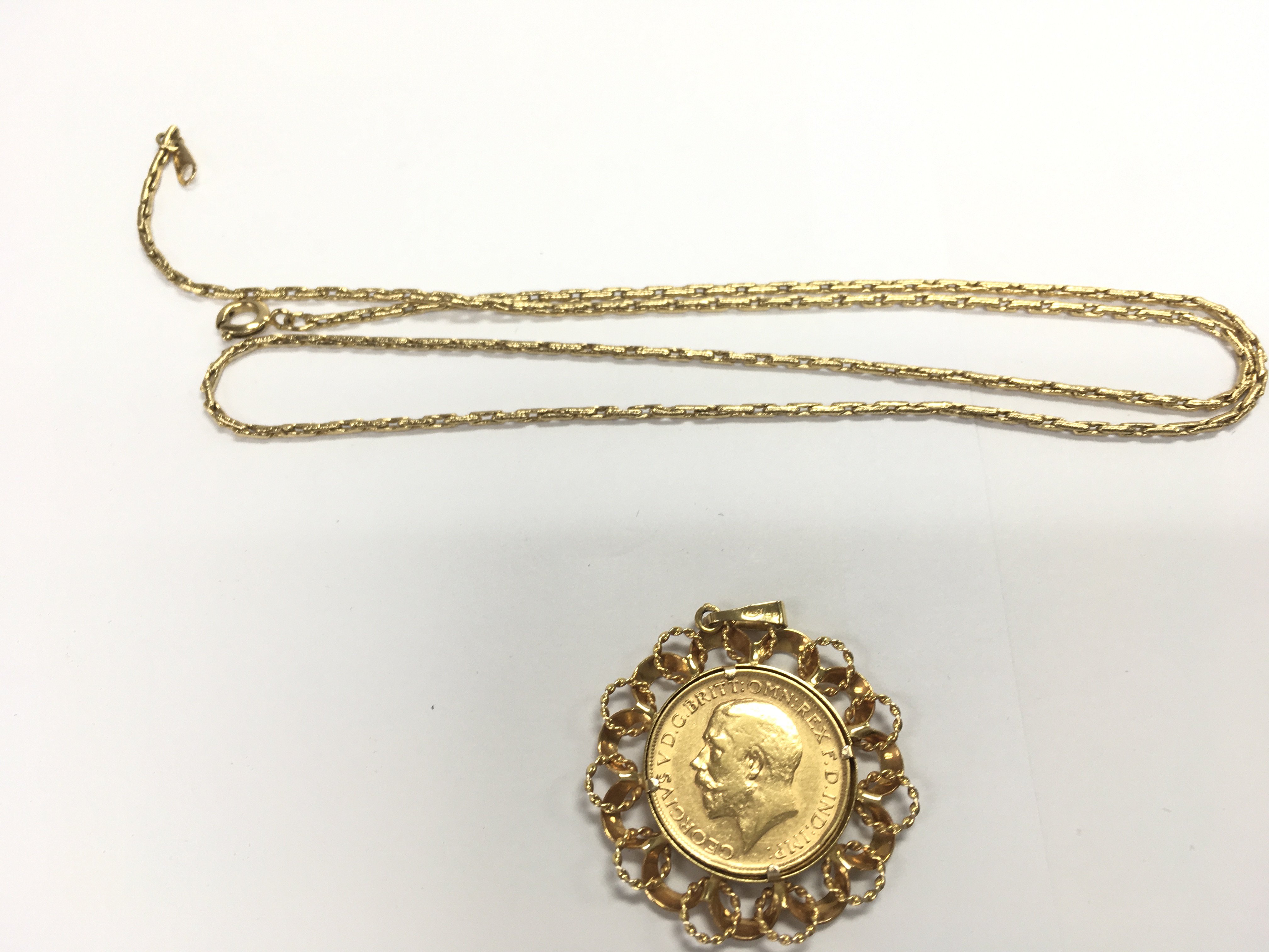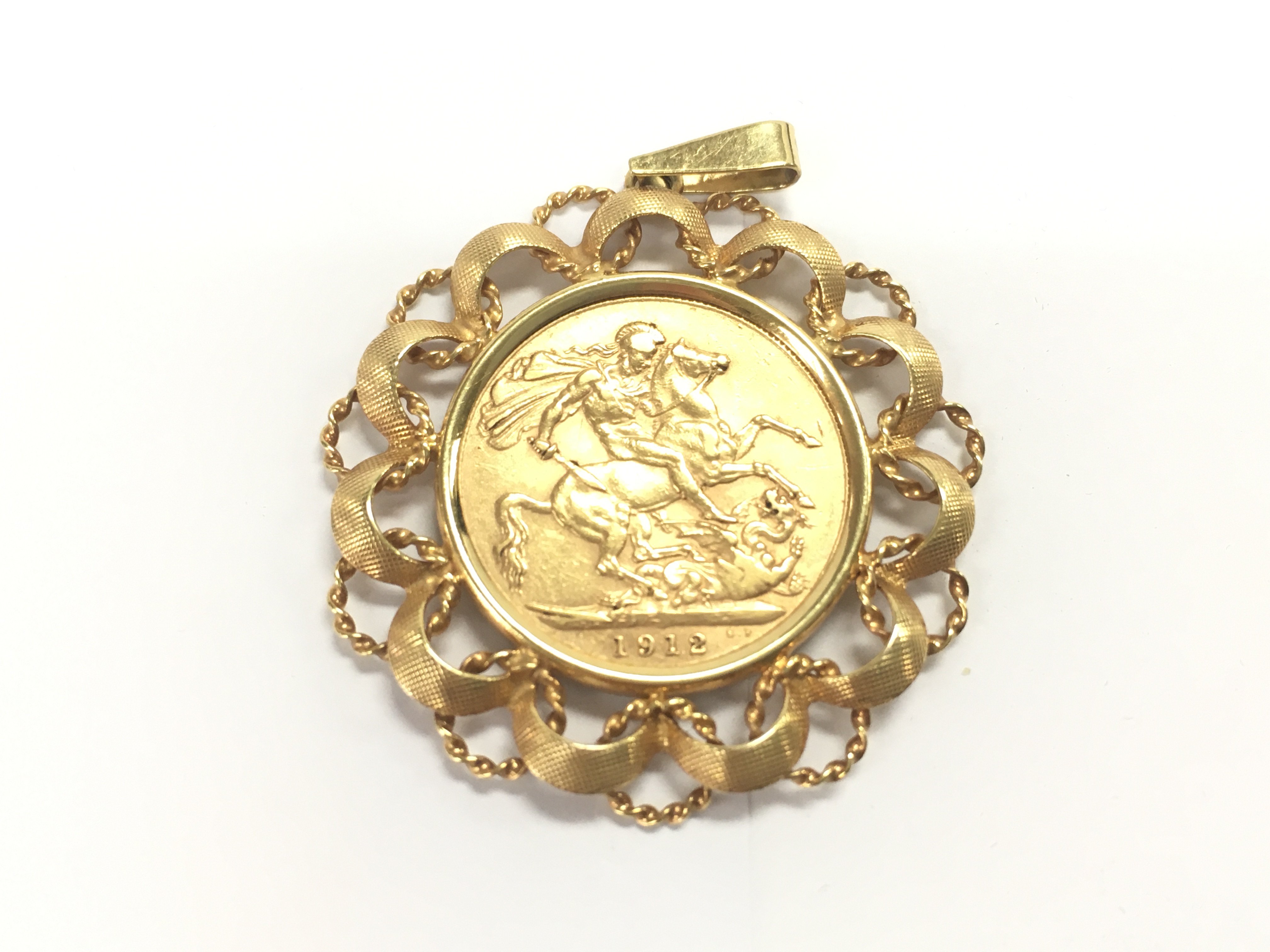1912 full sovereign in gold mount total weight 10.70g.Postage A