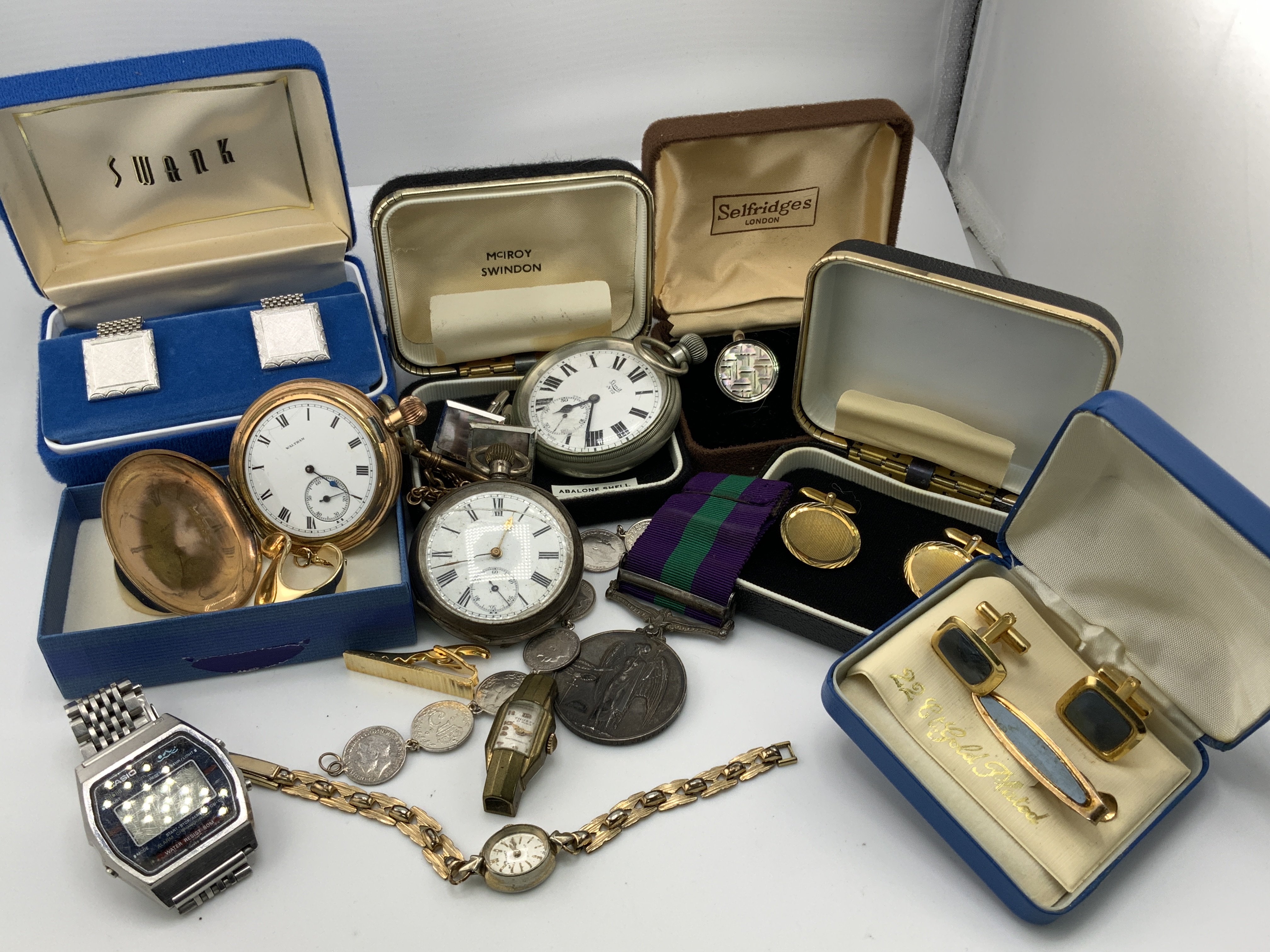 A mixed lot of vintage watches, cuff links and additional jewellery items.