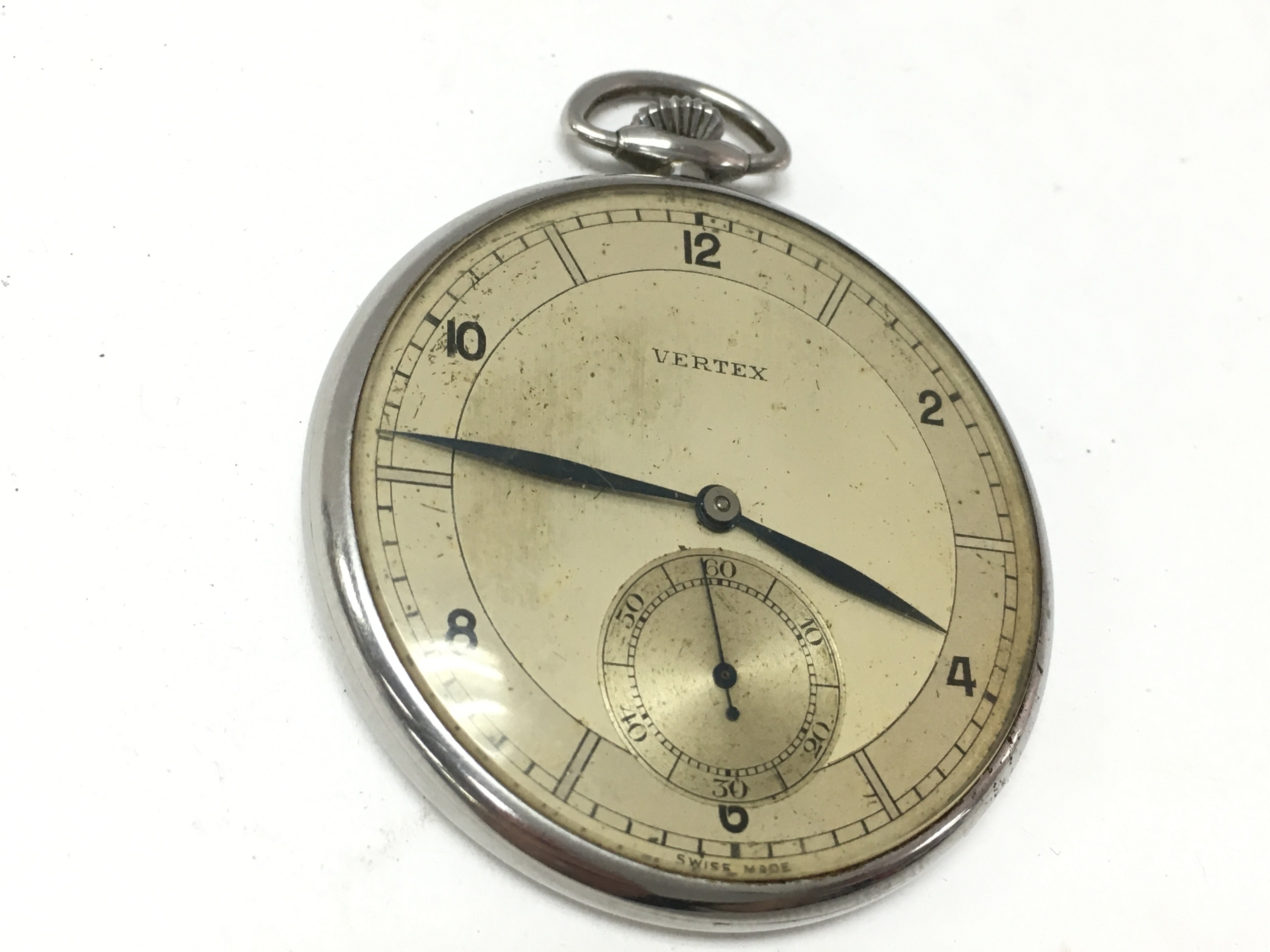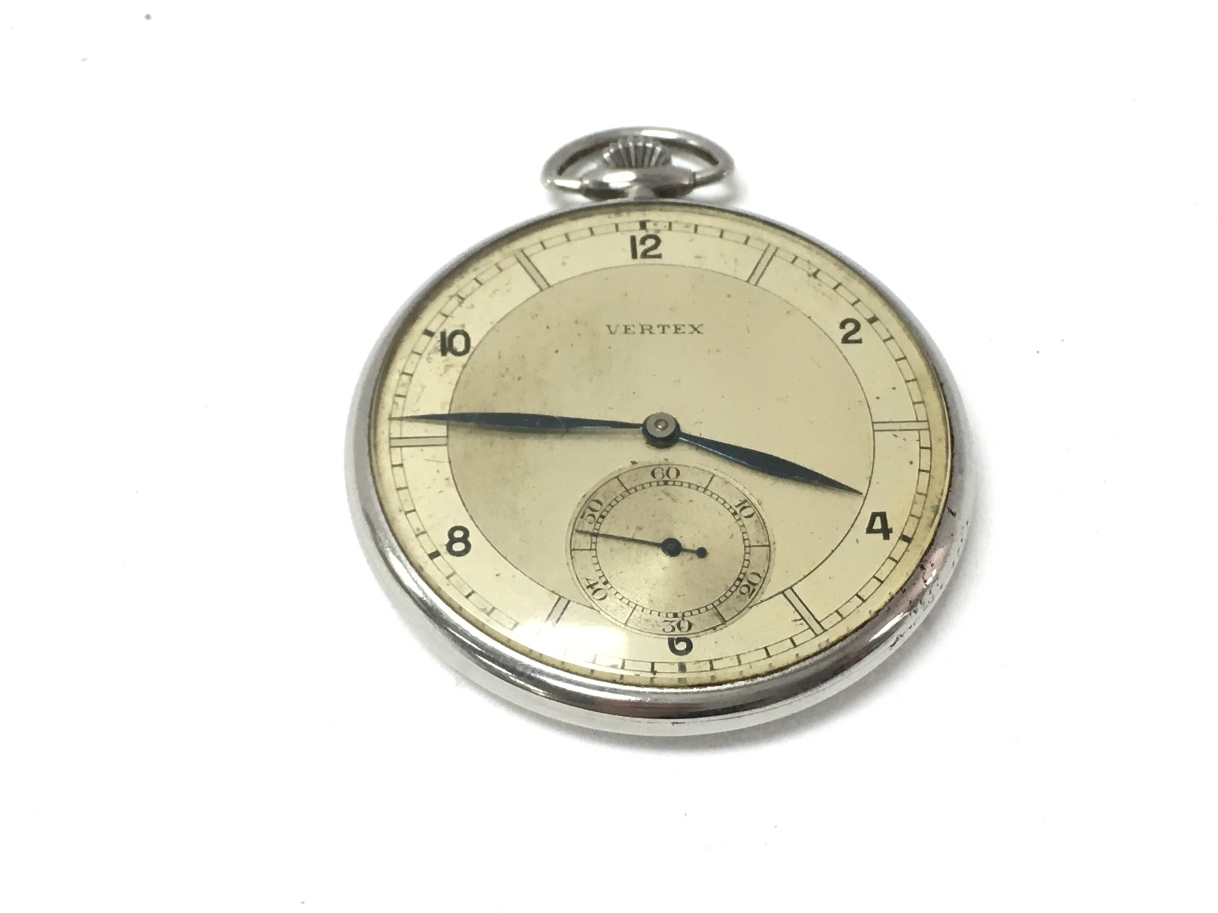 A vintage Vertex button wind pocket watch. Winds and runs. 45mm case. NO RESERVE