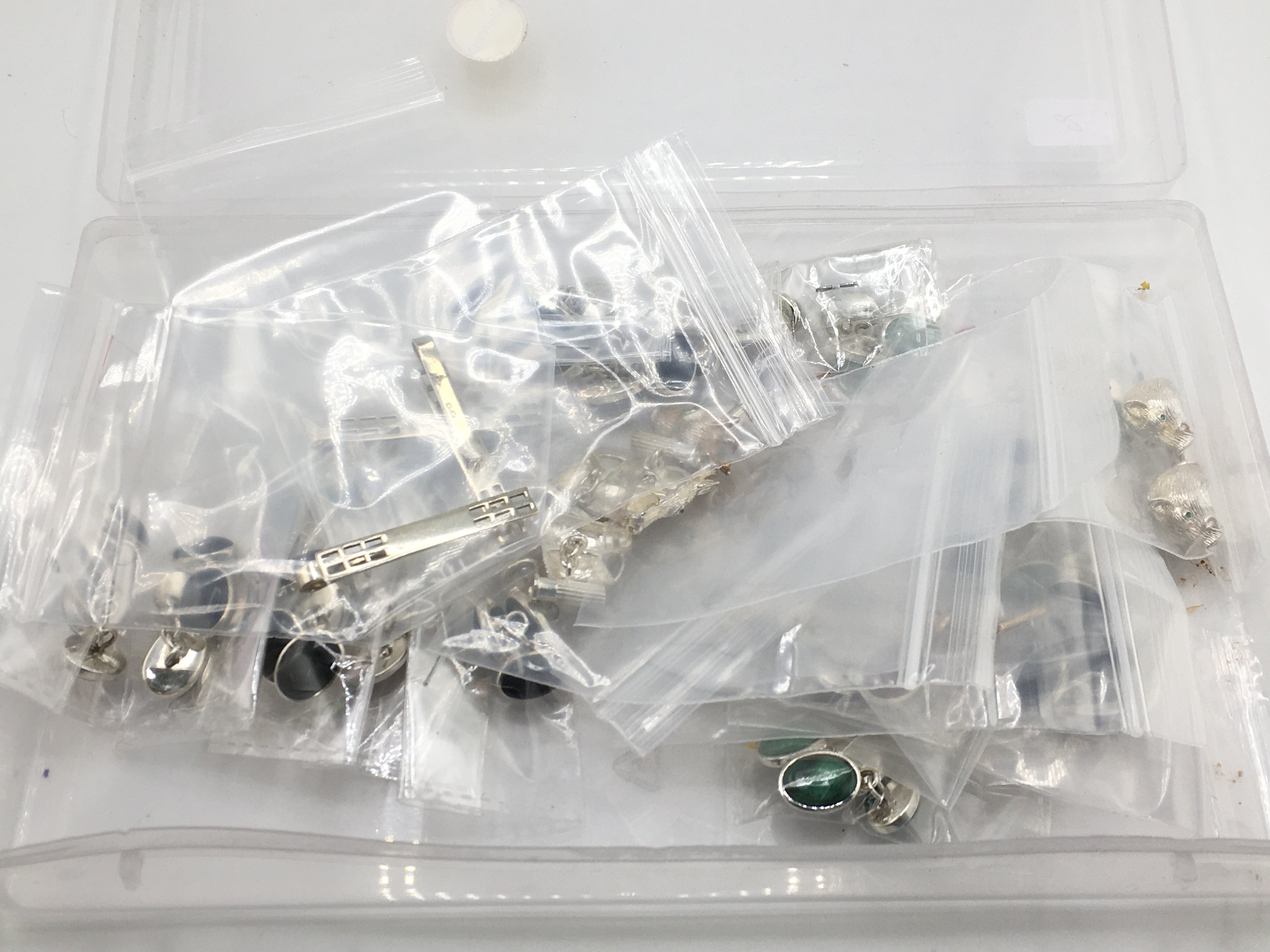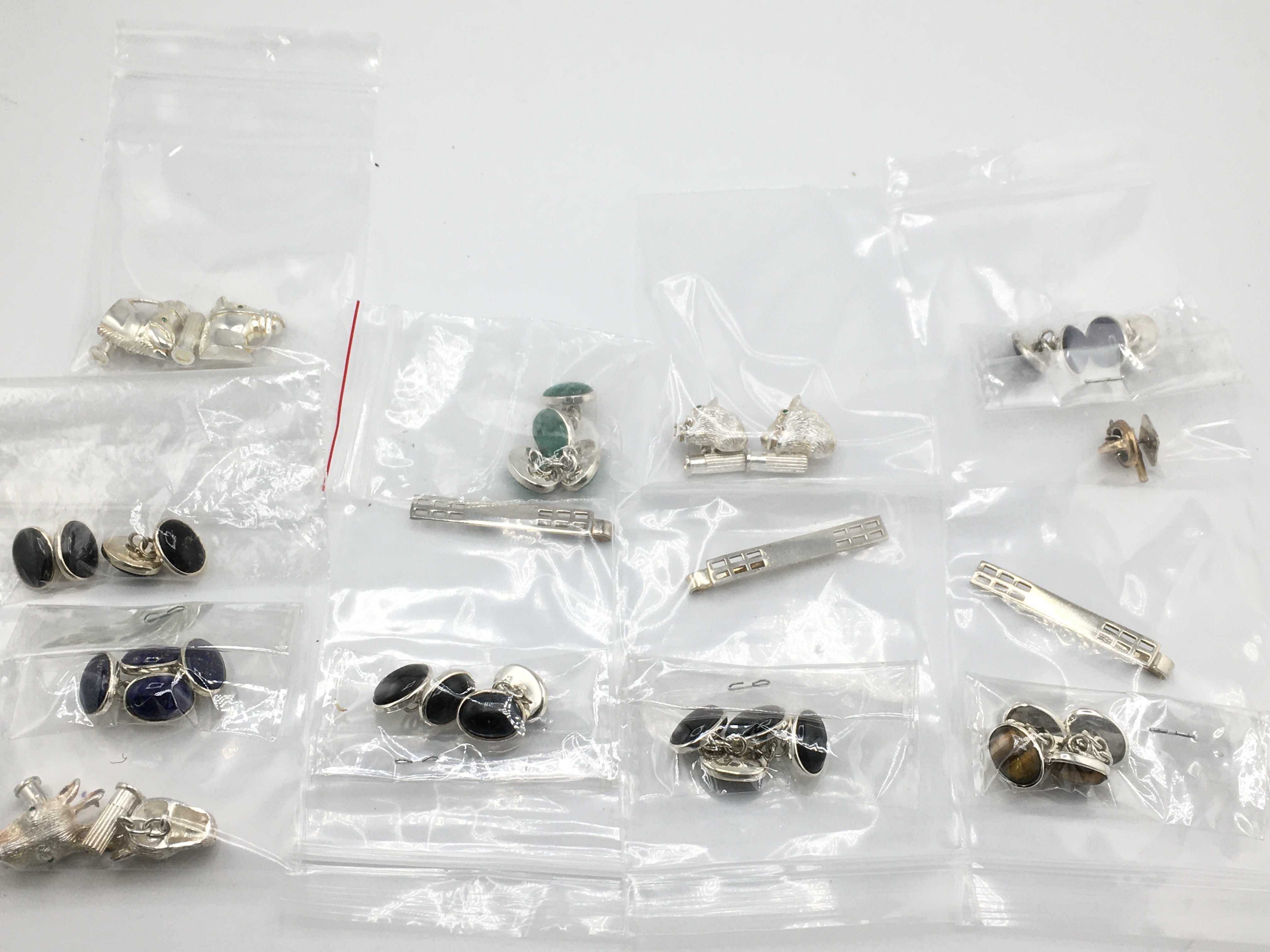 A collection of new silver and stone set cufflinks and tie pins. Postage category A. NO RESERVE