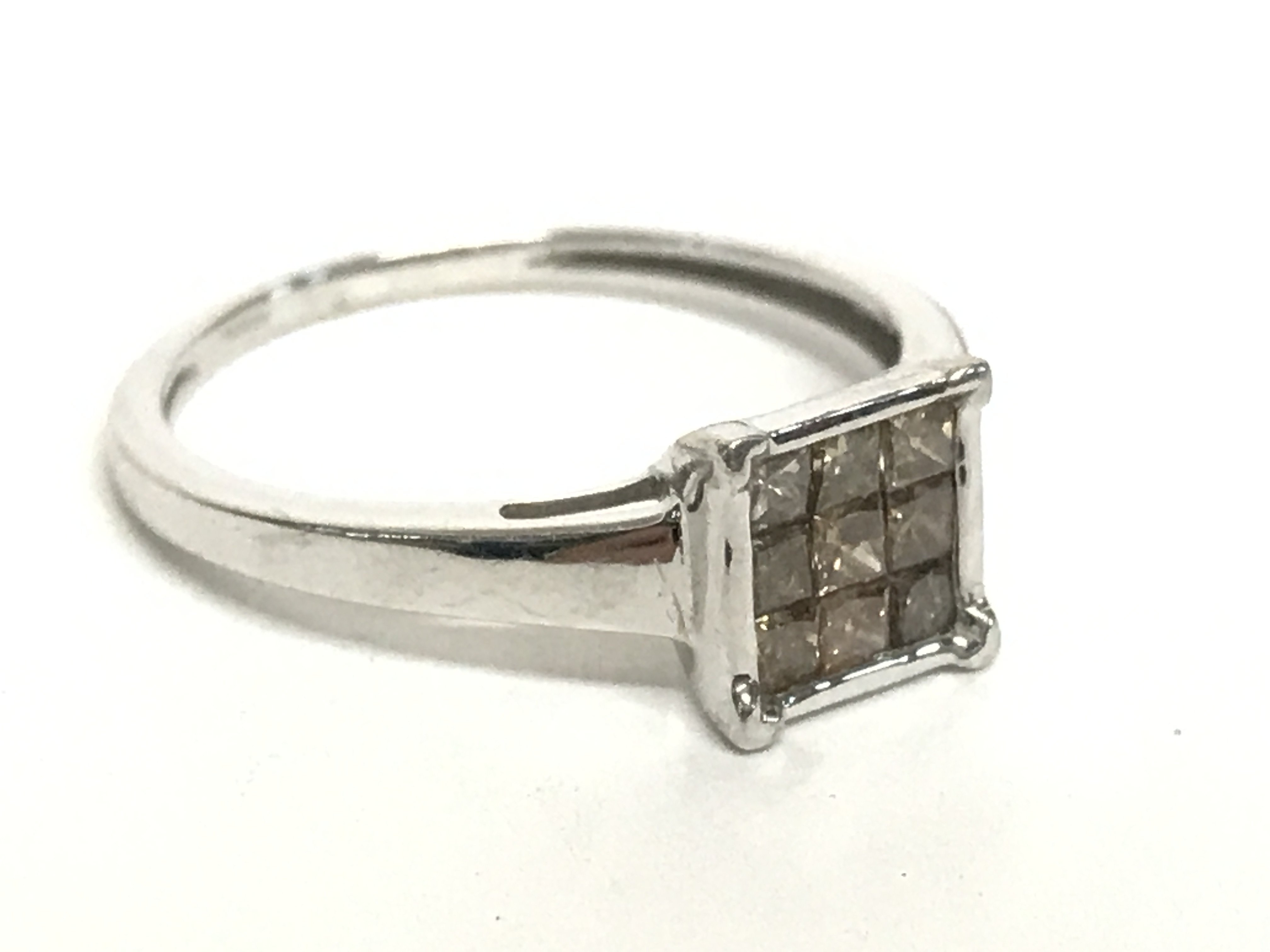 A 9 carat white gold Ice Zircon ring, size Q. Total weight 2.1g, postage category A. NO RESERVE