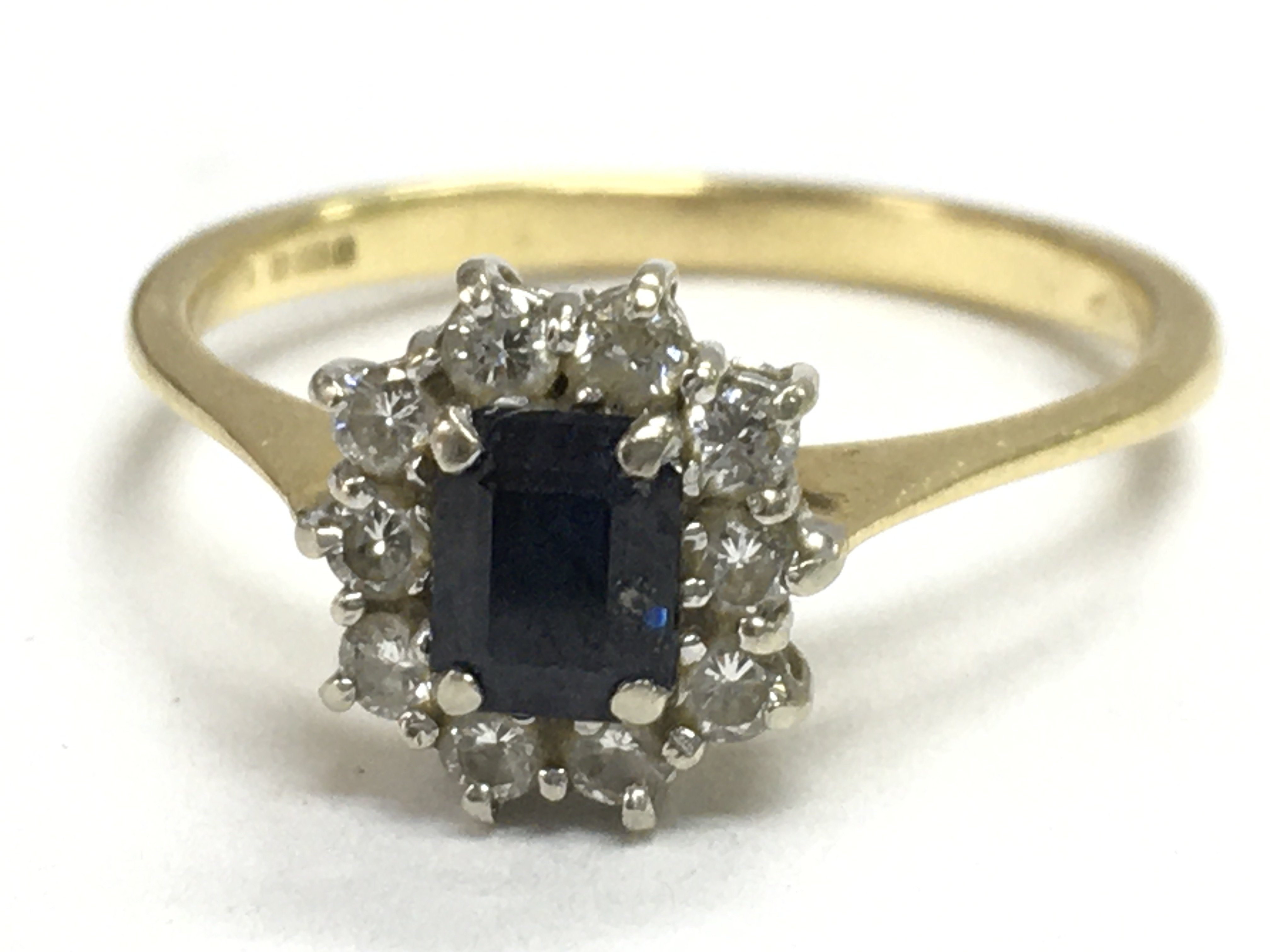 An 18 carat gold diamond and black sapphire ring, 3.3g size Q, postage category A
