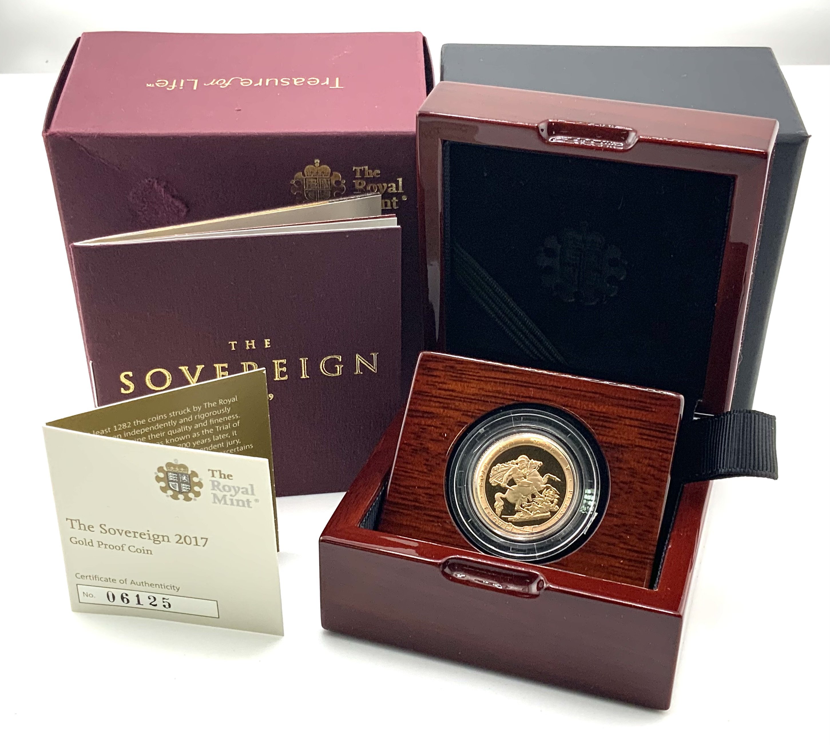 2017 UK Full Sovereign Proof Gold Coin features Benedetto Pistrucci's famous St George and the Dragon design, as featured on the first sovereign struck in 1817. (A) cert no.6125