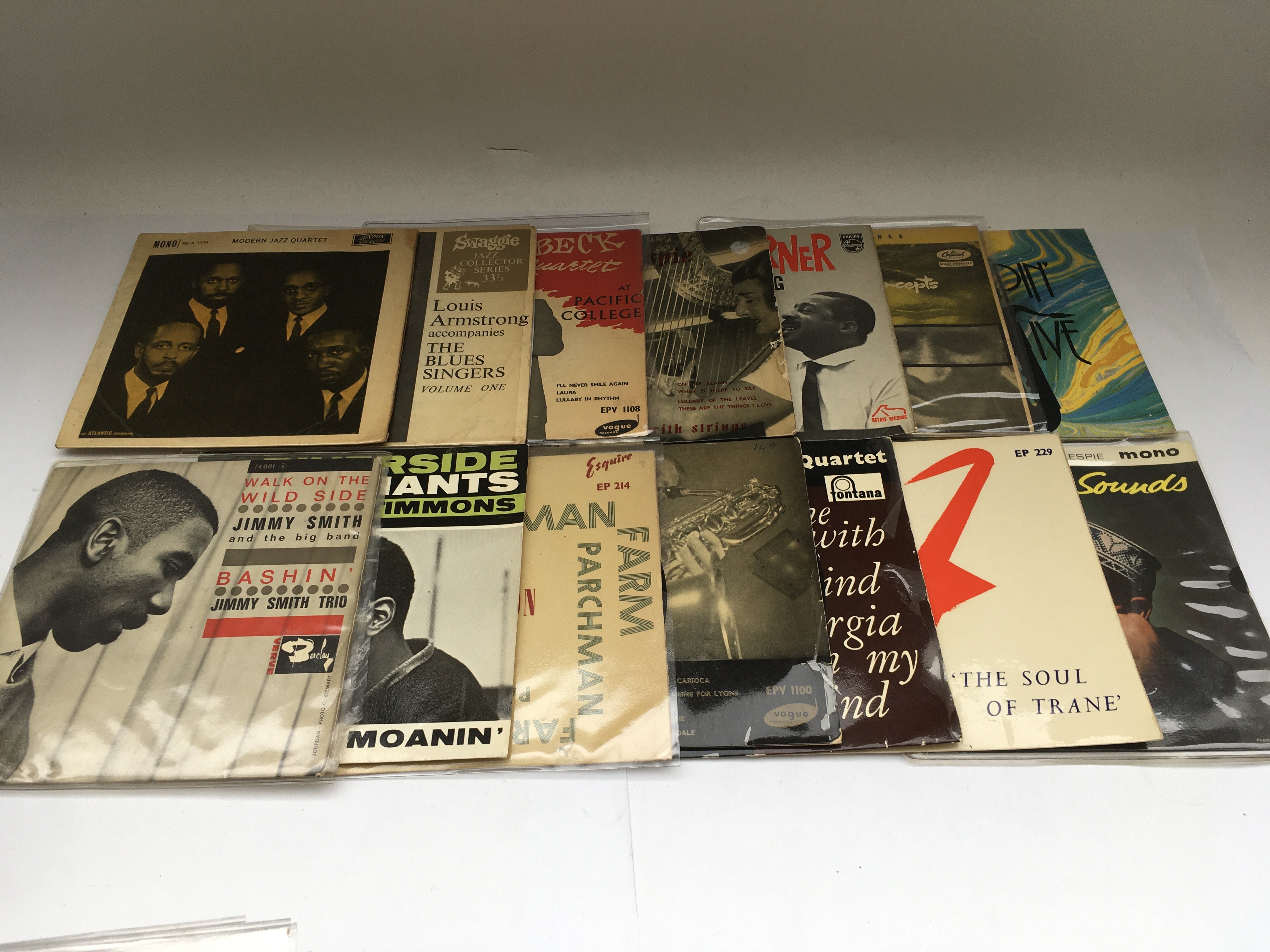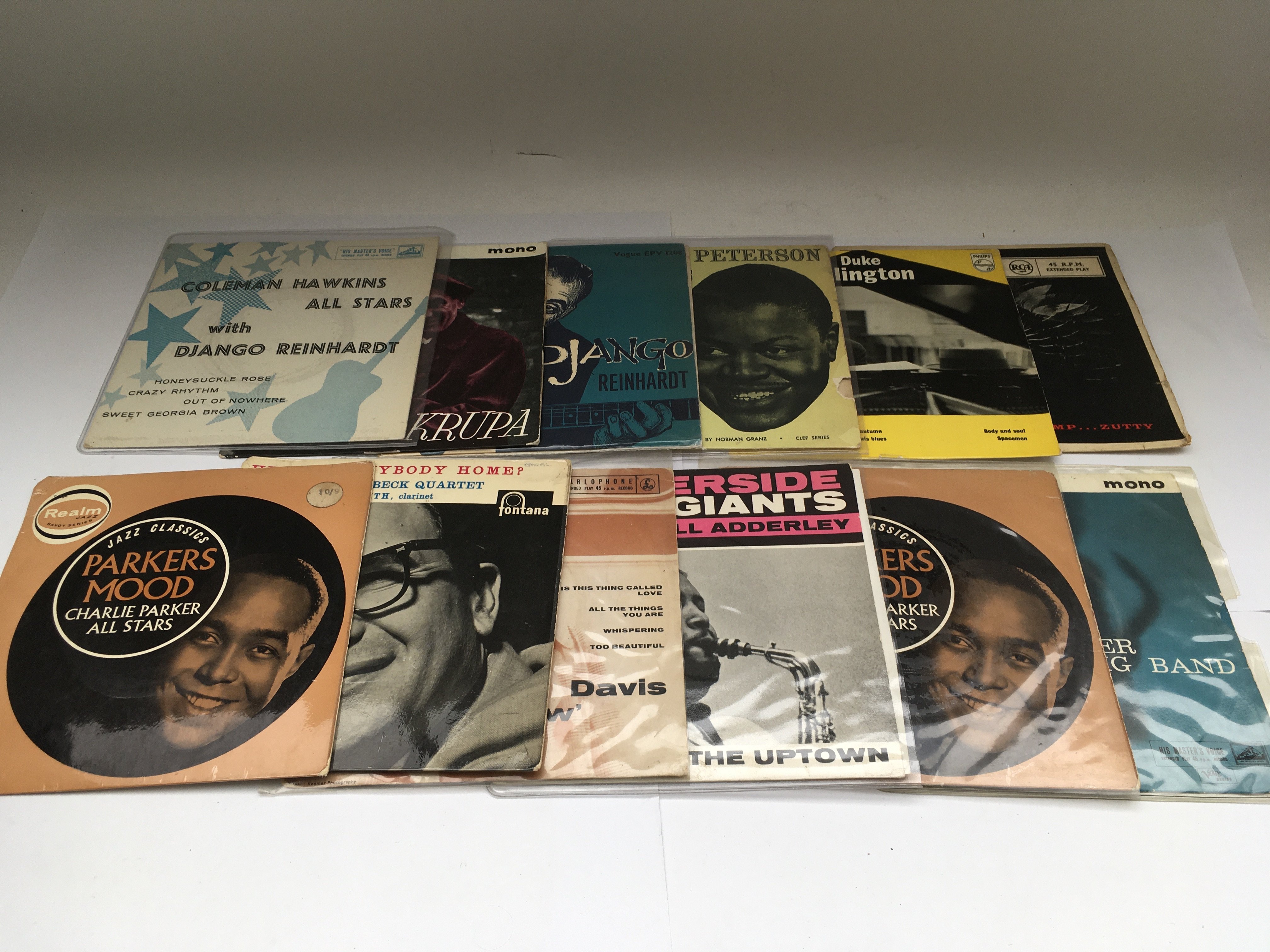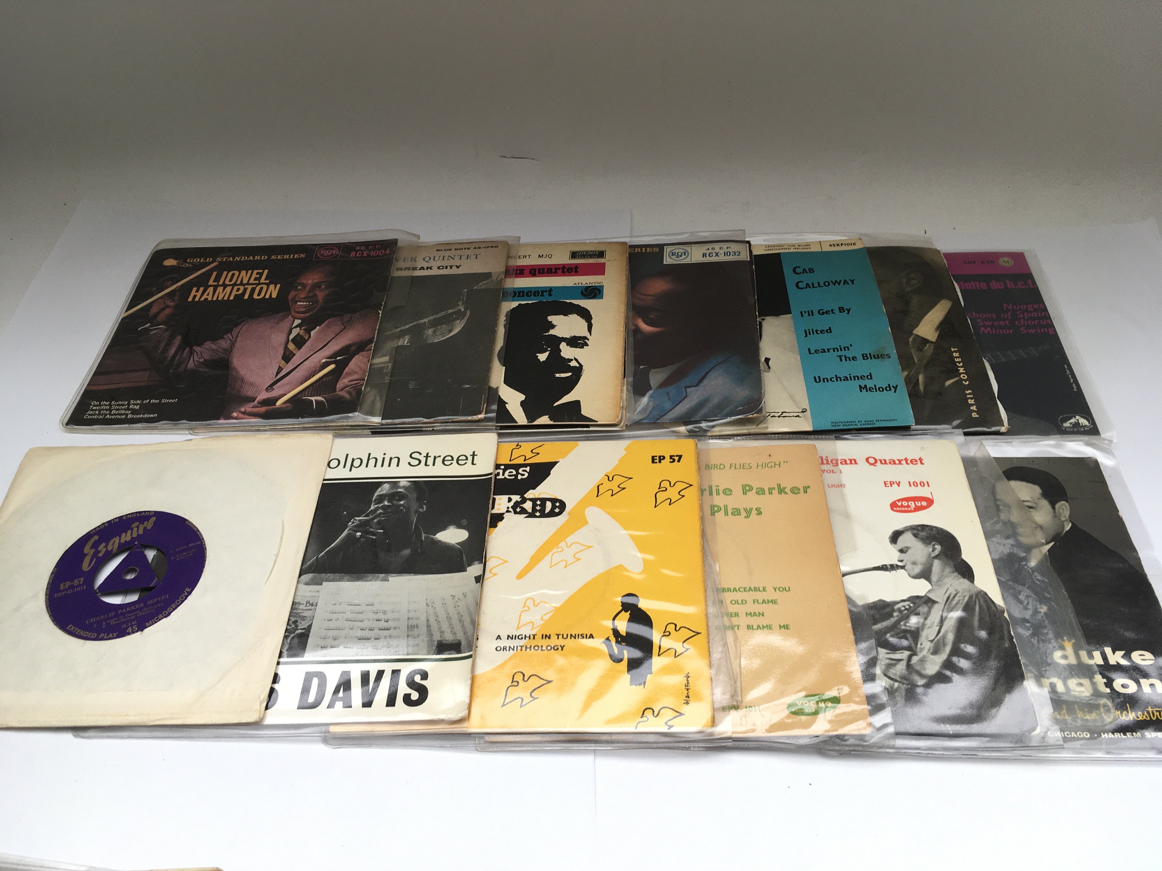 A collection of jazz EPs by various artists including Dizzy Gillespie, John Coltrane, Miles Davis and others.