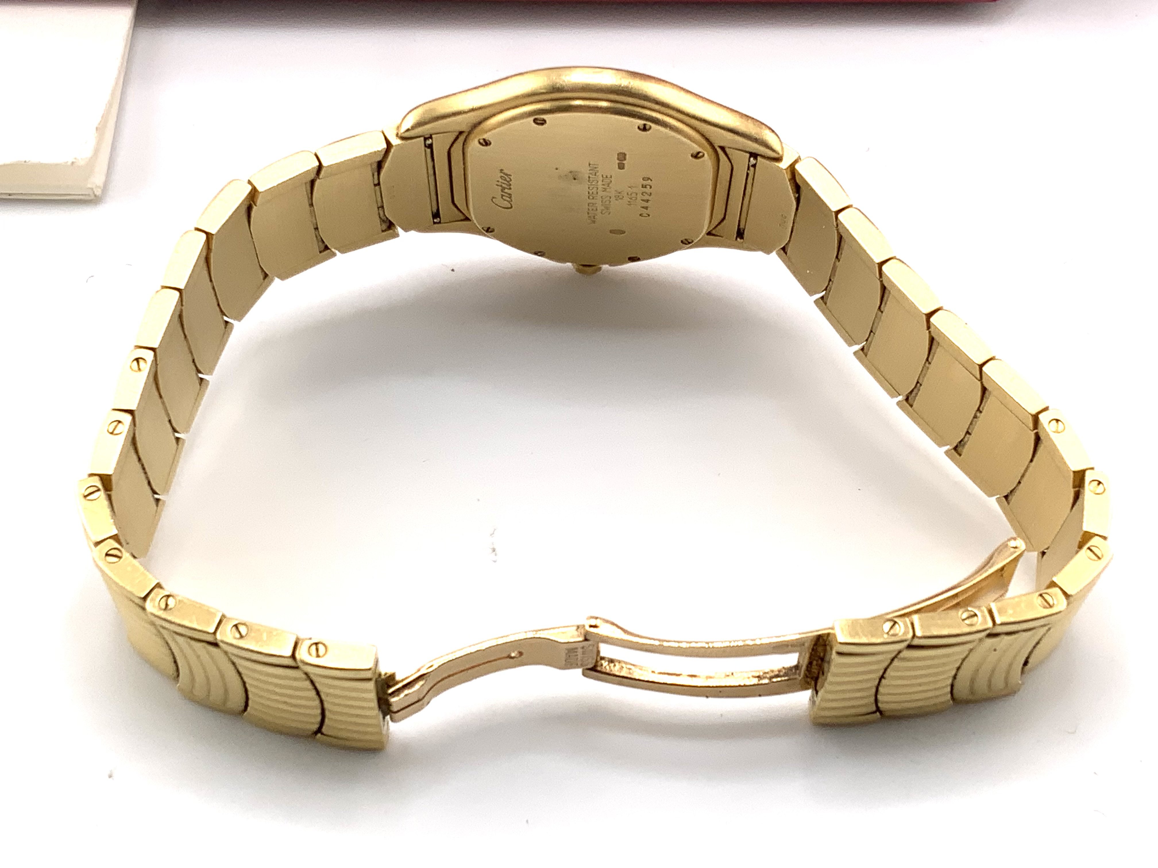 A gents 18ct gold Cartier Cougar LM yellow gold quartz wrist watch, Ltd run of 500 pieces, serial number 11651C44259. Complete with additional links, box and papers, Seen working. Total weight including links 138.81g.