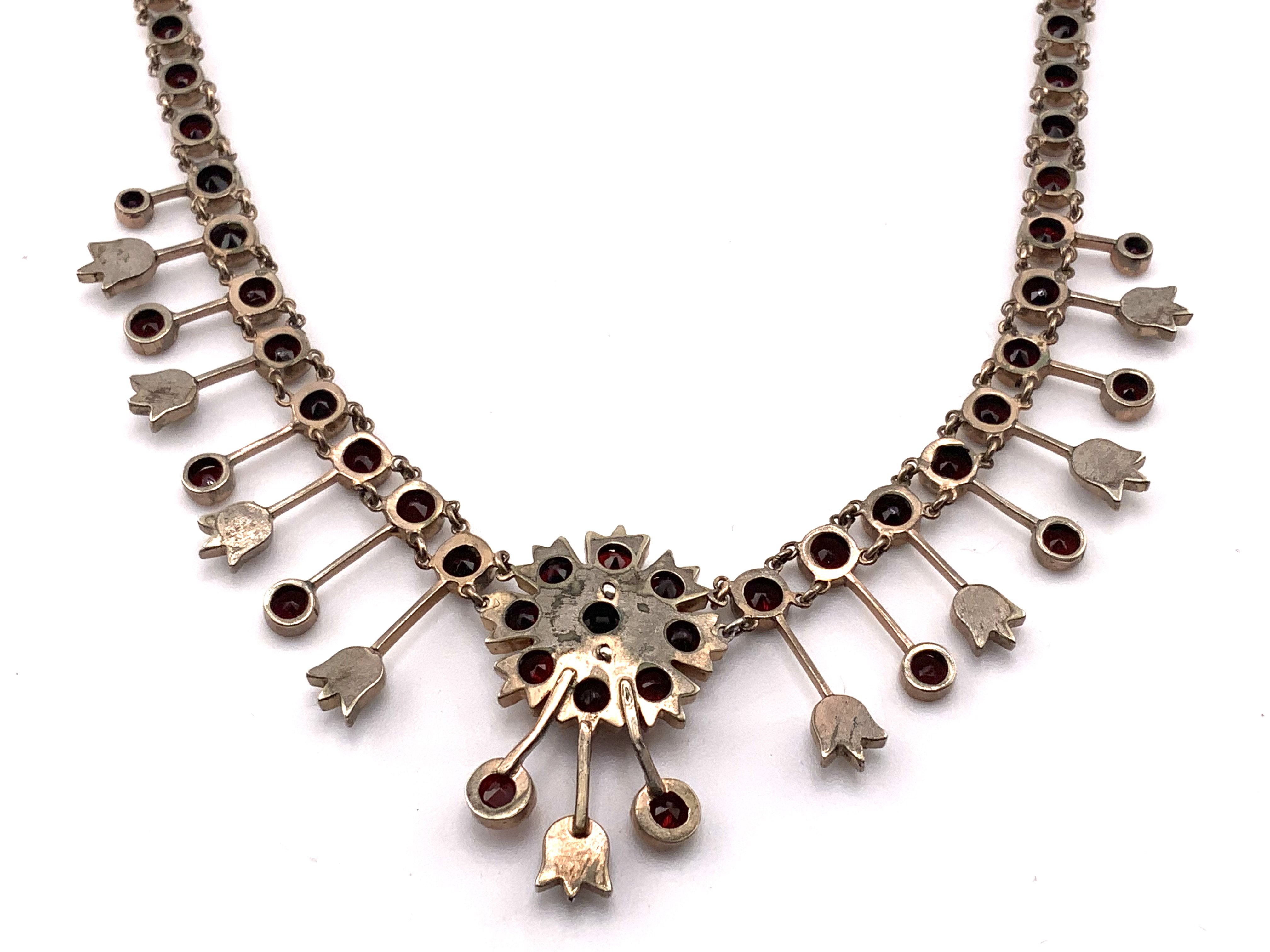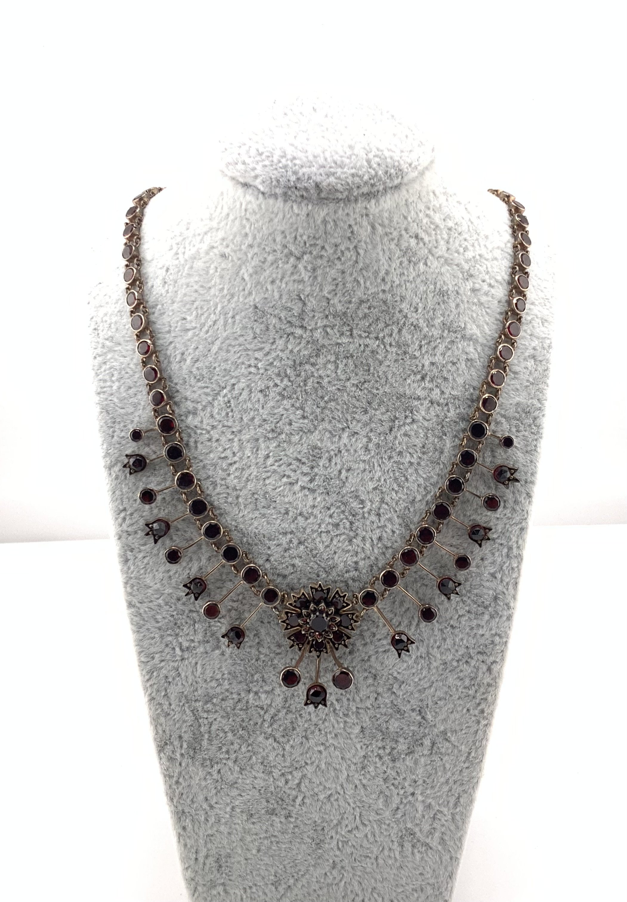 An Edwardian garnet necklace with gold coloured backing, (A)