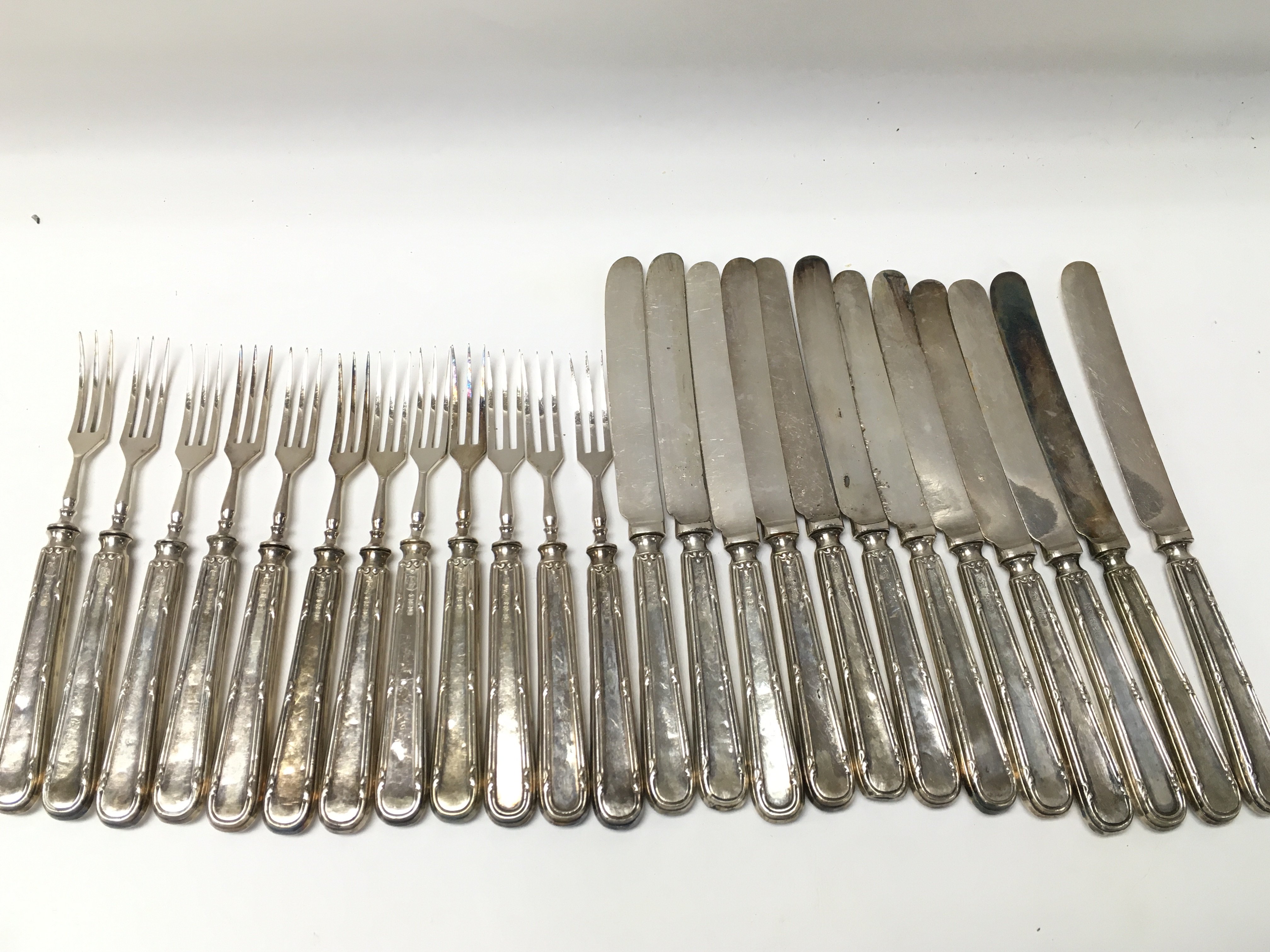 A collection of silver hallmarked cutlery including knives and forks. Postage category B