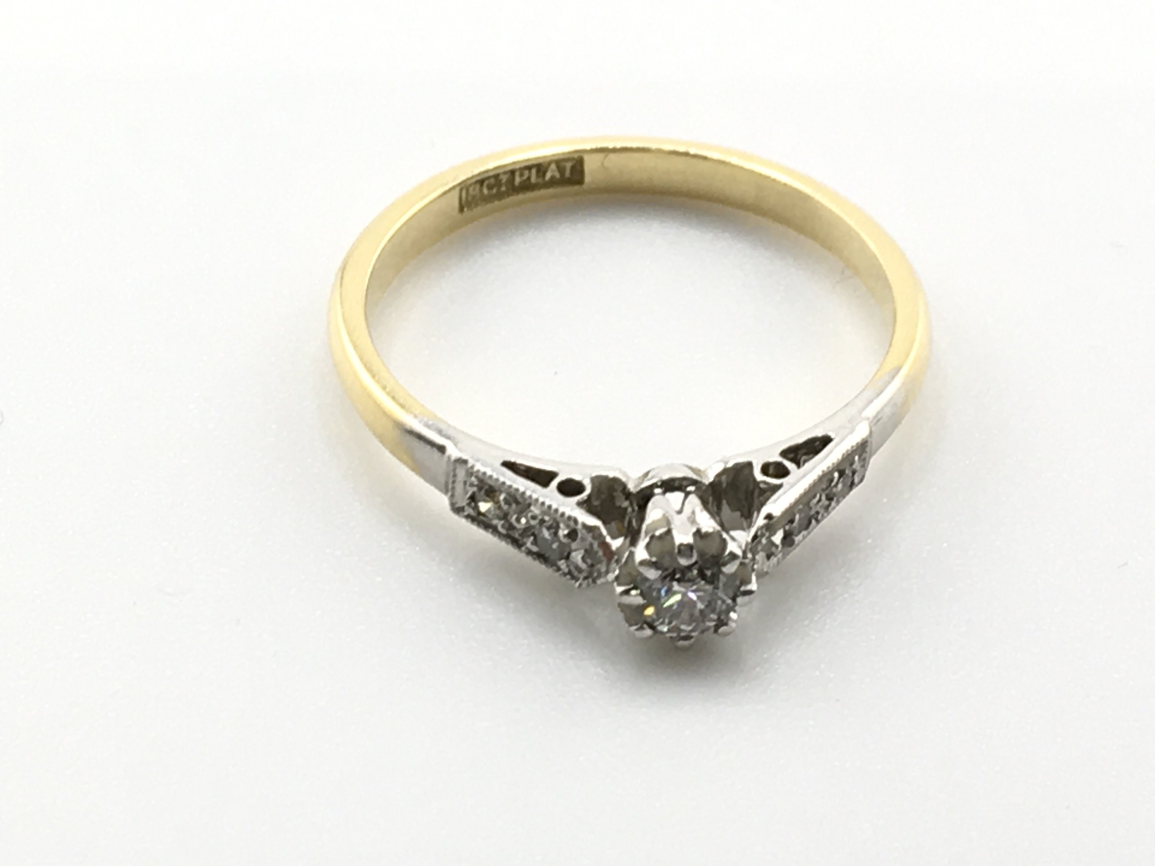 An 18ct gold and platinum ring set with a small diamond. Size L 1/2 and 2.10g