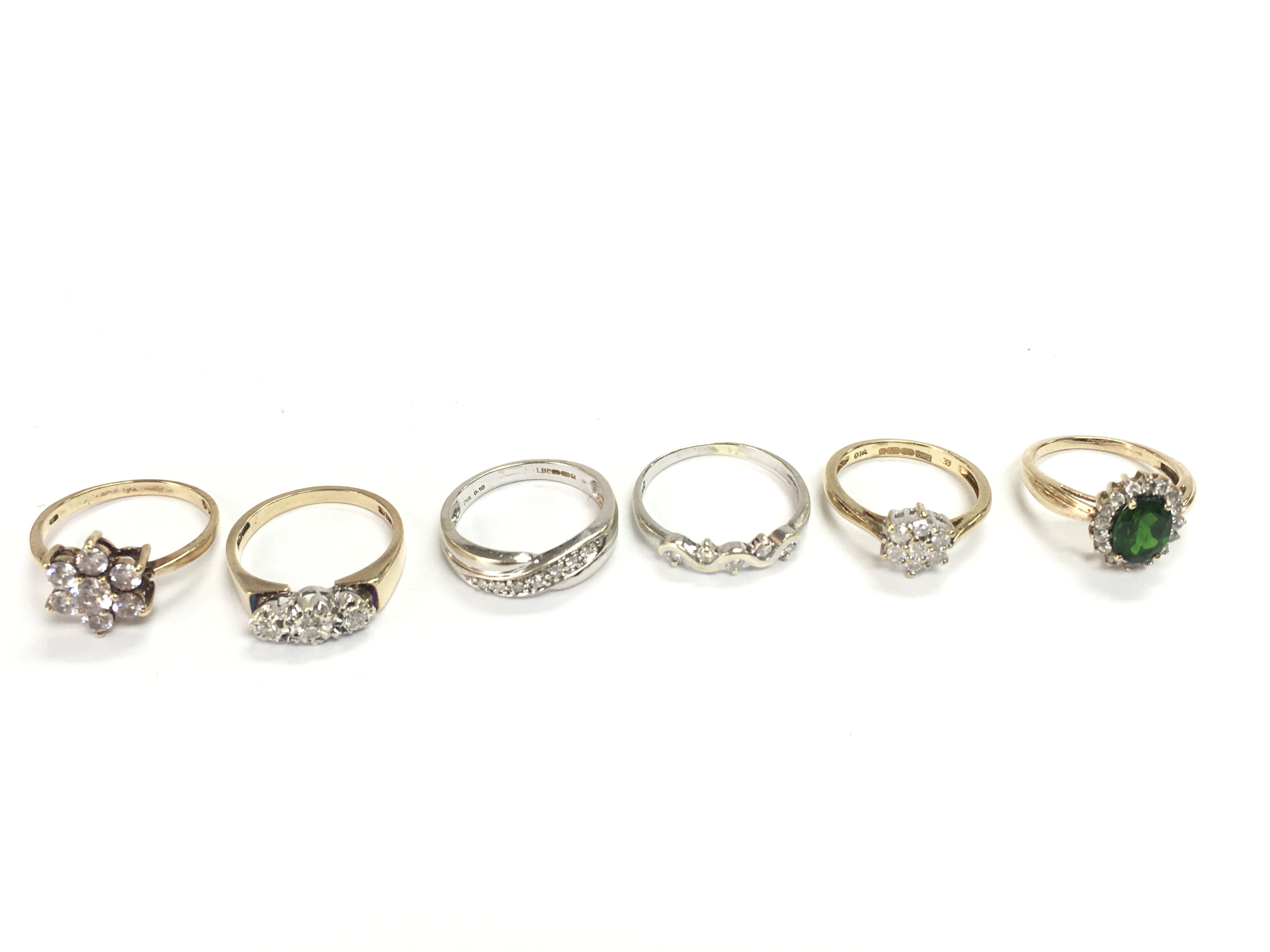 A collection of 6 9ct gold rings set with assorted stones. 14.56g Postage A