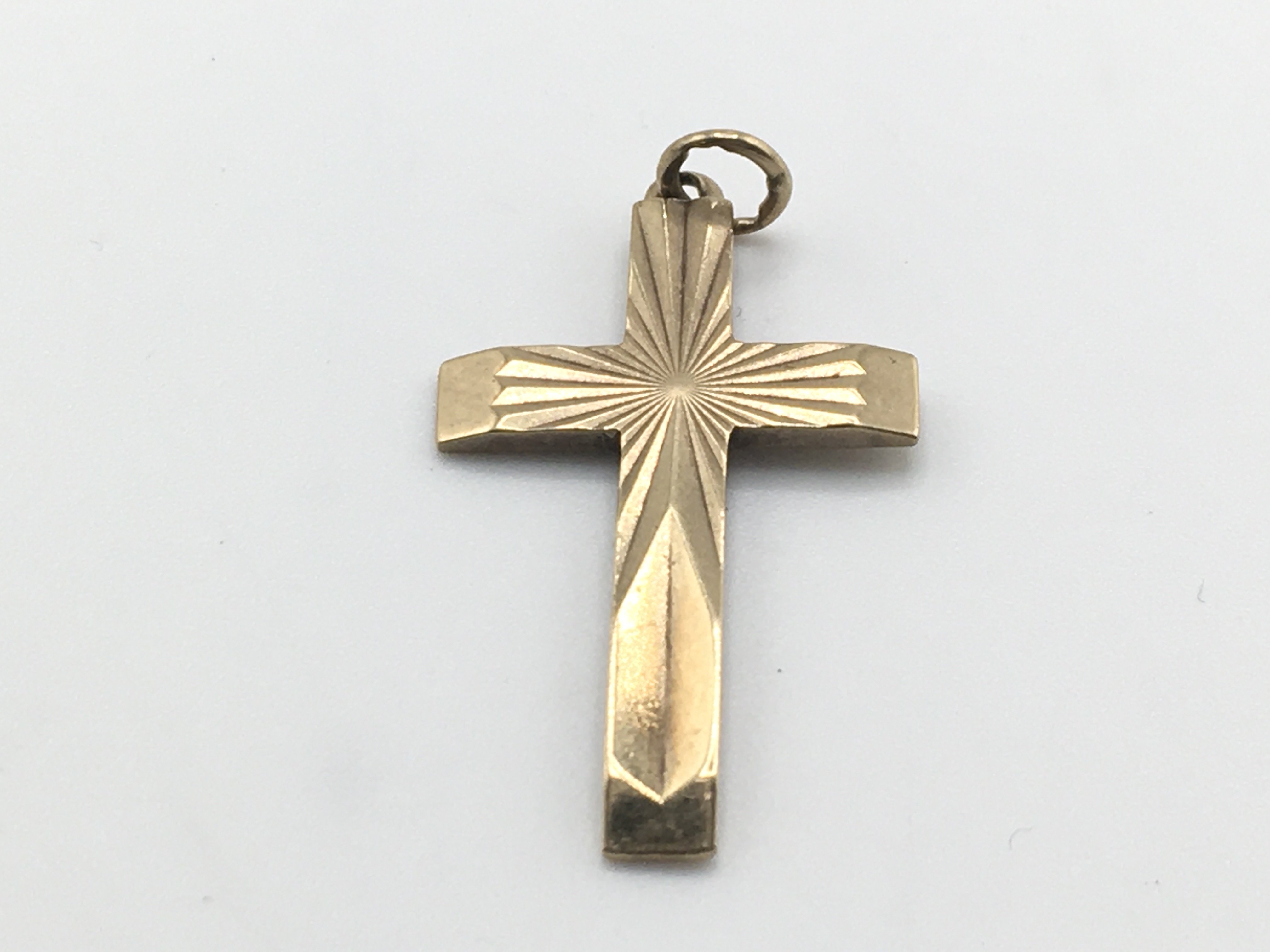 A 9ct gold cross. 4.10g and approximately 36mm long. Postage A