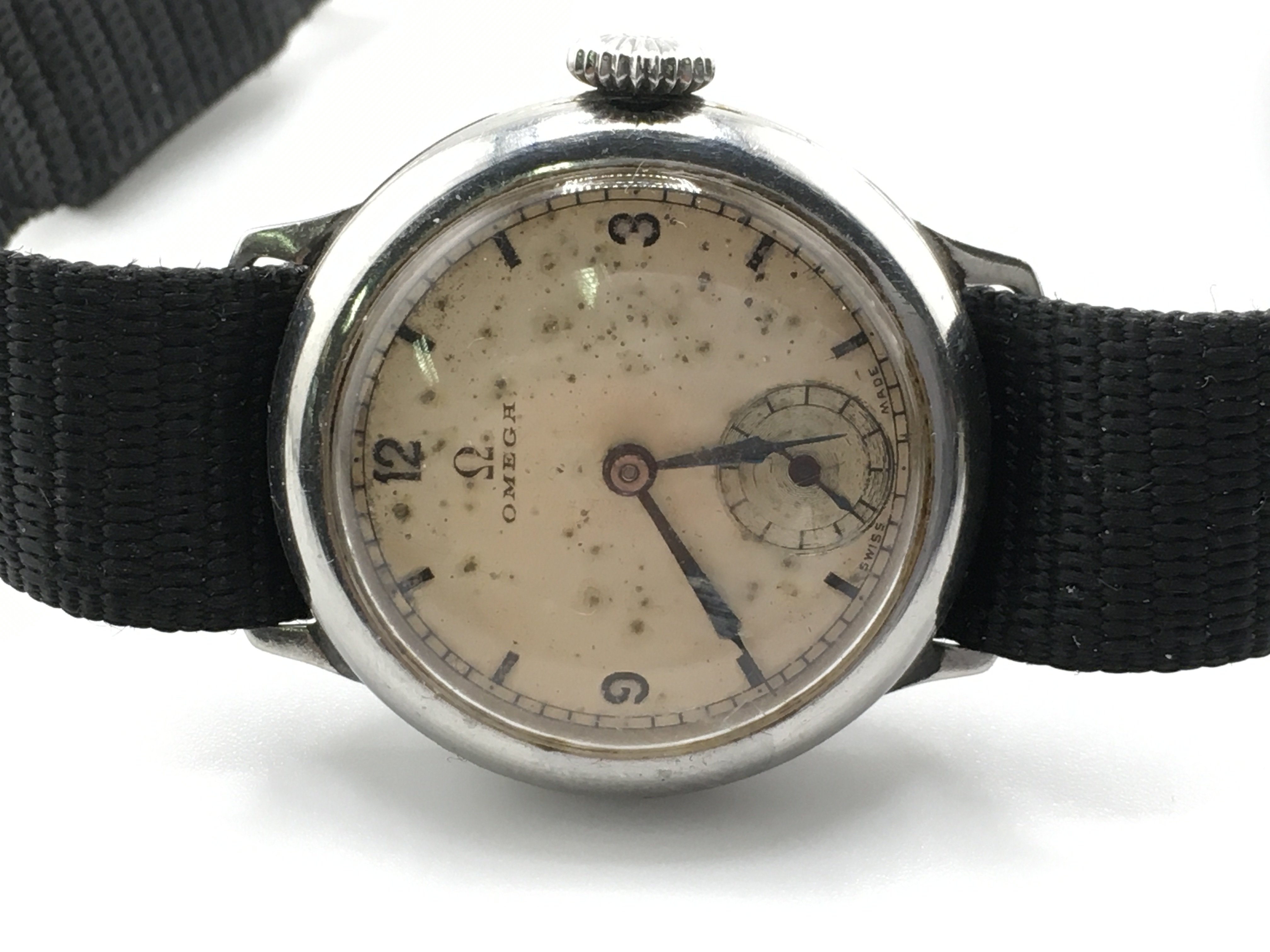 A vintage Omega watch on canvas strap. Approximately 1930's with 31mm case. Wind and runs. Postage B